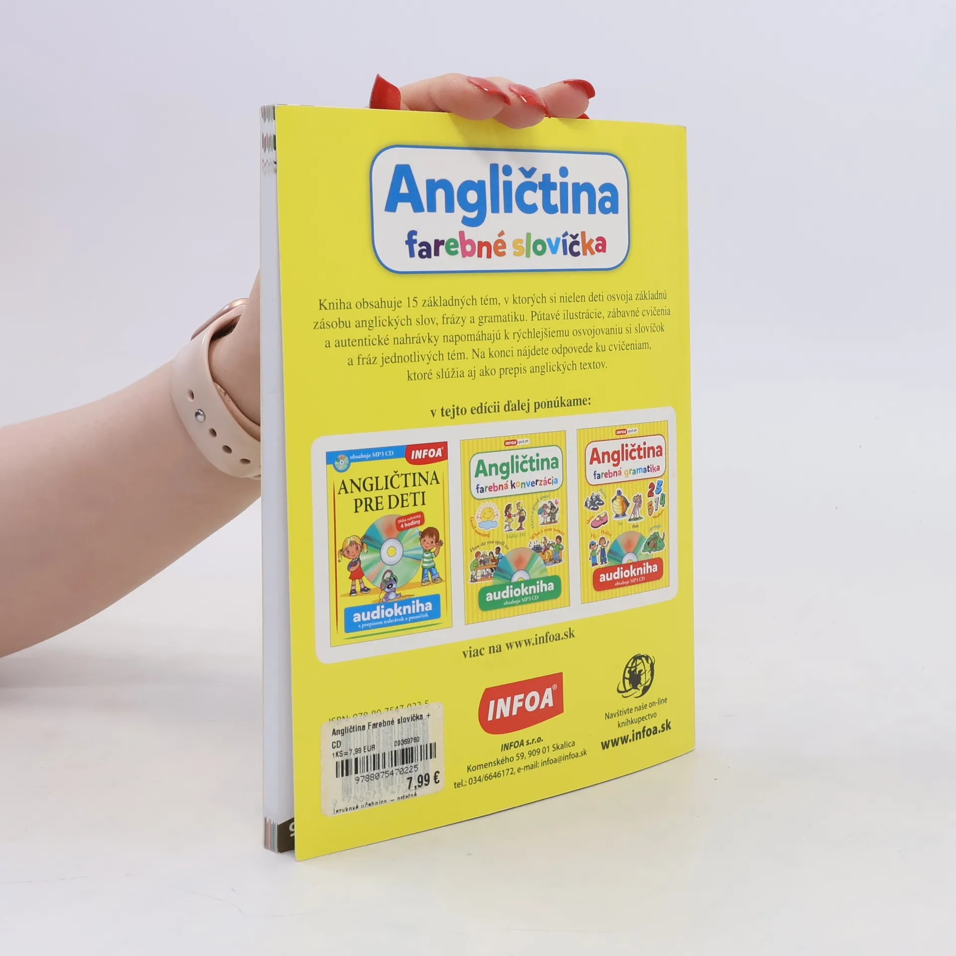 Kniha obsahuje 15 základných tém, v ktorých si nielen deti osvoja základnů zásobu anglických slov, frázy a gramatiku. Pútavé ilustrácie, zábavné cvičenia a autentické nahrávky napomáhajú k rýchlejšiemu osvojovaniu si slovíčok a fráz jednotlivých tém. Na konci nájdete odpovede ku cvičeniam, ktoré slúžia aj ako prepis anglických textov.