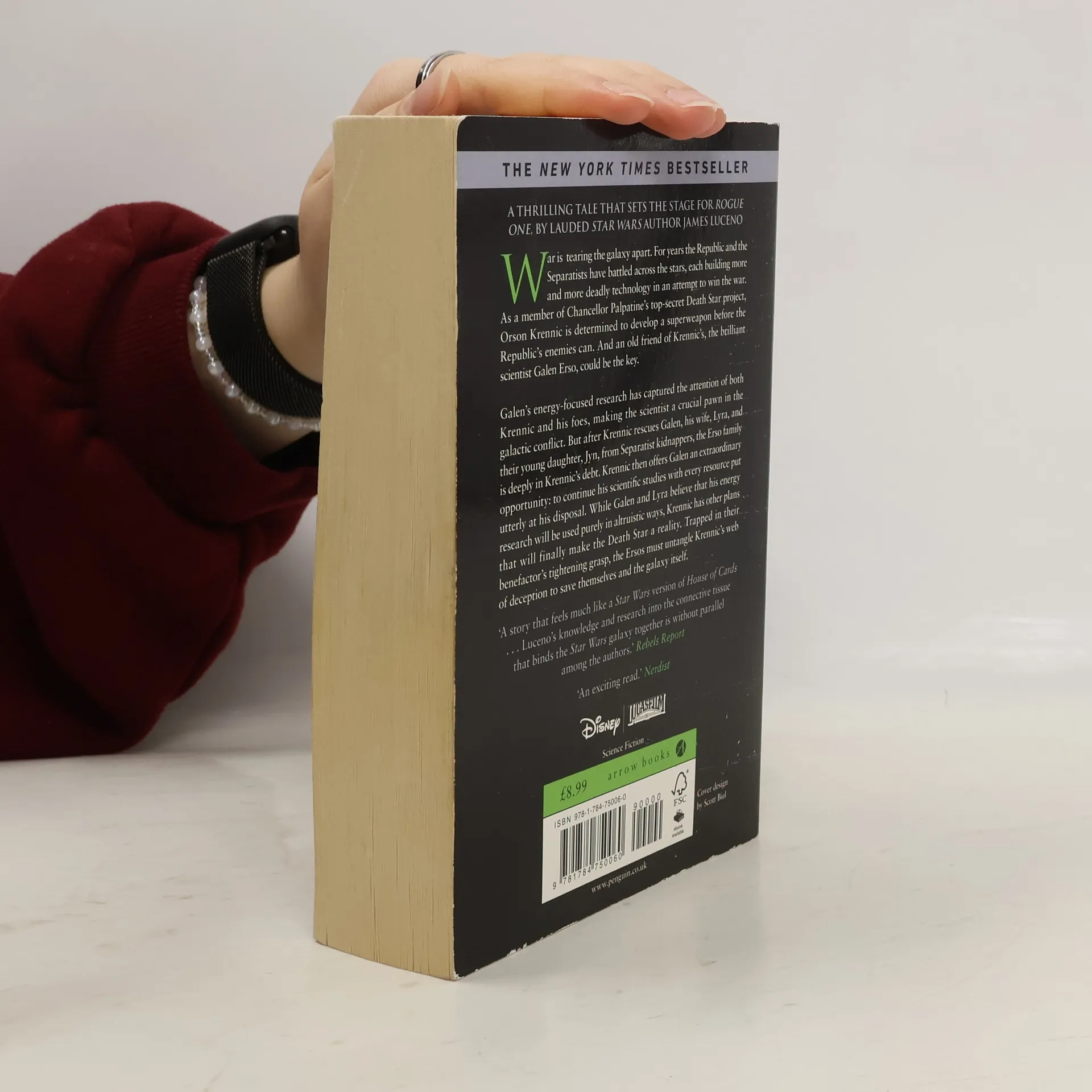 Lauded Star Wars author James Luceno returns to pen an intense tale of ambition and betrayal that sets the stage for Rogue One: A Star Wars Story. War is tearing the galaxy apart. For years the Republic and the Separatists have battled across the stars, each building more and more deadly technology in an attempt to win the war. As a member of Chancellor Palpatine's top secret Death Star project, Orson Krennic is determined to develop a superweapon before their enemies can. And an old friend of Krennic's, the brilliant scientist Galen Erso, could be the key. Galen's energy-focused research has captured the attention of both Krennic and his foes, making the scientist a crucial pawn in the galactic conflict. But after Krennic rescues Galen, his wife, Lyra, and their young daughter, Jyn, from Separatist kidnappers, the Erso family is deeply in Krennic's debt. Krennic then offers Galen an extraordinary opportunity: to continue his scientific studies with every resource put utterly at his disposal. While Galen and Lyra believe that his energy research will be used purely in altruistic ways, Krennic has other plans that will finally make the Death Star a reality. Trapped in their benefactor's tightening grasp, the Ersos must untangle Krennic's web of deception to save themselves and the galaxy itself.