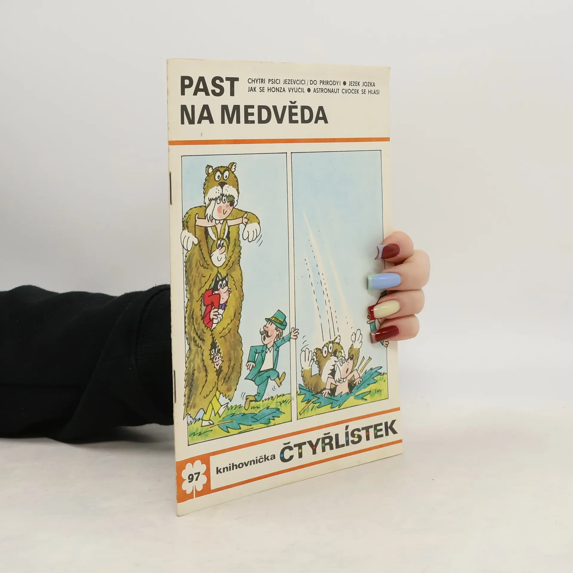 97. díl série. Čtyřlístek - Past na medvěda - Ljuba Štíplová, Jaroslav Němeček. Chytří psíci jezevčíci - Do přírody - Martin Šafránek, Miloš Nesvadba. Jak se Honza vyučil - Angelika Hanauerová, Věra Faltová. Ježek Jožka - Ladislav Čapek. Astronaut Cvoček se hlásí - Planeta robotů -Helena Sýkorová, Josef Lamka.