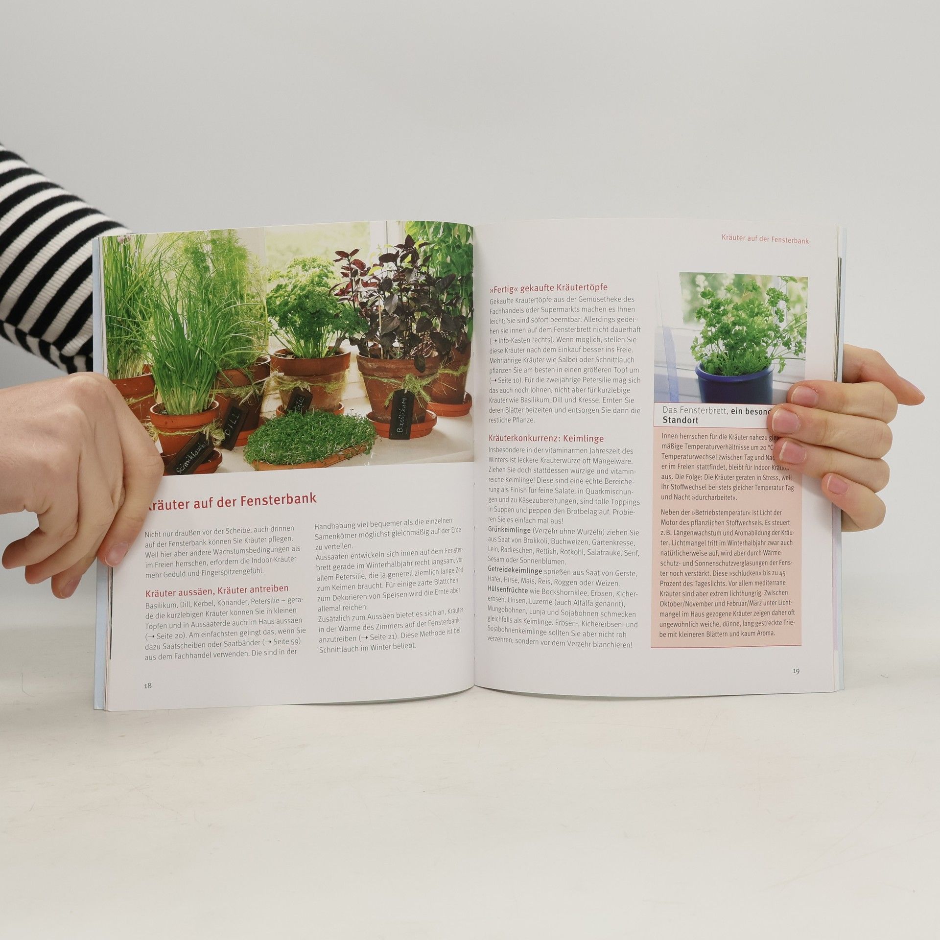 Kaum etwas ist in der Küche so unentbehrlich wie Kräuter. Umso besser, wenn diese erntefrisch aus dem eigenen Anbau kommen! Ein Kräutergarten auf Balkon oder Terrasse garantiert eine gesunde Geschmacksvielfalt, die jedes Feinschmeckerherz höher schlagen lässt, ob man sich nun lieber an die Küchenklassiker hält, die mediterrane Küche bevorzugt oder gerne mit Exotischem experimentiert. Wer als Kräutergärtner einige Grundregeln der Pflege beachtet, kann viele Monate das würzige Grün unmittelbar vor dem Fenster ernten, bei manchen Kräuterarten sogar direkt vom Fensterbrett. Diverse Konservierungsmethoden erlauben auch noch später im Jahr in den Genuss der Kräuterwürze zu kommen. Sogar im Winter braucht man auf Vitamine von der Fensterbank nicht zu verzichten: Selbst herangezogene Keimlinge sorgen dann für Abwechslung auf dem Speiseplan. Als Extra gibt’s die GU Garten und Natur Plus-App. Damit wird der Pflanzenratgeber interaktiv und hält weitere interessante Zusatzinfos und Bilder bereit.