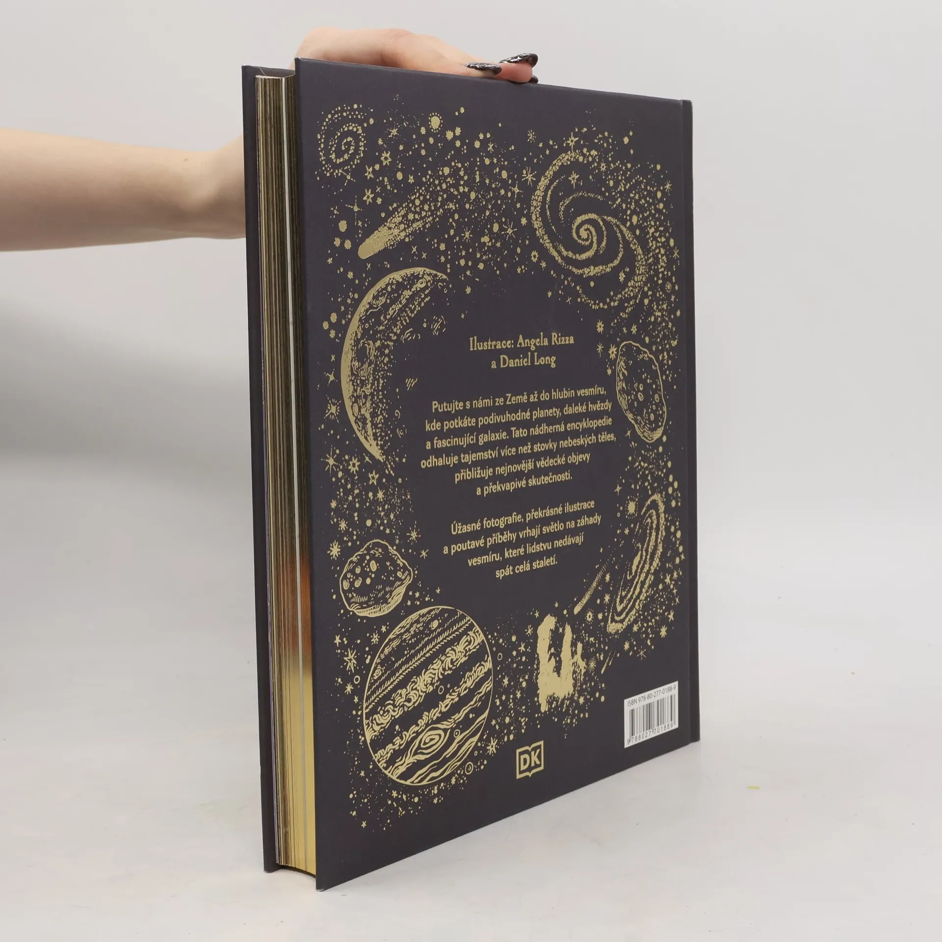 Putujte s námi ze Země až do hlubin vesmíru, kde potkáte podivuhodné planety, daleké hvězdy a fascinující galaxie. Tato nádherná encyklopedie odhaluje tajemství více než stovky nebeských těles, přibližuje nejnovější vědecké objevy a překvapivé skutečnosti. Úžasné fotografie, překrásné ilustrace a poutavé příběhy vrhají světlo na záhady vesmíru, které lidstvu nedávají spát celá staletí.