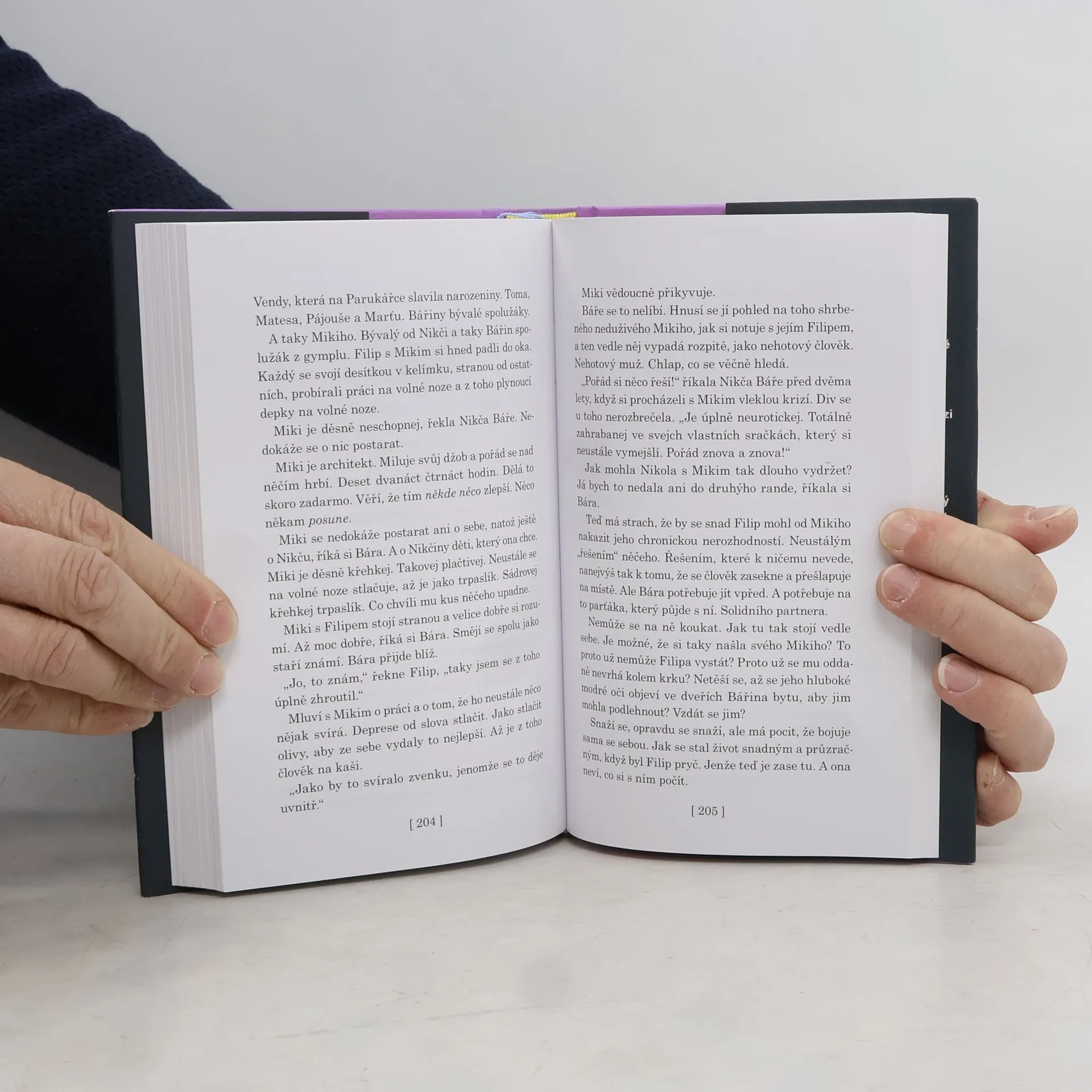 Bára a Filip. Dva mladí lidé podobní tolika ostatním. Dají se dohromady přes Tinder. Nejdřív si píšou, poznávají se, váhají. Šrámy z předchozích partnerství se mísí s touhou konečně objevit pravou lásku. Oba mají za sebou řadu vztahů, mají slibně rozjeté kariéry. Touží se pomalu usadit a třeba i založit rodinu. Ale protože nemůžou hledat návody u svých rodičů, nezbývá jim než si vyšlapat vlastní cestu. Využívají naplno příležitostí, které jim dnešní svět nabízí. Zároveň se však musí podřídit společenským vzorcům, jež jim komplikují život a dělají je zranitelnými. Křehkost vlastní identity je navzdory všem racionálním postojům i technickým vymoženostem jednou z klíčových metafor partnerského vztahu. Co dnes znamená být mužem a ženou? Lze tyto role vůbec nadále naplňovat? Společenský román o životě současných třicátníků si pokládá řadu zásadních otázek.