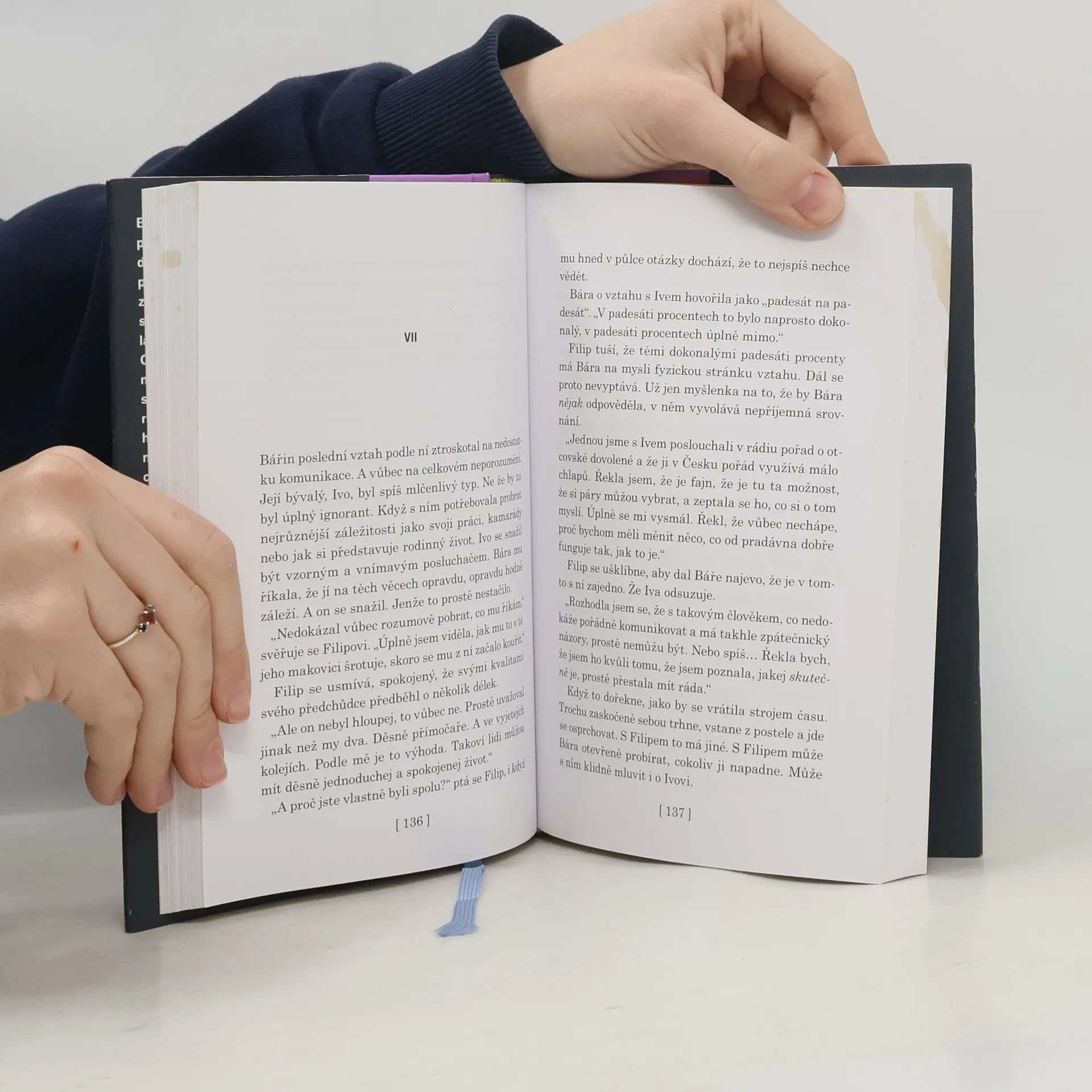 Bára a Filip. Dva mladí lidé podobní tolika ostatním. Dají se dohromady přes Tinder. Nejdřív si píšou, poznávají se, váhají. Šrámy z předchozích partnerství se mísí s touhou konečně objevit pravou lásku. Oba mají za sebou řadu vztahů, mají slibně rozjeté kariéry. Touží se pomalu usadit a třeba i založit rodinu. Ale protože nemůžou hledat návody u svých rodičů, nezbývá jim než si vyšlapat vlastní cestu. Využívají naplno příležitostí, které jim dnešní svět nabízí. Zároveň se však musí podřídit společenským vzorcům, jež jim komplikují život a dělají je zranitelnými. Křehkost vlastní identity je navzdory všem racionálním postojům i technickým vymoženostem jednou z klíčových metafor partnerského vztahu. Co dnes znamená být mužem a ženou? Lze tyto role vůbec nadále naplňovat? Společenský román o životě současných třicátníků si pokládá řadu zásadních otázek.
