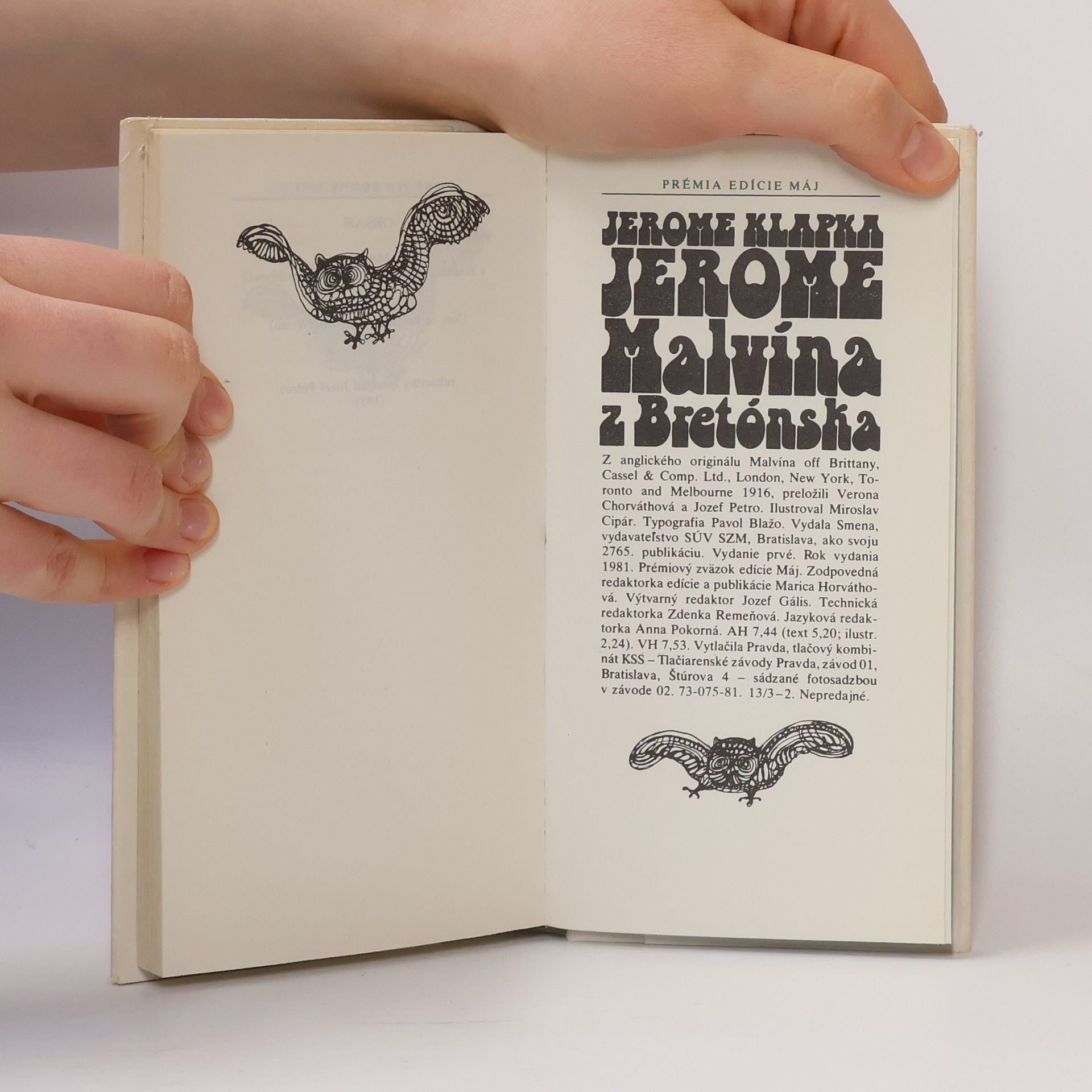Kniha obsahuje tri krátke prózy: Malvína z Bretónska, Dom na konci, Sivé rukavičky. Prvé vydanie. Nepredajná prémia edície Máj.