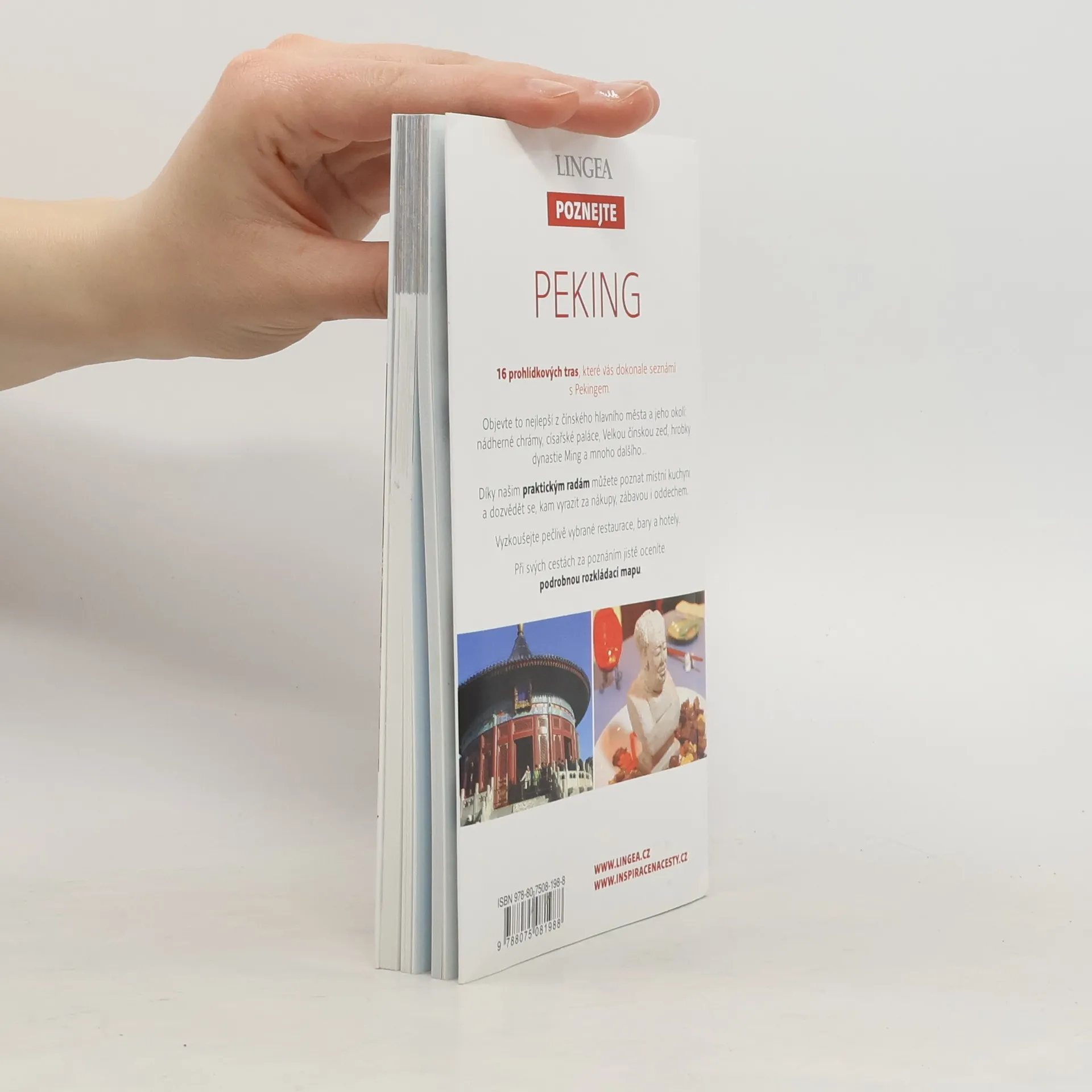 16 prohlídkových tras, které vás dokonale seznámí s Pekingem. Objevte to nejlepší z čínského hlavního města a jeho okolí: nádherné chrámy, císařské paláce a zahrady, Velkou čínskou zeď, hrobky dynastie Ming a mnoho dalšího... Díky našim praktickým radám můžete poznat místní kuchyni a dozvědět se, kam vyrazit za nákupy, zábavou i oddechem. Při svých cestách za poznáním jistě oceníte podrobnou rozkládací mapu. 16 prohlídkových tras městem. Podrobná rozkládací mapa a schéma metra. Praktické informace a tipy na cestu. Kde se ubytovat, najíst a nakoupit. Kam vyrazit za zábavou i oddechem.