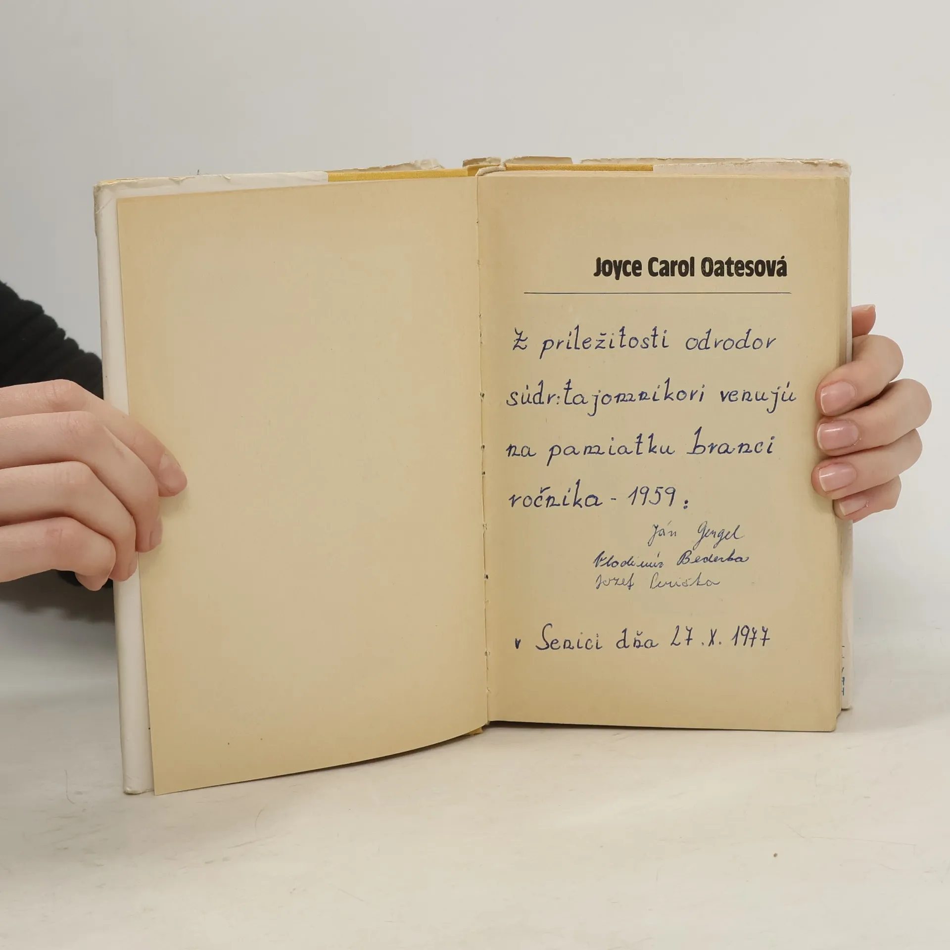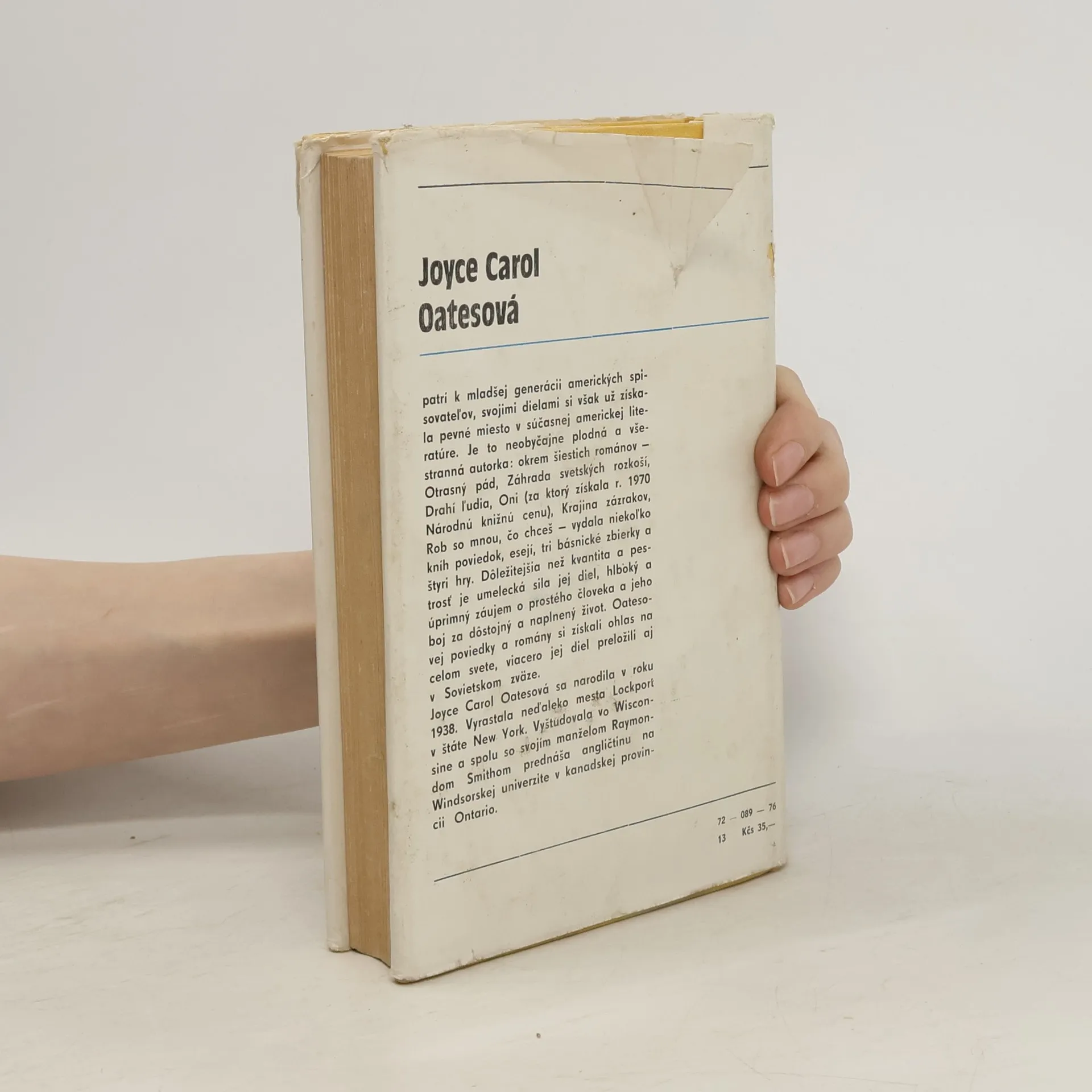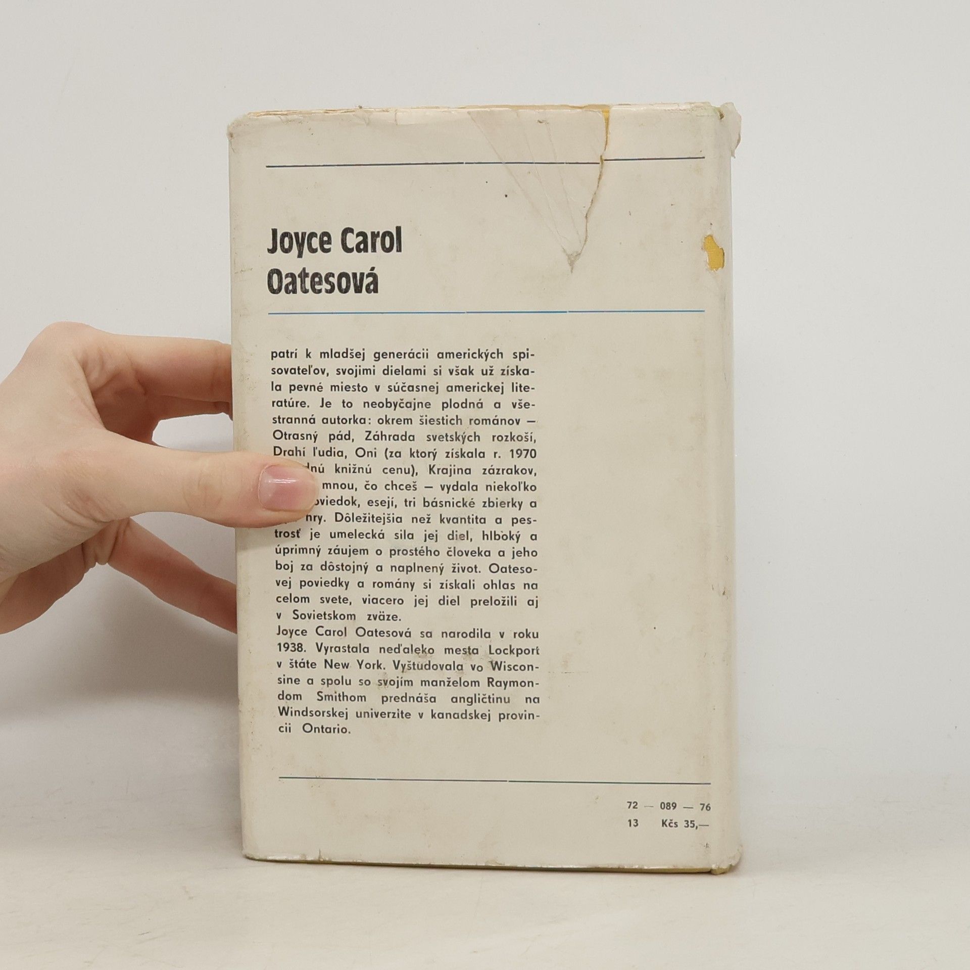 Joyce Carol Oatesová patrí k mladšej generácii amerických spisovateľov, svojimi dielami si však už získala pevné miesto v súčasnej americkej literatúre. Je to neobyčajne plodná a všestranná autorka: okrem šiestich románov — Otrasný pád, Záhrada svetských rozkoší, Drahí ľudia, Oni (za ktorý získala r. 1970 Národnú knižnú cenu), Krajina zázrakov, Rob so mnou, čo chceš — vydala niekoľko kníh poviedok, esejí, tri básnické zbierky a štyri hry. Dôležitejšia než kvantita a pestrosť je umelecká sila jej diel, hlboký a úprimný záujem o prostého človeka a jeho boj za dôstojný a naplnený život. Oatesovej poviedky a romány si získali ohlas na celom svete, viacero jej diel preložili aj v Sovietskom zväze. Joyce Carol Oatesová sa narodila v roku 1938. Vyrastala neďaleko mesta Lockport v štáte New York. Vyštudovala vo Wisconsine a spolu so svojím manželom Raymondom Smithom prednáša angličtinu na Windsorskej univerzite v kanadskej provincii Ontario.