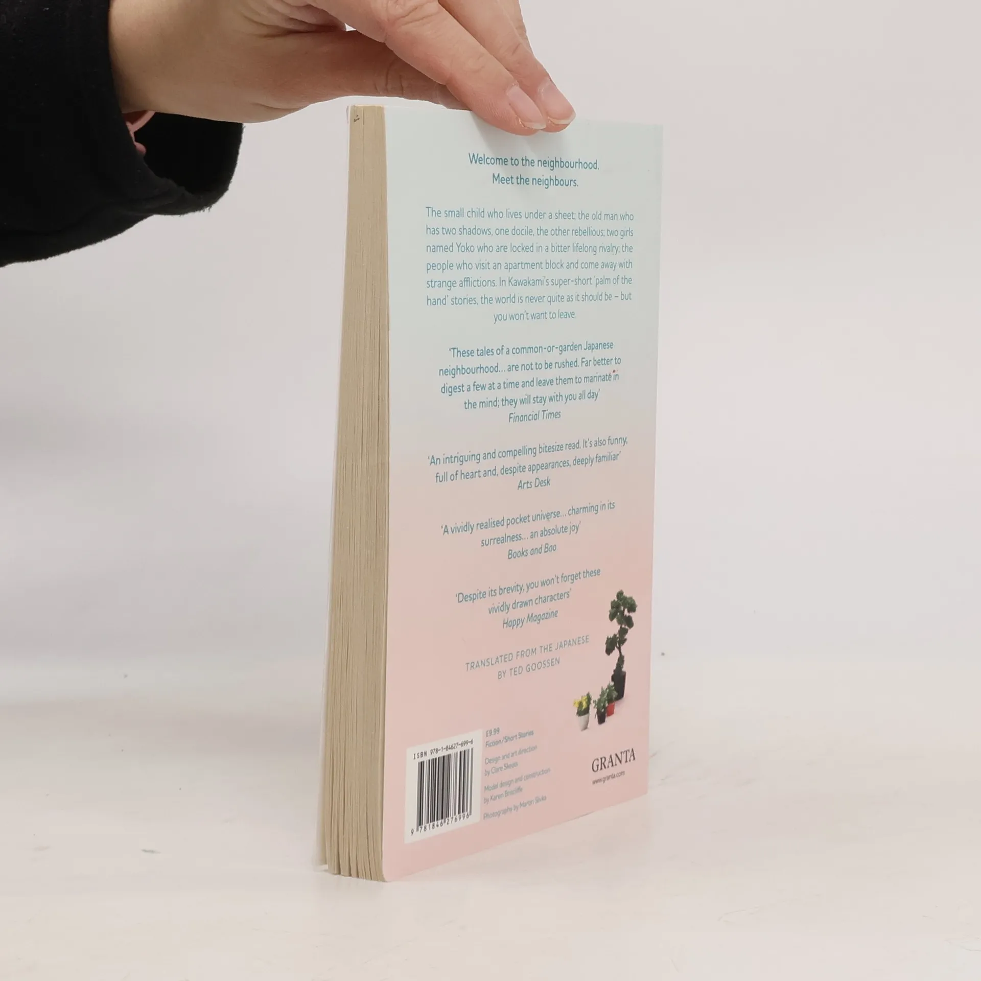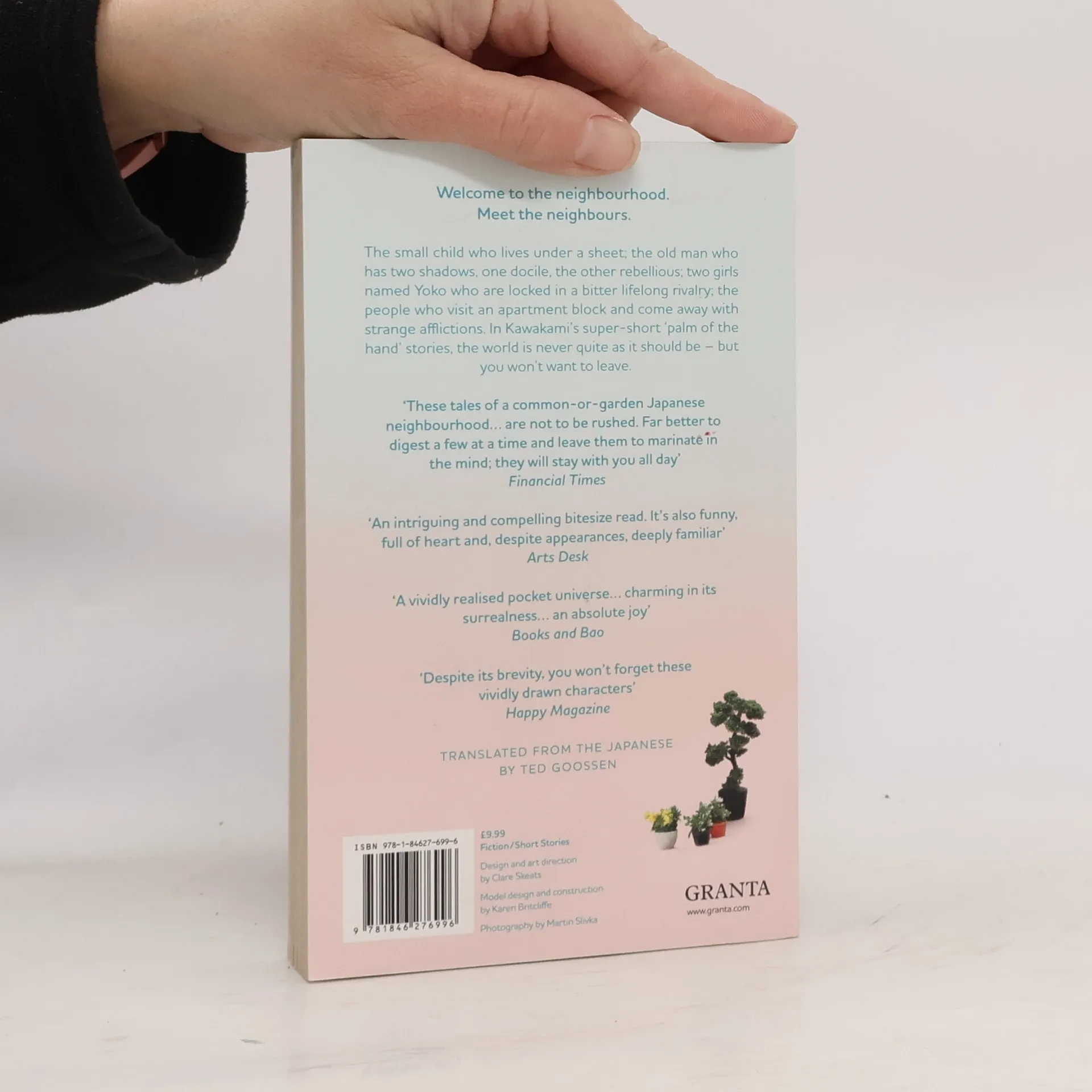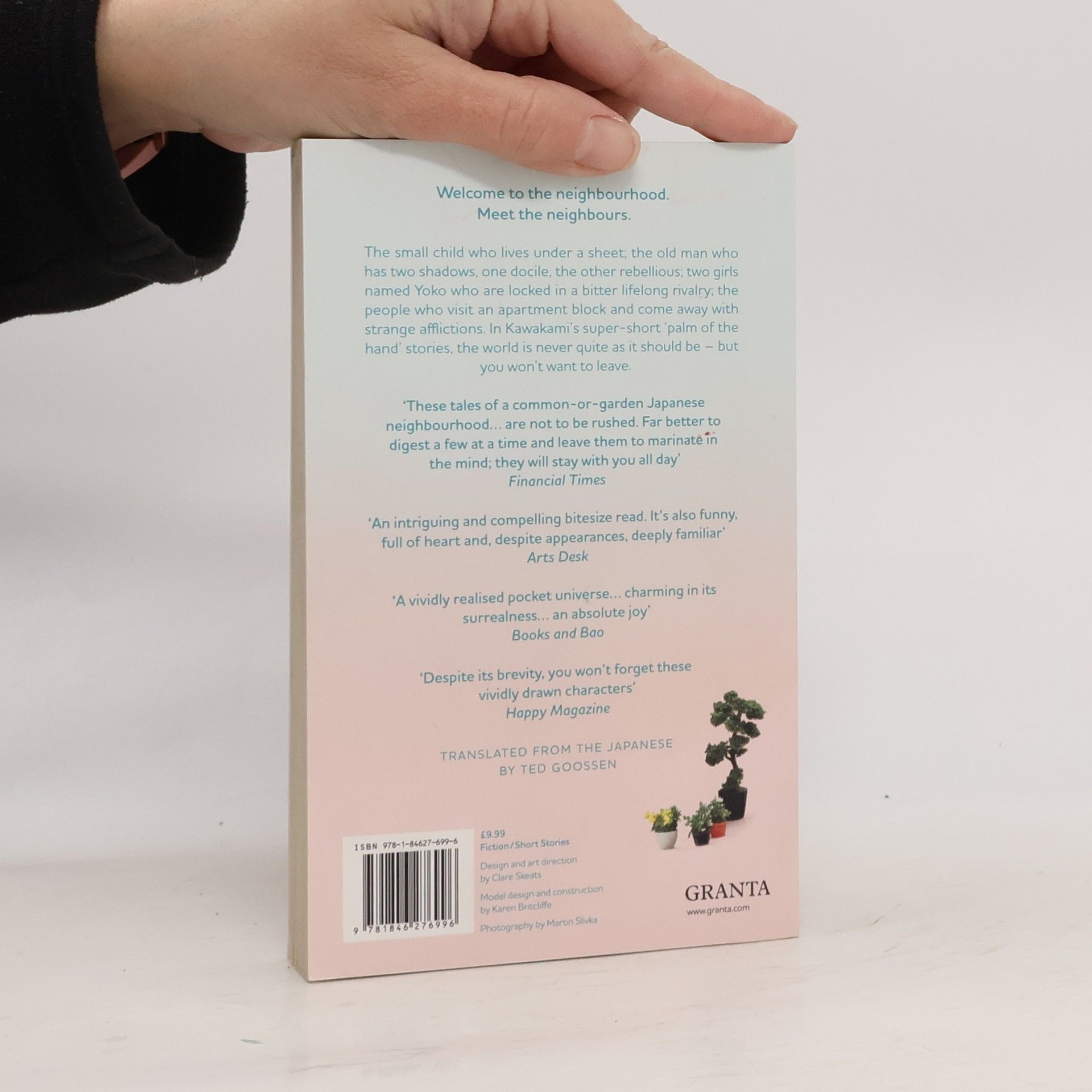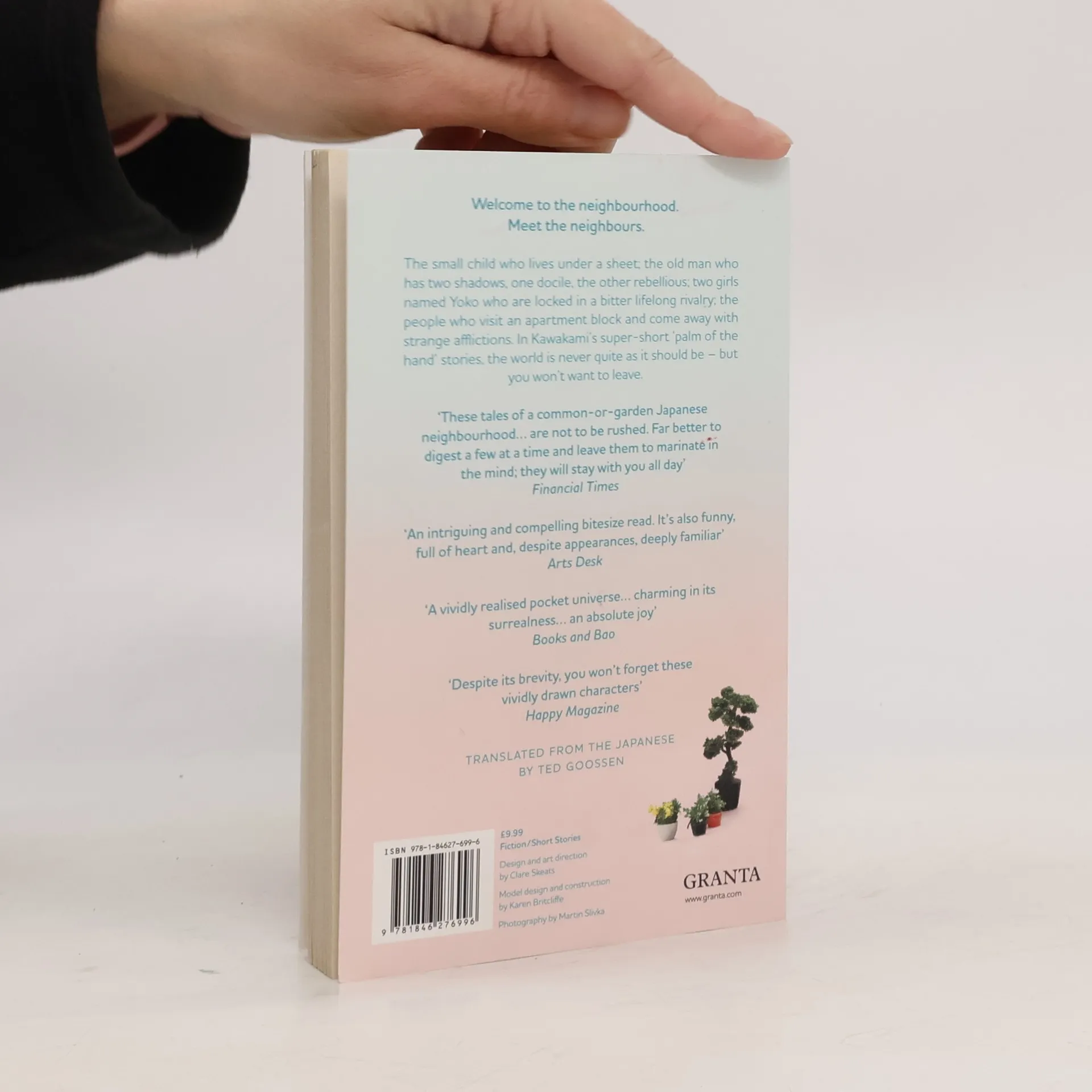 Take a story and shrink it. Make it tiny, so small it can fit in the palm of your hand. Carry the story with you everywhere, let it sit with you while you eat, let it watch you while you sleep. Keep it safe, you never know when you might need it. In Kawakami's super short 'palm of the hand' stories the world is never quite as it should be: a small child lives under a sheet near his neighbour's house for thirty years; an apartment block leaves its visitors with strange afflictions, from fast-growing beards to an ability to channel the voices of the dead; an old man has two shadows, one docile, the other rebellious; two girls named Yoko are locked in a bitter rivalry to the death. Small but great, you'll find great delight spending time with the people in this neighbourhood.