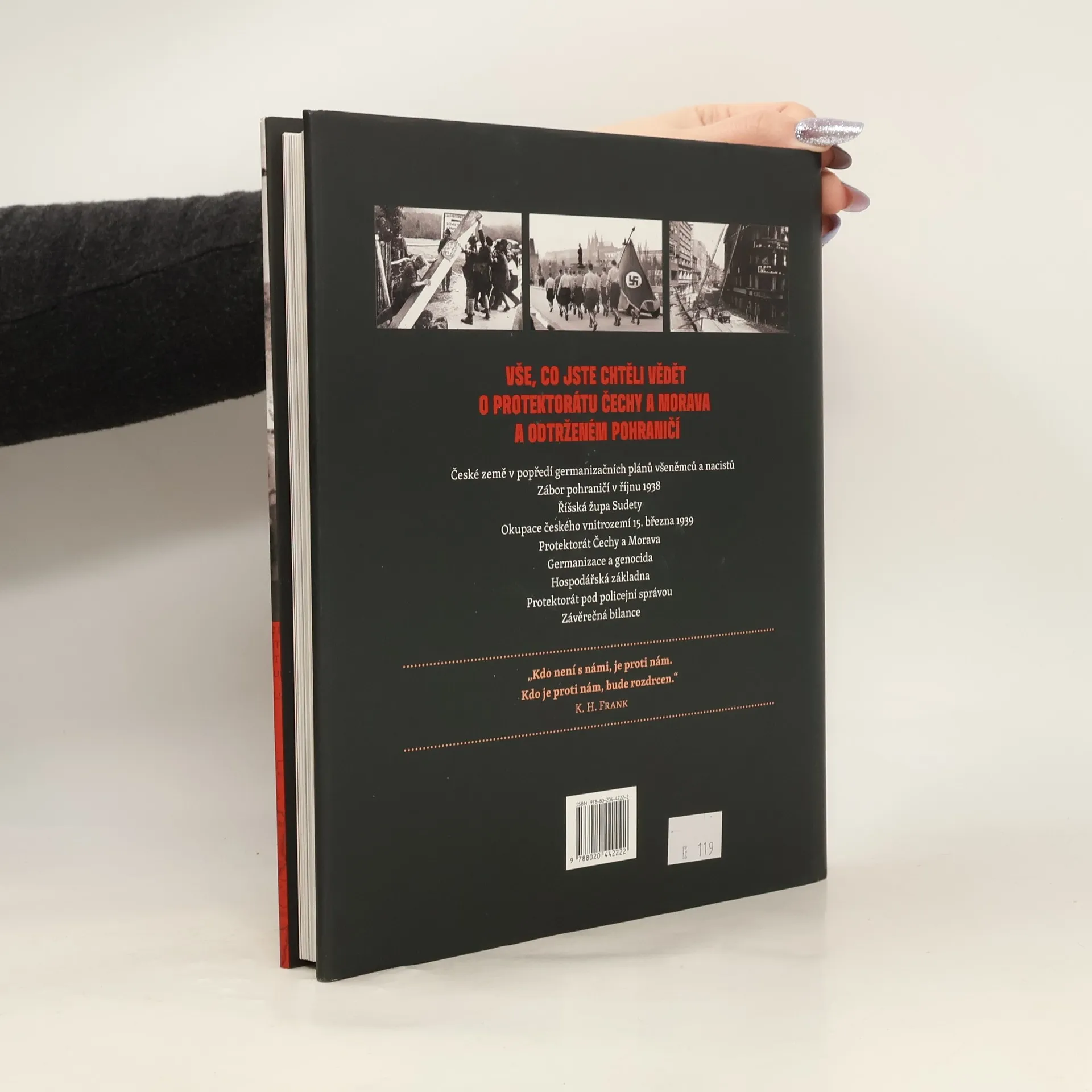 Další z volné série výpravných publikací významného českého historika mapuje německou okupaci českých zemí za druhé světové války. Nevšední formou přibližuje čtenáři vývoj, organizaci a činnost německé okupační správy v letech 1938 až 1945. Kniha podrobně popisuje fungování a působnost úřadu říšského protektora, státního tajemníka, oberlandratů, německého ministra pro Čechy a Moravu a dalších říšských úřadů. Pozornost věnuje přítomnosti německých vojenských, represivních i stranických složek NSDAP. Pokrývá rovněž téma proněmecky orientované kolaborace. Samozřejmě se věnuje také germanizaci či snahám nacistů maximálně využít českých dělníků v německé válečné výrobě. Kniha je přehledně strukturována do tematických kapitol, hlavní text doplňují poznámky, tabulky, citace a více než 150 kvalitních dobových fotografií.