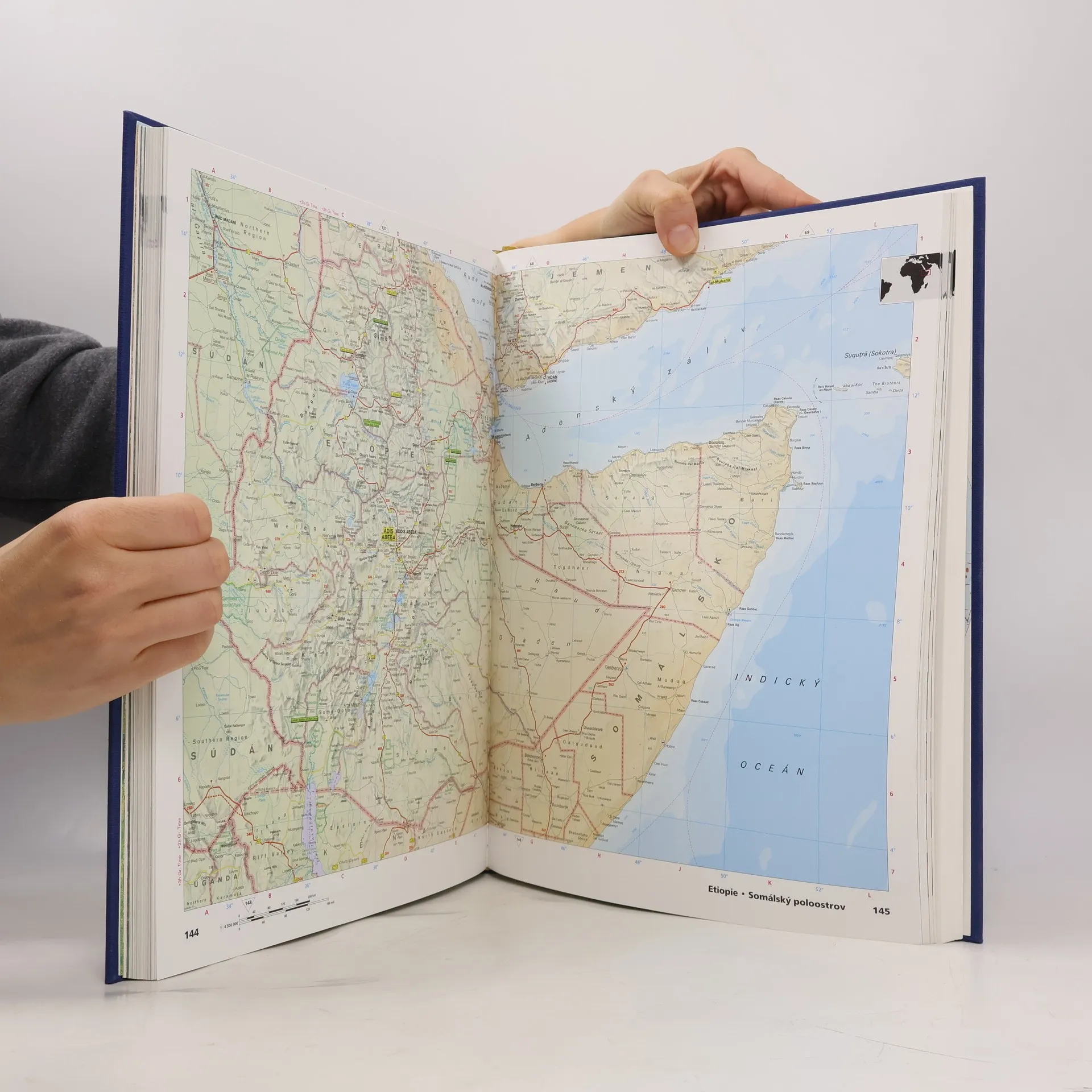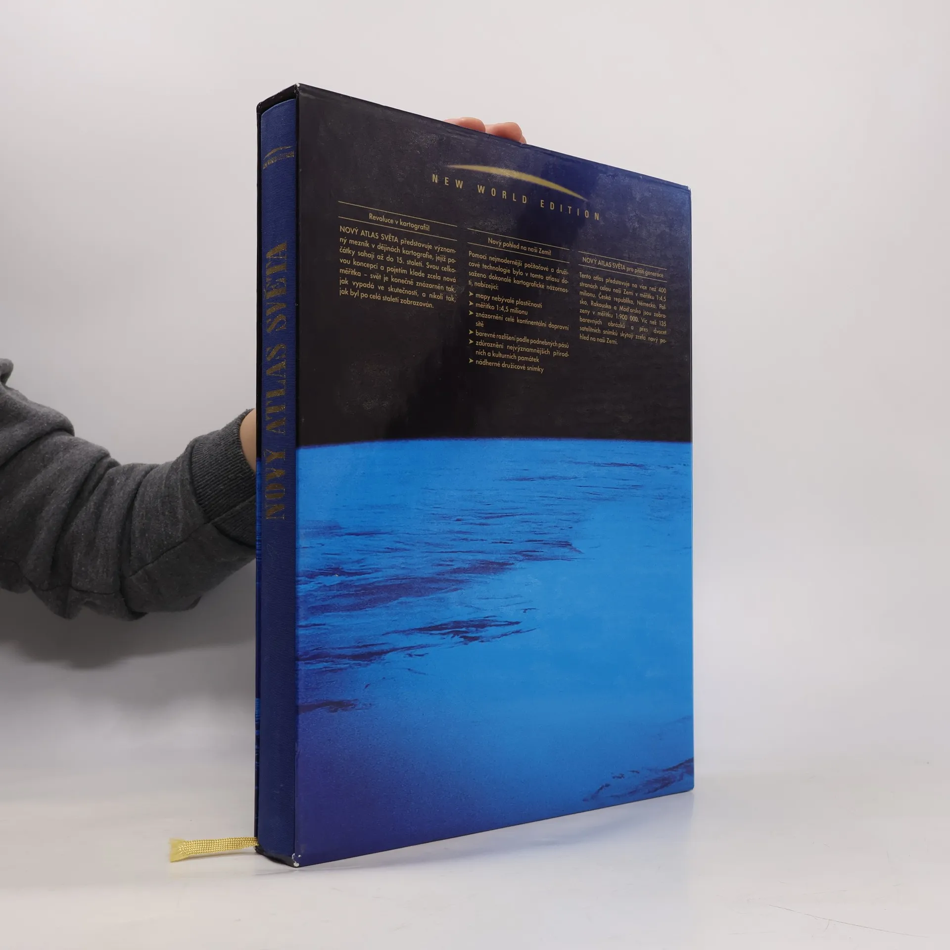 Atlas obsahuje třídimenzionální znázornění terénu všech kontinentů, satelitní snímky, rejstřík a mapový odkazový systém s barevným kódováním a symboly.