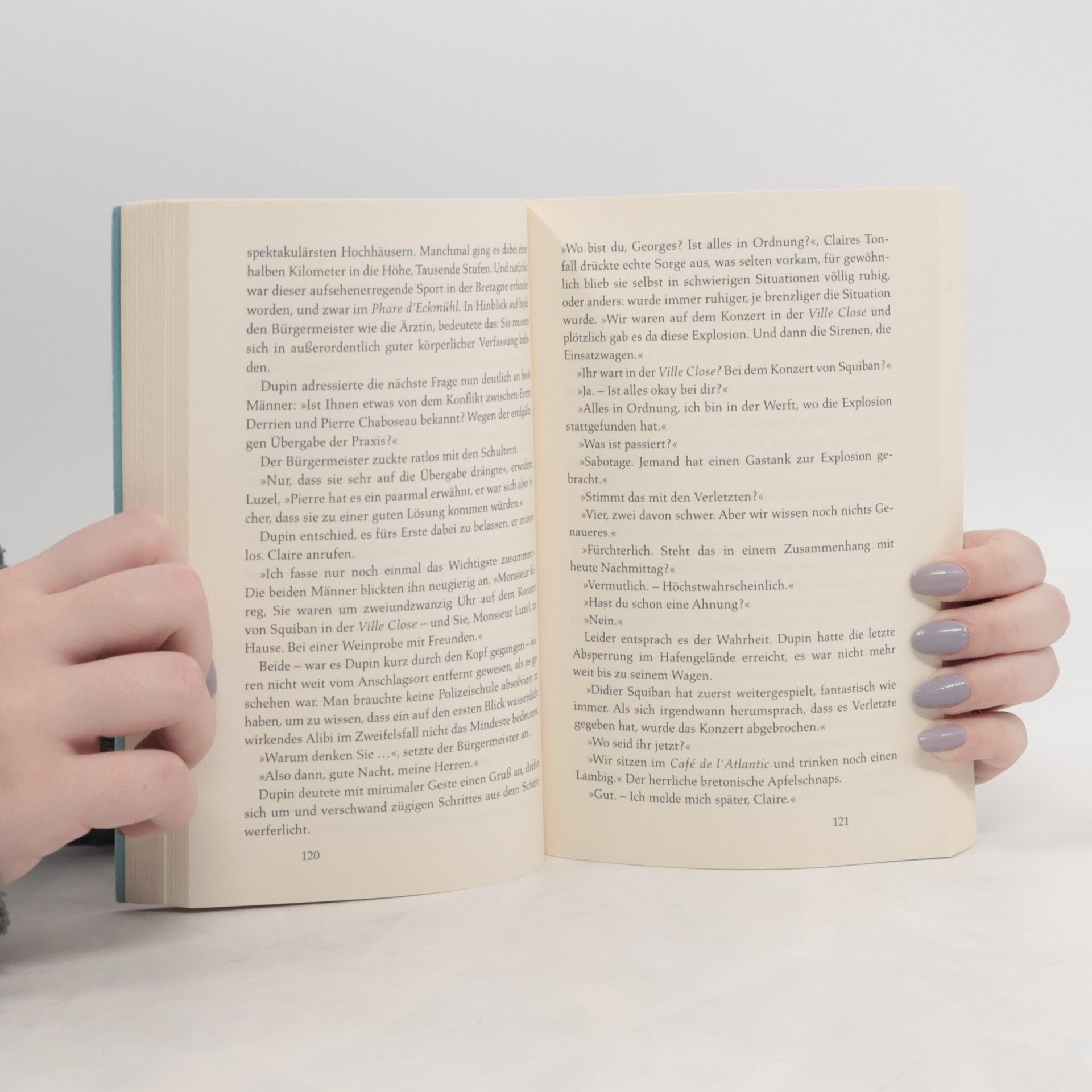 In Concarneau, der »blauen Stadt« am Meer, bereitet sich die Bevölkerung auf die Pfingsttage vor, als ein Mord vor Kommissar Dupins Lieblingsrestaurant, dem Amiral, die fröhliche Stimmung trübt. Zu allem Überfluss sind Dupins Inspektoren im Urlaub, und Nolwenn ist unerreichbar. Mit zwei neuen Kolleginnen macht sich der Kommissar daran, die entscheidende Frage zu klären: Wer hatte es auf Docteur Chaboseau abgesehen? Der angesehene Arzt stammt aus einer einflussreichen Familie, und weder seine Frau noch enge Freunde wie ein Apotheker und ein Weinhändler können sich einen Reim darauf machen. Stehen seine Vorlieben, etwa seine Leidenschaft für Kunst und Investitionen in lokale Brauereien und Fischkonservenfabriken, im Zusammenhang mit seinem Tod? Während Dupin fieberhaft nach Hinweisen sucht, ereignet sich ein Anschlag, der die gesamte Stadt in Aufruhr versetzt. Dieser Krimi fängt nicht nur die spannende Handlung ein, sondern auch die stimmungsvolle Atmosphäre von Concarneau – mit seinen malerischen Häfen, Stränden, Galerien, Restaurants und der einzigartigen Geschichte seiner Bewohner.