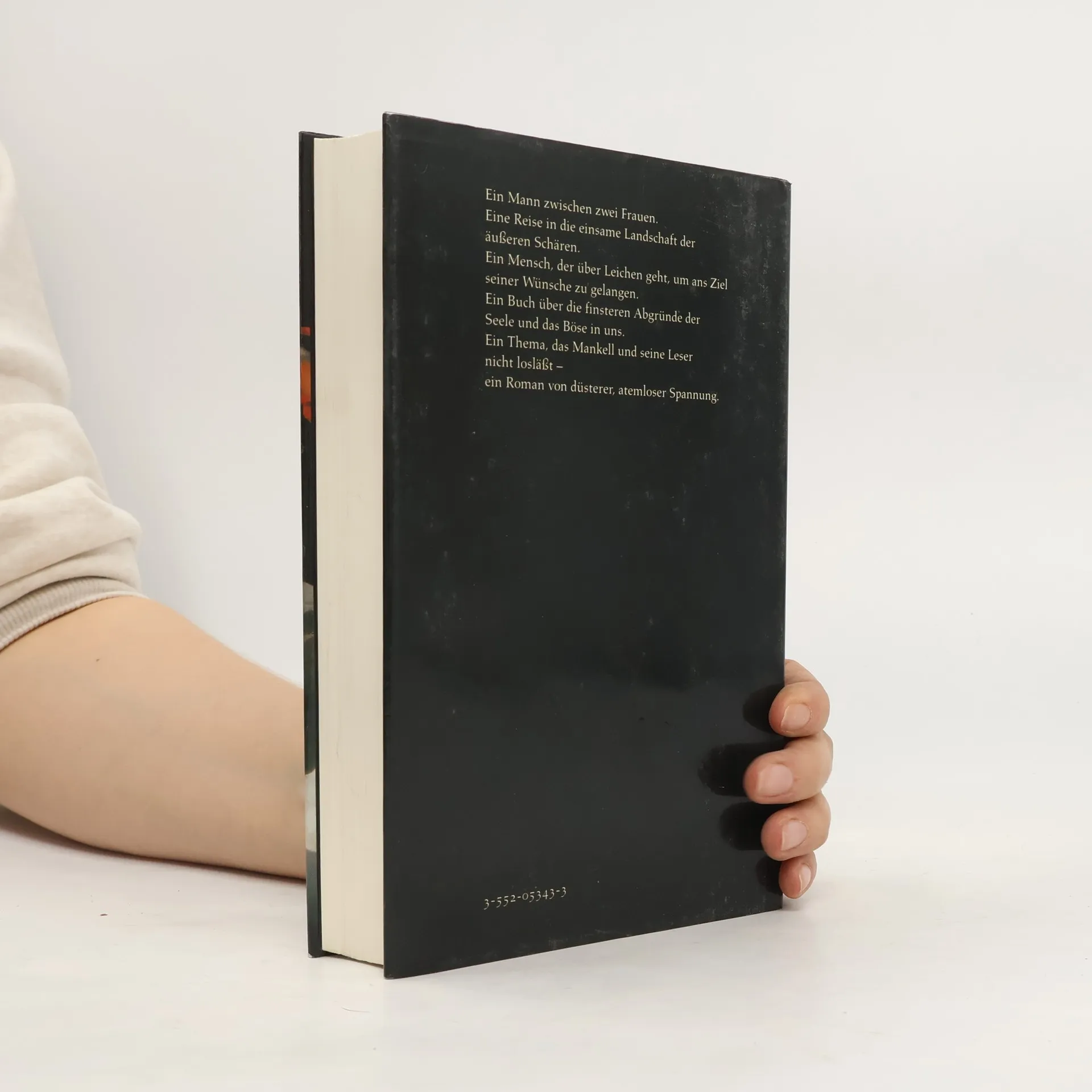 Lars Tobiasson-Svartman ist Marineoffizier und Seevermessungsingenieur, ein Mann der Abstandmessung und des Abstandhaltens. Es ist die Zeit des Ersten Weltkriegs und er hat den militärischen Auftrag, in den Stockholmer Schären neue Fahrwasser auszuloten. Eines Tages trifft er auf einer der äußersten Schären eine einsam lebende Frau, Sara Fredrika. Es ist Liebe auf den ersten Blick. Doch bald geht sein Auftrag zu Ende, und zu Hause erwarten ihn seine Frau und ein geordnetes Heim. Um zu Sara Fredrika zurückkehren zu können, ersinnt er einen dreisten Betrug. Wie immer bei Mankell entwickelt die Geschichte einen unwiderstehlichen und unheimlichen Sog. Ein Mann zwischen zwei Frauen. Ein Mensch, der über Leichen geht, um ans Ziel seiner Wünsche zu gelangen. Ein Roman über die finsteren Abgründe der Seele und das Böse in uns.