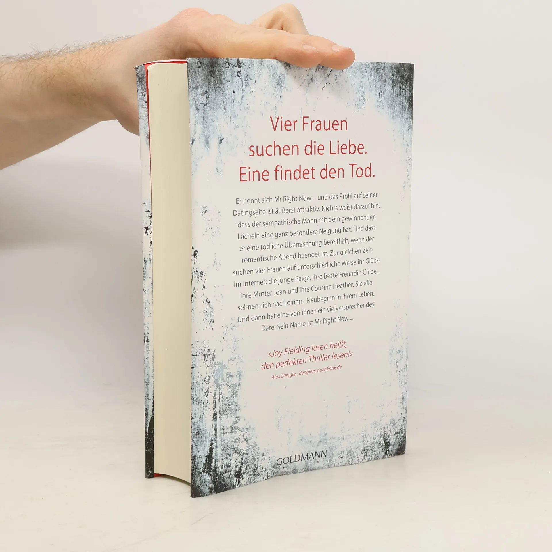 Vier Frauen suchen die Liebe. Eine findet den Tod. Er nennt sich Mr Right Now – und das Profil auf seiner Datingseite ist äußerst attraktiv. Nichts weist darauf hin, dass der sympathische Mann mit dem gewinnenden Lächeln eine ganz besondere Neigung hat. Und dass er eine tödliche Überraschung bereithält, wenn der romantische Abend beendet ist. Zur gleichen Zeit suchen vier Frauen auf unterschiedliche Weise ihr Glück im Internet: die junge Paige, ihre beste Freundin Chloe, ihre Mutter Joan und ihre Cousine Heather. Sie alle sehnen sich nach einem Neubeginn in ihrem Leben. Und dann hat eine von ihnen ein vielversprechendes Date. Sein Name ist Mr Right Now …