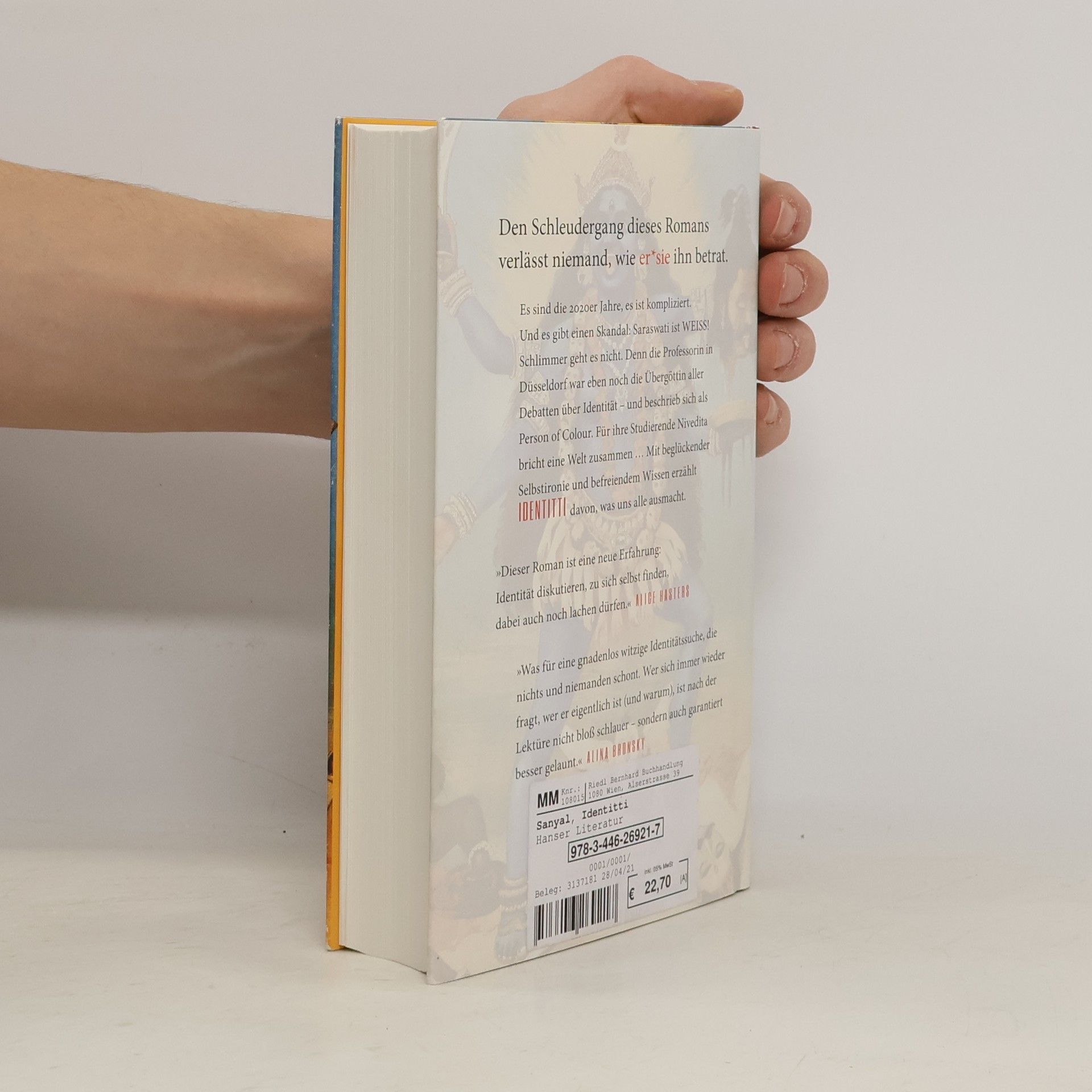 „Was für eine gnadenlos witzige Identitätssuche, die nichts und niemanden schont. Man ist nach der Lektüre nicht bloß schlauer – sondern auch garantiert besser gelaunt.“ (Alina Bronsky) - Auf der Shortlist des Deutschen Buchpreises 2021 Was für ein Skandal: Prof. Dr. Saraswati ist WEISS! Schlimmer geht es nicht. Denn die Professorin für Postcolonial Studies in Düsseldorf war eben noch die Übergöttin aller Debatten über Identität – und beschrieb sich als Person of Colour. Als würden Sally Rooney, Beyoncé und Frantz Fanon zusammen Sex Education gucken, beginnt damit eine Jagd nach „echter“ Zugehörigkeit. Während das Netz Saraswati hetzt und Demos ihre Entlassung fordern, stellt ihre Studentin Nivedita ihr intimste Fragen. Mithu Sanyal schreibt mit beglückender Selbstironie und befreiendem Wissen. Den Schleudergang dieses Romans verlässt niemand, wie er*sie ihn betrat.