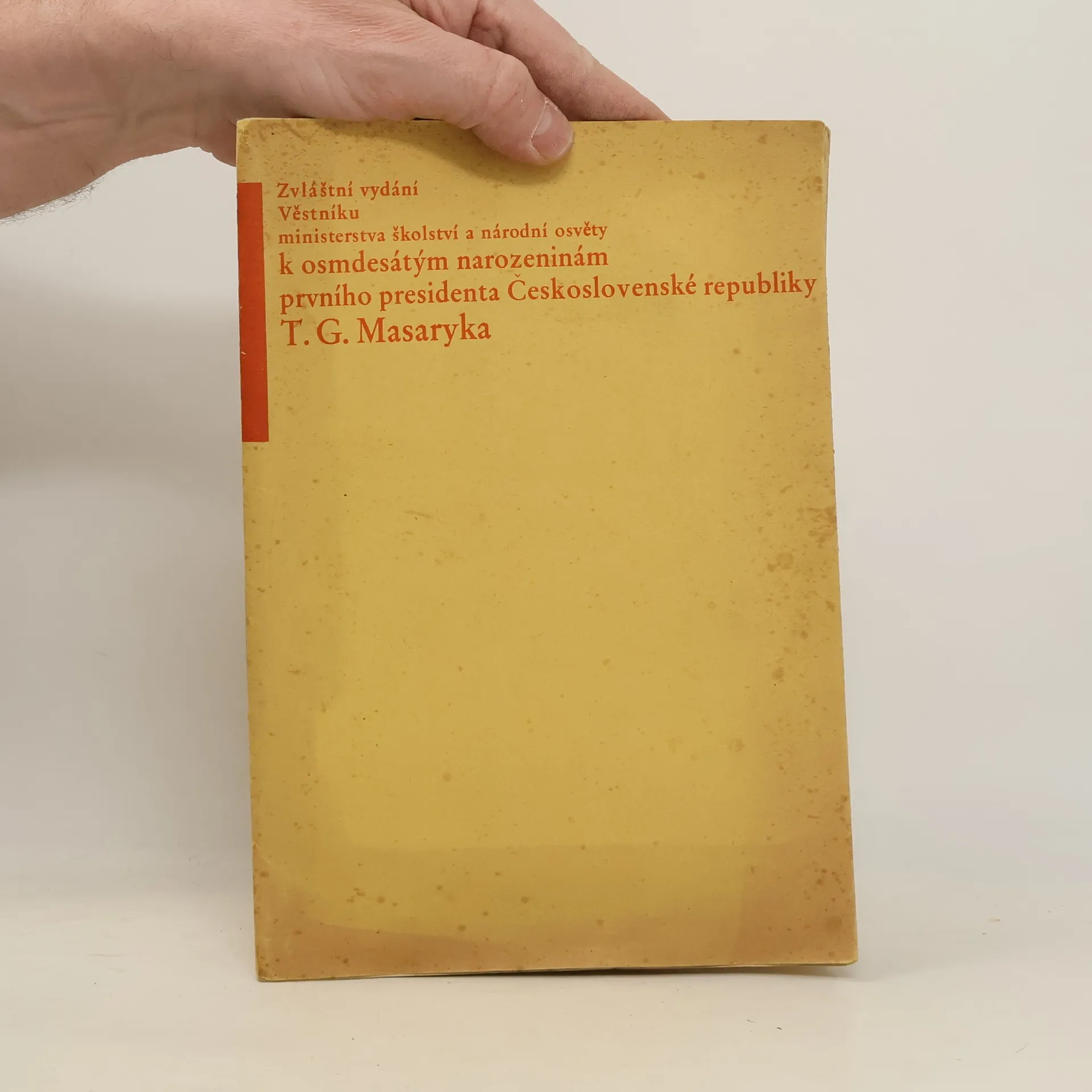 Zvláštní vydání Věstníku ministerstva školství a národní osvěty k osmdesátý pátým narozeninám prvního presidenta Československé republiky T. G. Masaryka, Kolektiv autorů