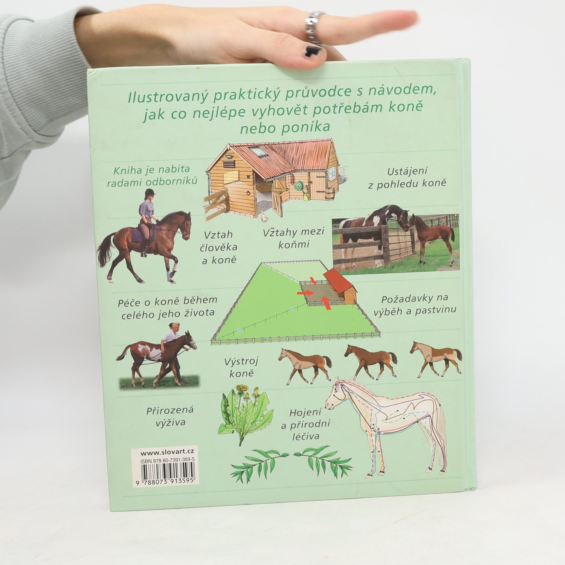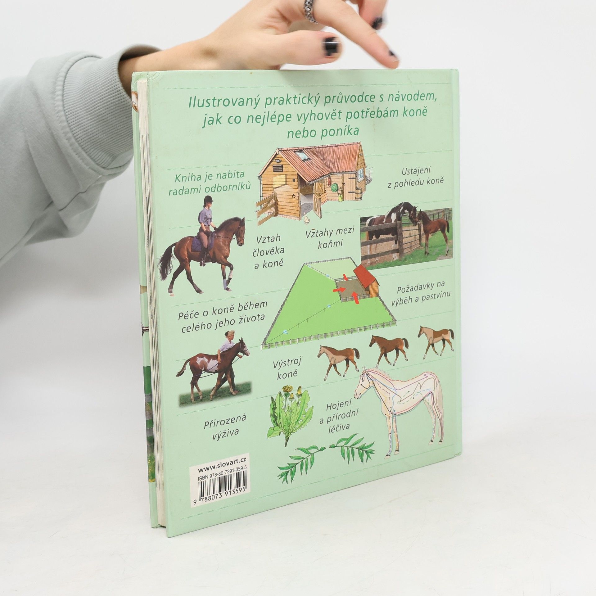 Ilustrovaný praktický průvodce s návodem, jak co nejlépe vyhovět potřebám koně nebo poníka. Kniha je nabitá radami odborníků. Najdete zde informace o vztazích mezi koňmi, o požadavcích na pastvinu, výstroji koně, přirozené výživě, hojení a přírodních léčivech.