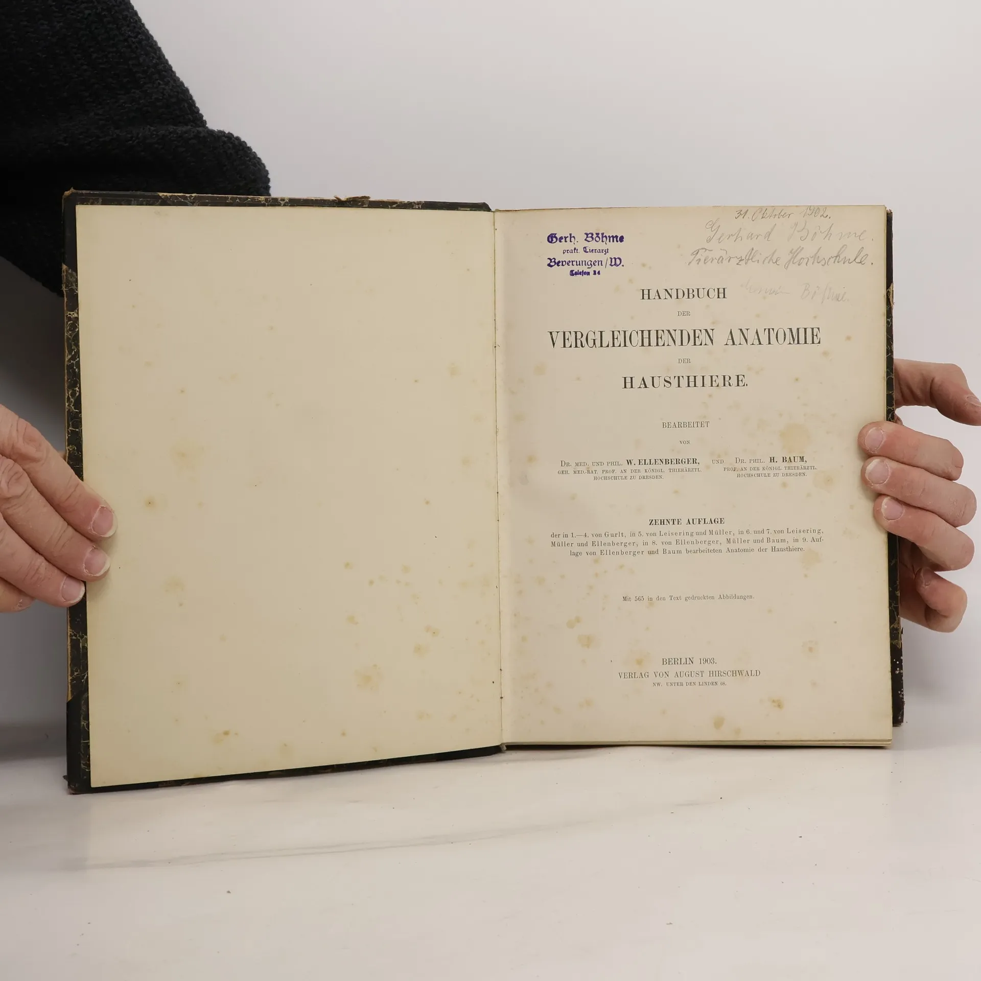 Handbuch der vergleichenden Anatomie der Haustiere, Wilhelm Ellenberger, Hermann Baum