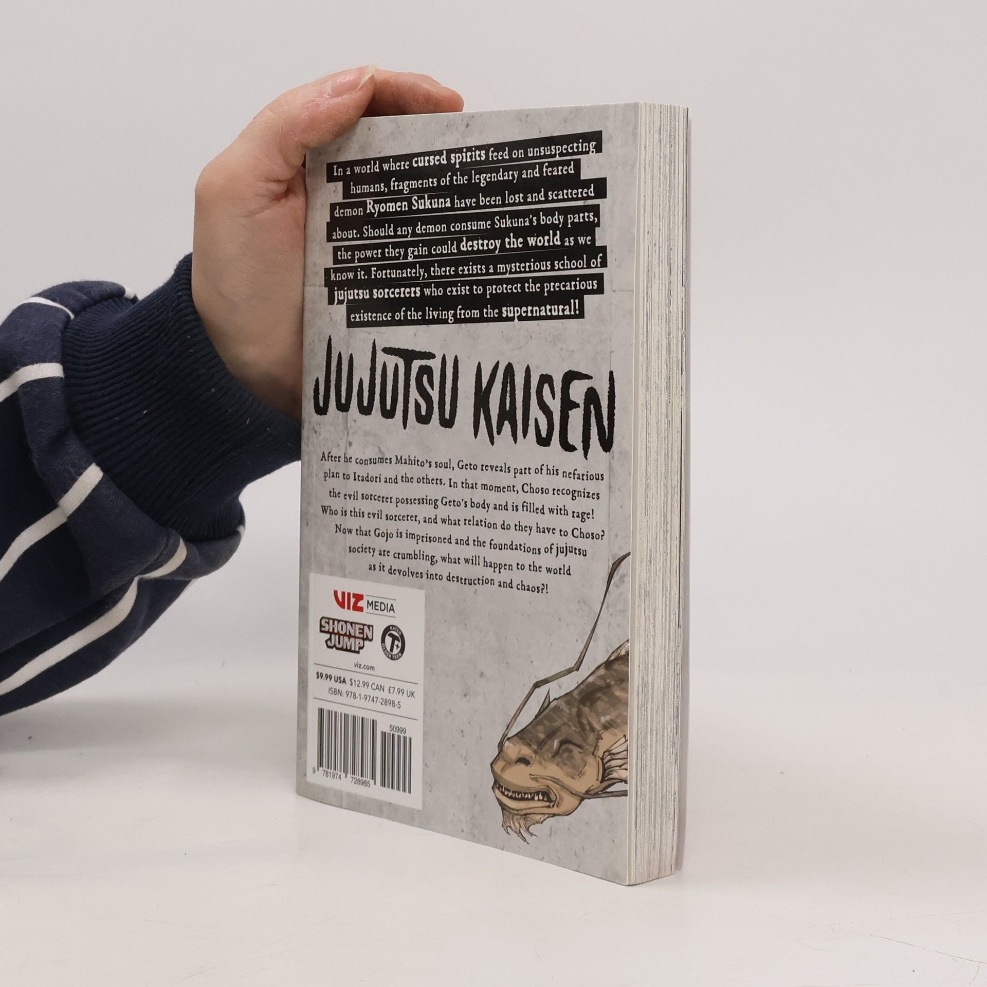 In a world where cursed spirits feed on unsuspecting humans, fragments of the legendary and feared demon Ryomen Sukuna have been lost and scattered about. Should any demon consume Sukuna’s body parts, the power they gain could destroy the world as we know it. Fortunately, there exists a mysterious school of jujutsu sorcerers who exist to protect the precarious existence of the living from the supernatural!After he consumes Mahito’s soul, Geto reveals part of his nefarious plan to Itadori and the others. In that moment, Choso recognizes the evil sorcerer possessing Geto's body and is filled with rage! Who is this evil sorcerer, and what relation do they have to Choso? Now that Gojo is imprisoned and the foundations of jujutsu society are crumbling, what will happen to the world as it devolves into destruction and chaos?!