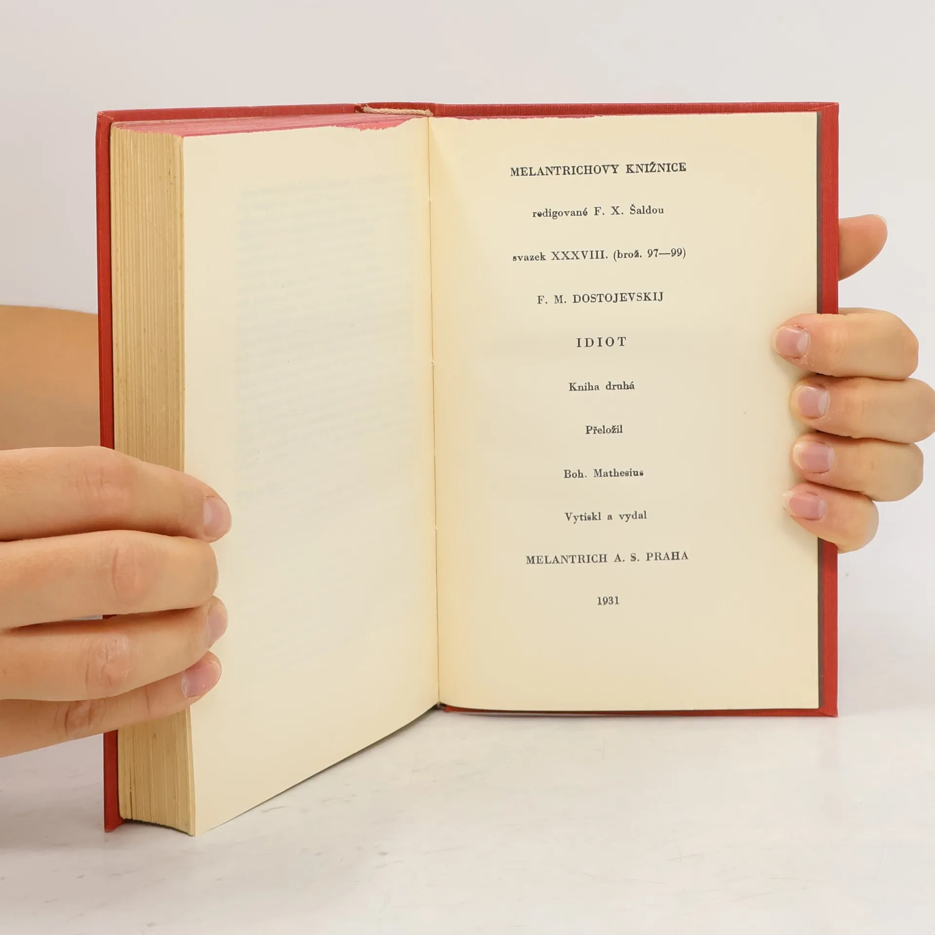 Dvousvazkové dílo. Román Idiot se řadí k nejznámějším dílům ruské literatury. Mladý kníže Myškin, zcela zchudlý a postižený epilepsií, prožije po návratu ze švýcarského sanatoria tak podivuhodné příběhy, že upadne znovu do své duševní nemoci. Setkává se s kupcem Parfjonem Rogožinem, kterého jeho žárlivost dovede až k vraždě milované Nastasji. Kníže však v něm vidí především nešťastného člověka a soucítí s ním. Sám se psychicky zhroutí. Lidé, kteří nemohou pochopit jeho dobrotu, označují Myškina za idiota, ačkoli ten má v sobě tolik vnitřní ušlechtilosti a lidskosti, že se tím vymyká svému okolí. Myškin okouzluje svou nevinností a vyrovnaností – autor představuje hrdinu jako člověka, který by mohl povznést svět; jemomže Myškin svou filozofií pokory a všelásky přivádí do neštěstí i ty, které miluje, a nakonec sám sebe…