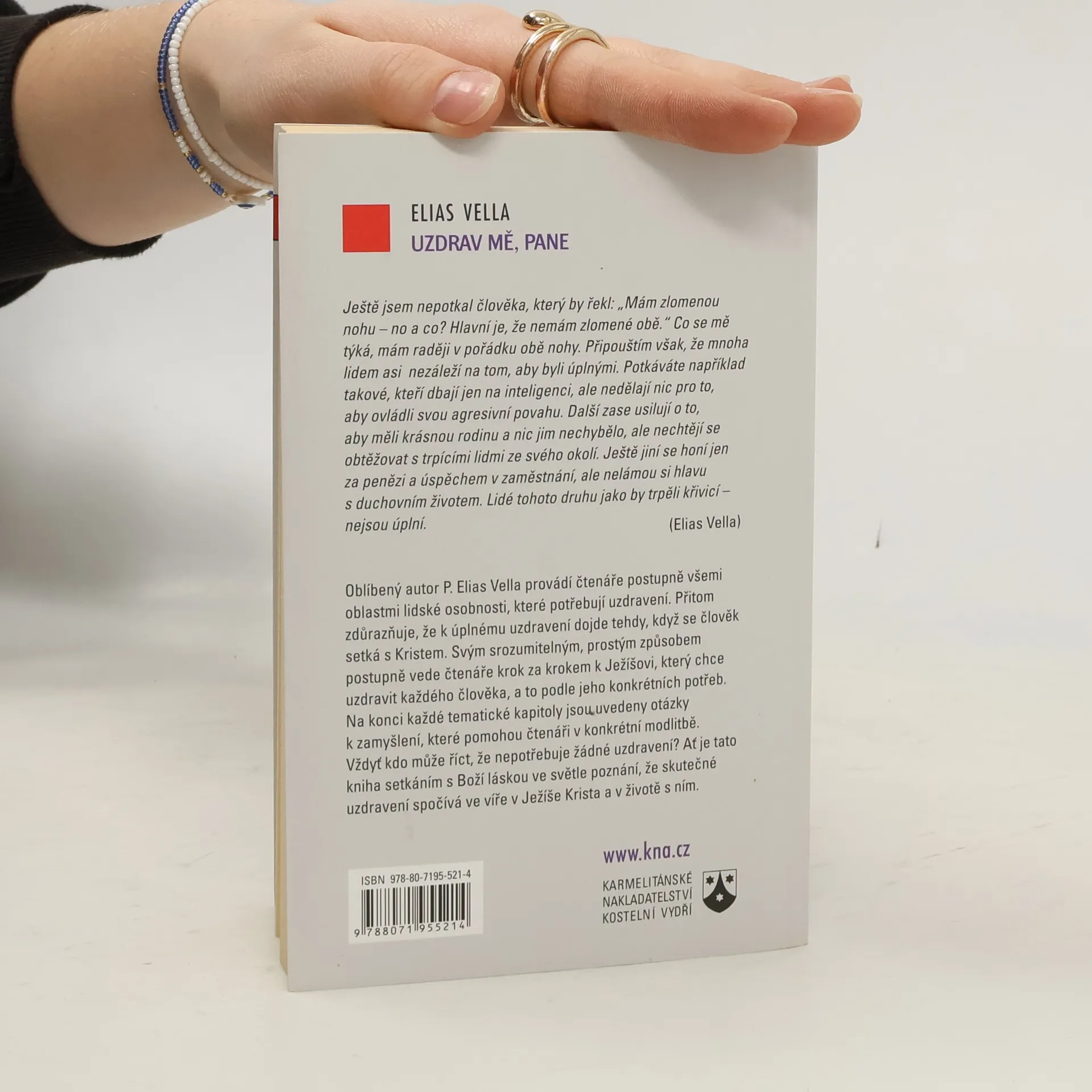 Oblíbený autor P. Elias Vella provádí čtenáře postupně všemi oblastmi lidské osobnosti, které potřebují uzdravení. Přitom zdůrazňuje, že k úplnému uzdravení dojde tehdy, když se člověk setká s Kristem. Svým srozumitelným, prostým způsobem, postupně, vede čtenáře krok za krokem k Ježíšovi, který chce uzdravit každého člověka, a to podle jeho konkrétních potřeb. Na konci každé tematické kapitoly jsou uvedeny otázky k zamyšlení, které pomohou čtenáři v konkrétní modlitbě. Vždyť kdo může říct, že nepotřebuje žádné uzdravení? Ať je tato kniha setkáním s Boží láskou, ve světle poznání, že skutečné uzdravení spočívá ve víře v Ježíše Krista a v životě s ním.