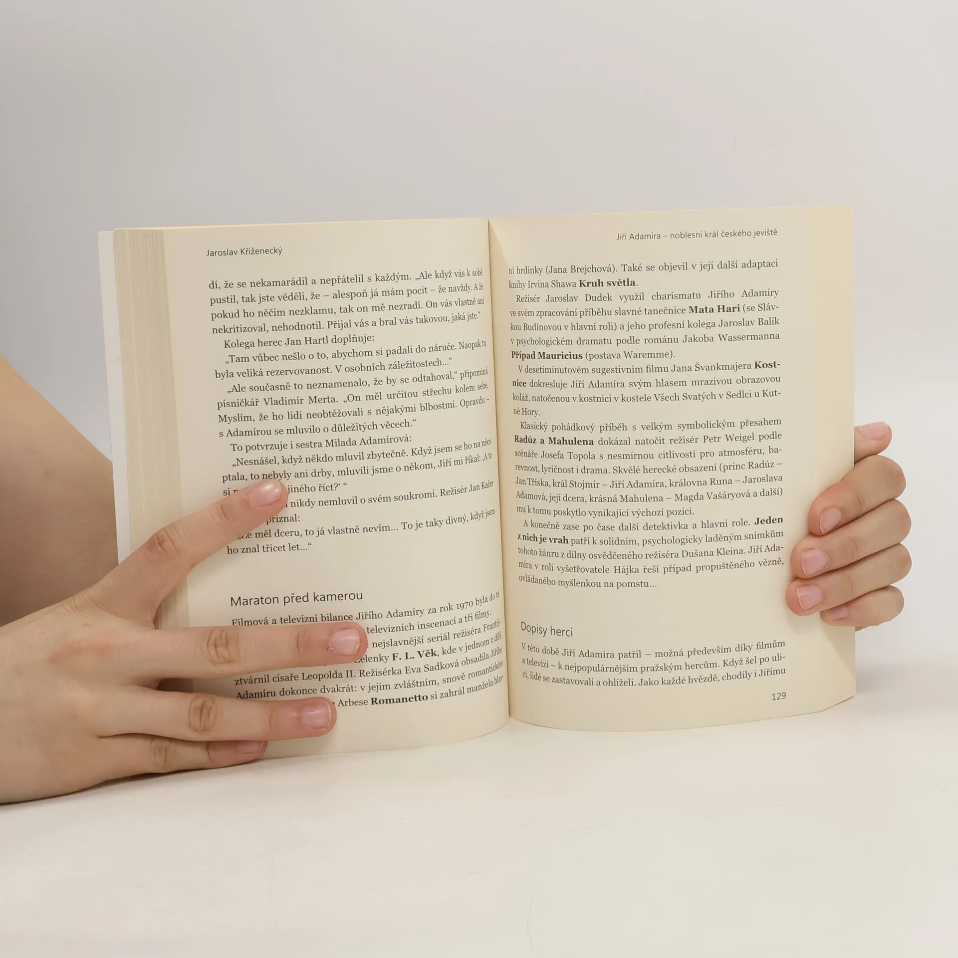 Jiří Adamíra patřil k nejlepším českým hercům druhé poloviny dvacátého století. Jeho úchvatné herecké výkony byly vystavěny nejen na nesporném talentu, ale také na pronikavém intelektu, hlubokých znalostech, přemýšlivosti o rolích a zodpovědnosti k divákovi. S jeho fascinujícím osobním charismatem se pojila i přesná dávka odzbrojujícího suchého humoru a ironie. Vedle obdivuhodné kariéry, lemované stovkami dokonale ztvárněných rolí, prožil také zajímavý osobní příběh, bohužel předčasně ukončený zákeřnou nemocí. Vůbec první publikace, věnovaná tomuto velkému herci, přibližuje obě zmíněné životní linie Jiřího Adamíry nejen na základě důkladného studia všech dostupných zdrojů, ale také díky unikátním a nepublikovaným výpovědím kolegů, životních partnerů a přátel. Za všechny jmenujme životní partnerky Hanu Maciuchovou a Ljubu Benešovou, syna Marka Adamíru či kolegy Miroslava Krobota, Ivana Trojana nebo Jana Kačera.