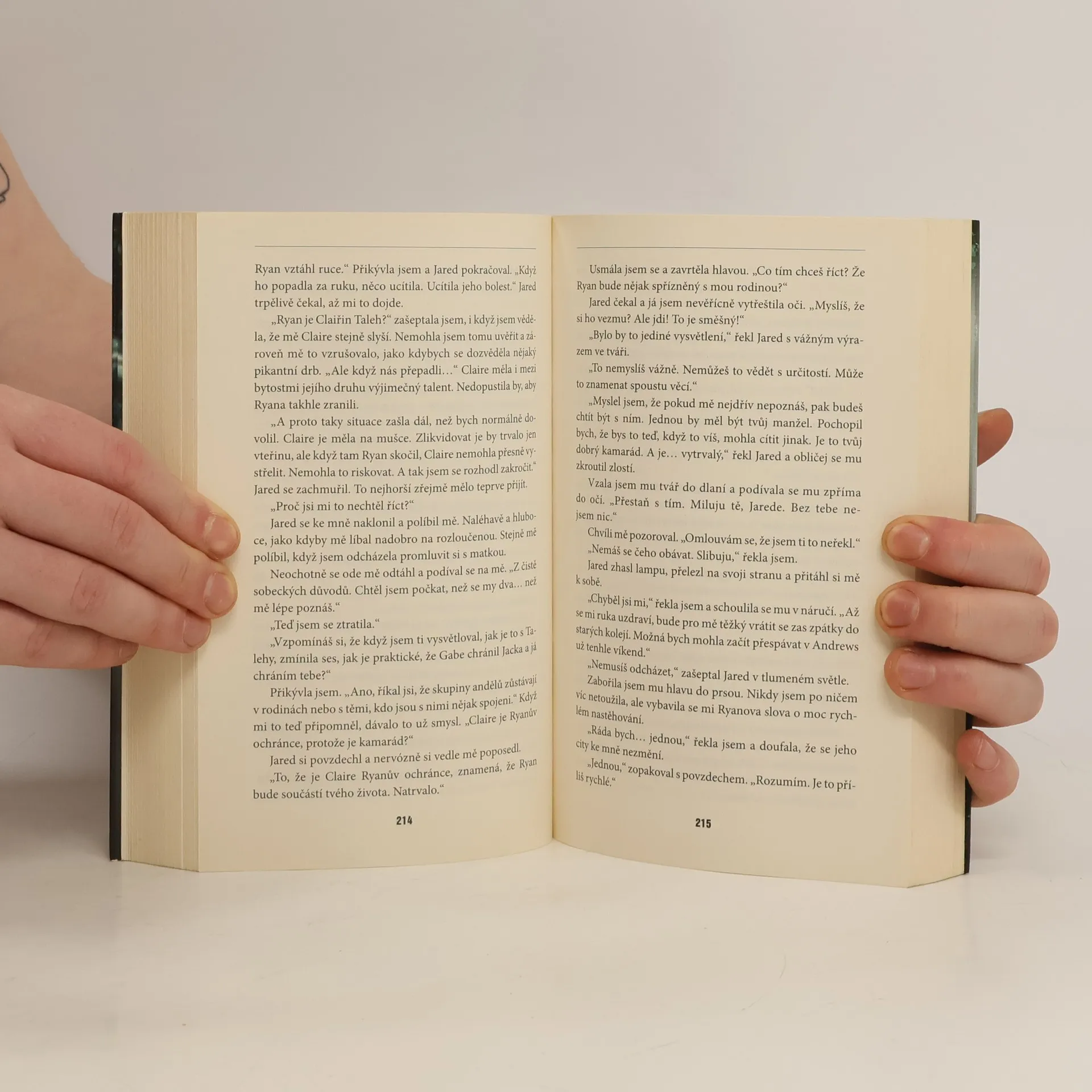 Strhující paranormální romance plná napětí. V městečku Providence se studentka Nina Greyová dostane do ohniska války mezi nebem a peklem. Dívka, otřesená náhlou smrtí svého otce, se s Jaredem Ryelem seznámí úplnou náhodou… nebo si to aspoň myslí. Přestože ji ten pohledný a trochu tajuplný mladík přitahuje, Nina je vůči němu podezřívavá. A když se začnou rojit otázky bez odpovědí, Jared riskuje všechno, aby si udržel ženu, nad kterou má bdít – a prozradí jí tajemství, o němž přísahal, že je bude chránit…