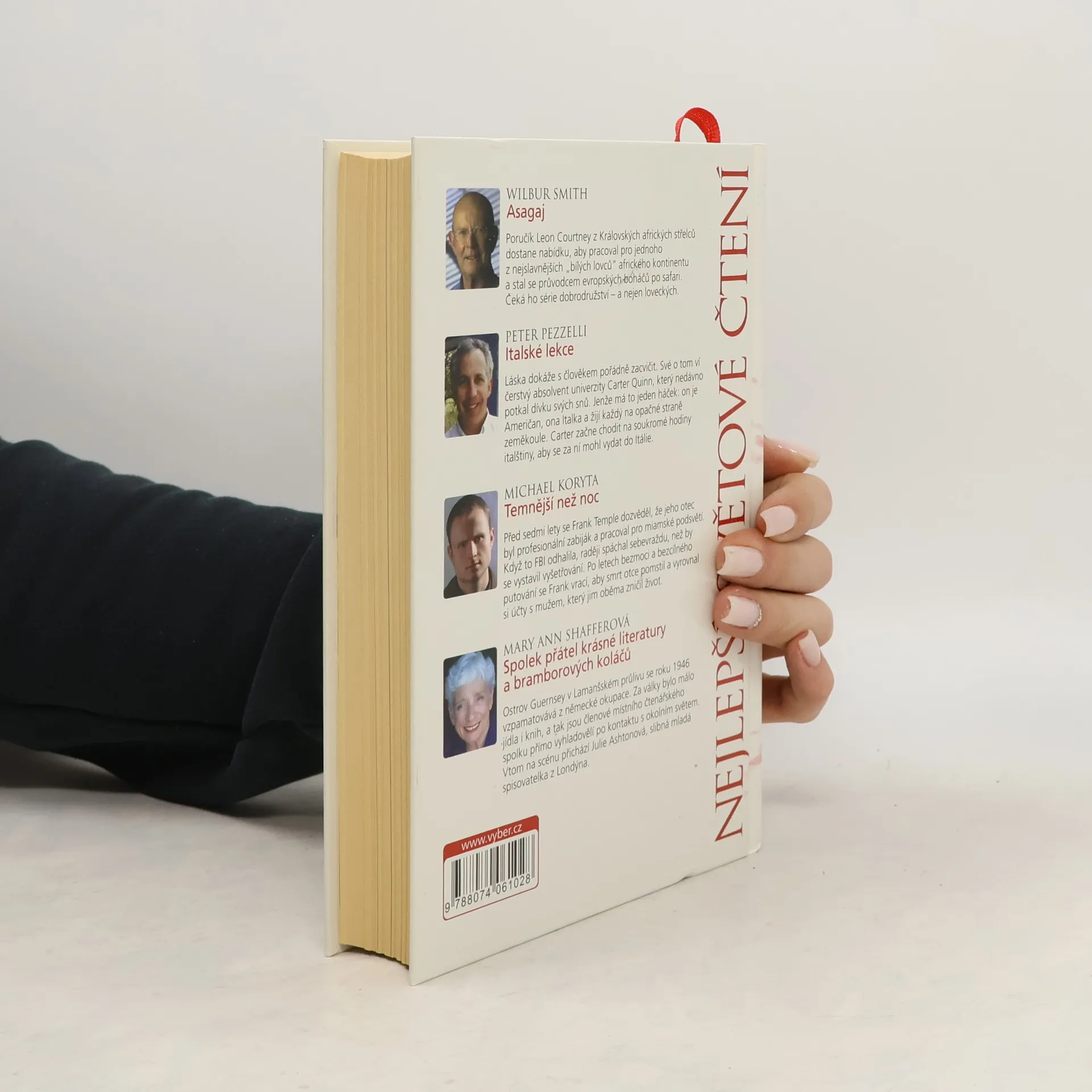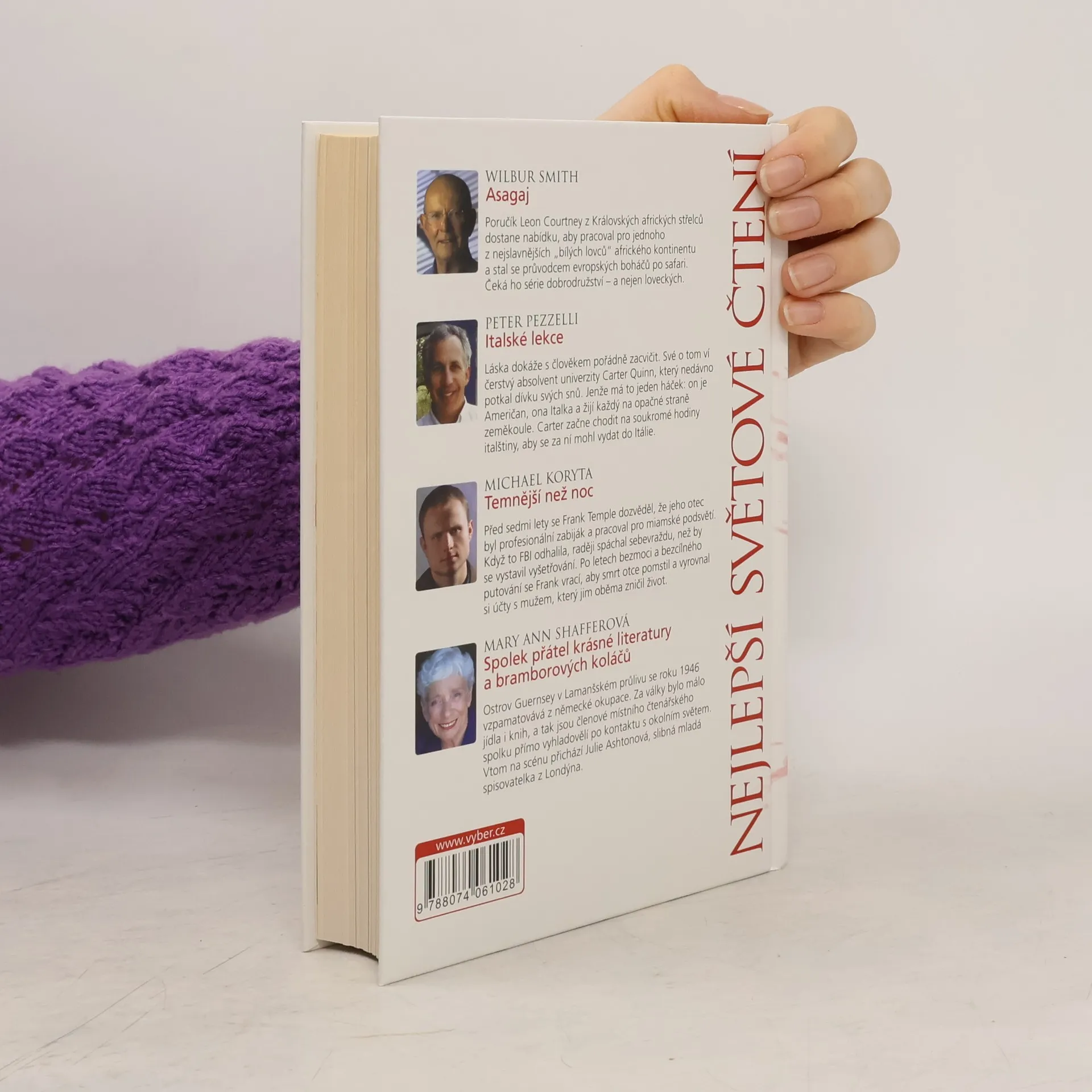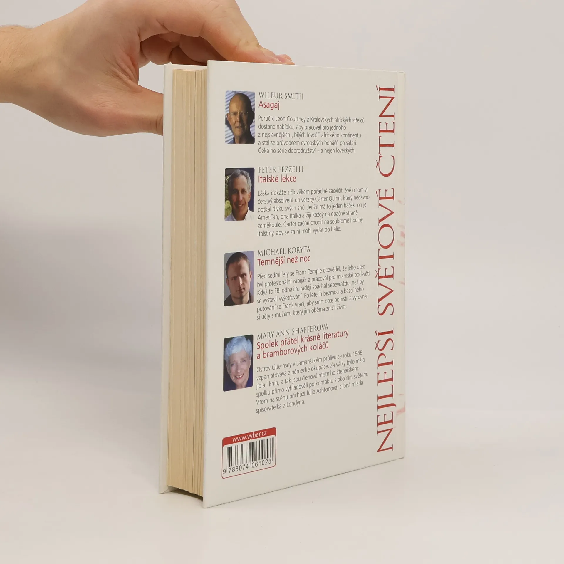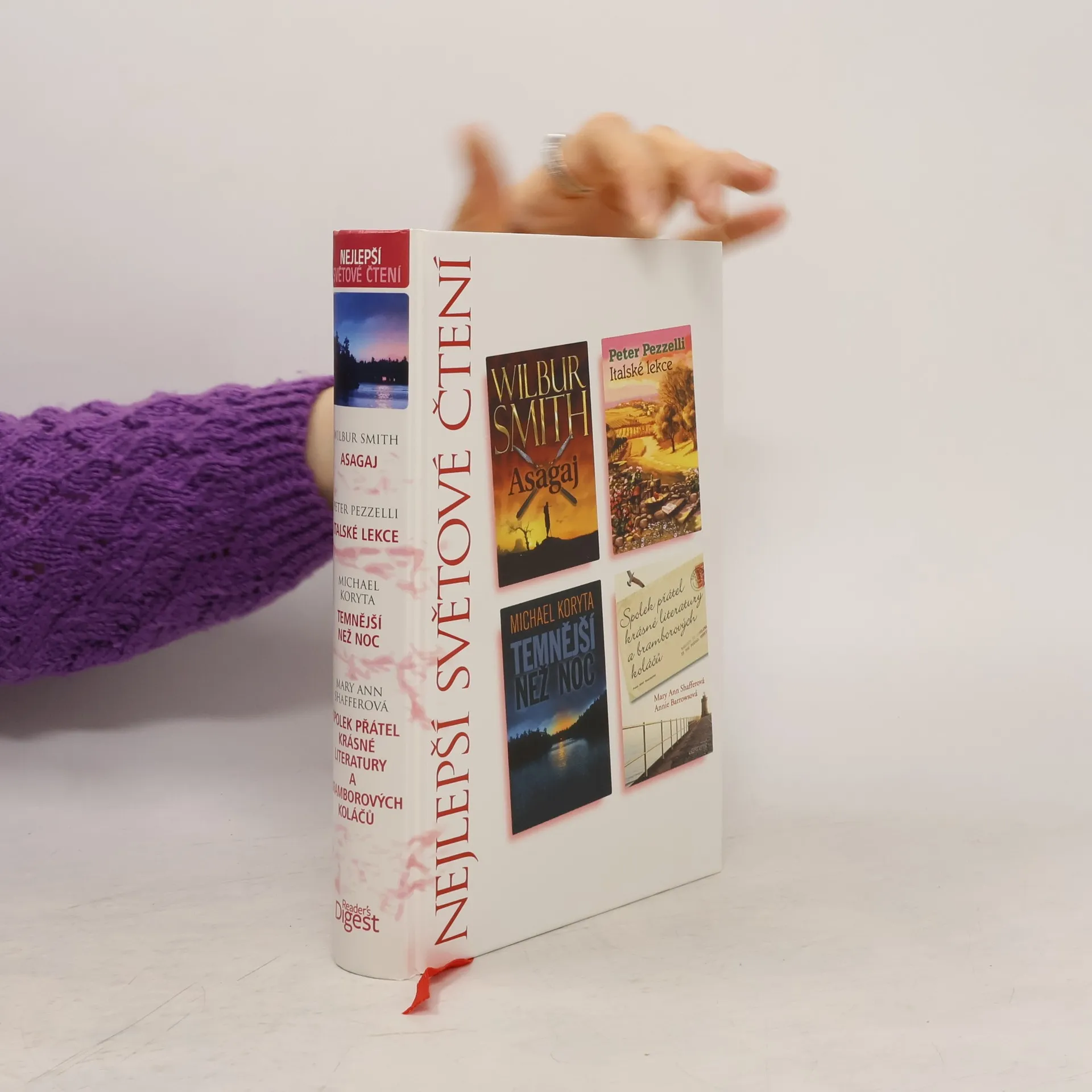 Asagaj, Italské lekce, Temnější než noc, Spolek přátel krásné literatury a bramborových koláčů, Wilbur Smith, Peter Pezzelli, Michael Koryta, Mary Ann Shaffer