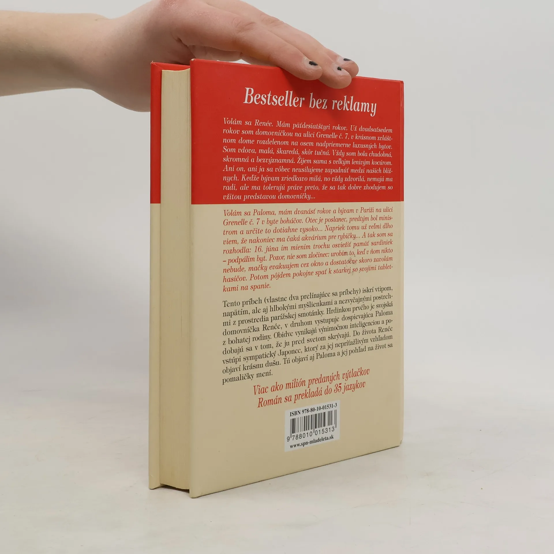 Tento príbeh iskriaci vtipom, napätím, ale aj hlbokými myšlienkami, vo Francúzsku nazvali longsellerom, keďže sa už dlho nachádza na prvých miestach predaja. Prekladá sa do 35 jazykov. Ide vlastne o dva prelínajúce sa príbehy: hrdinkou prvého je 54-ročná Renée, svojská recepčná v luxusnom dome v bohatej parížskej štvrti a v druhom vystupuje dospievajúca Paloma, obyvateľka domu a ministrova dcéra. Obidve nás zahrnú výstižnými postrehmi zo sveta umenia, ale aj z prostredia parížskej smotánky (napr. snobského zariadenia bytu, stolovania, z nákupov vo výpredaji značkových obchodov). Takýto život Palomu desí. Do života Renée zase vstúpi sympatický Japonec, ktorý za jej nepríťažlivým vzhľadom objaví krásnu dušu.