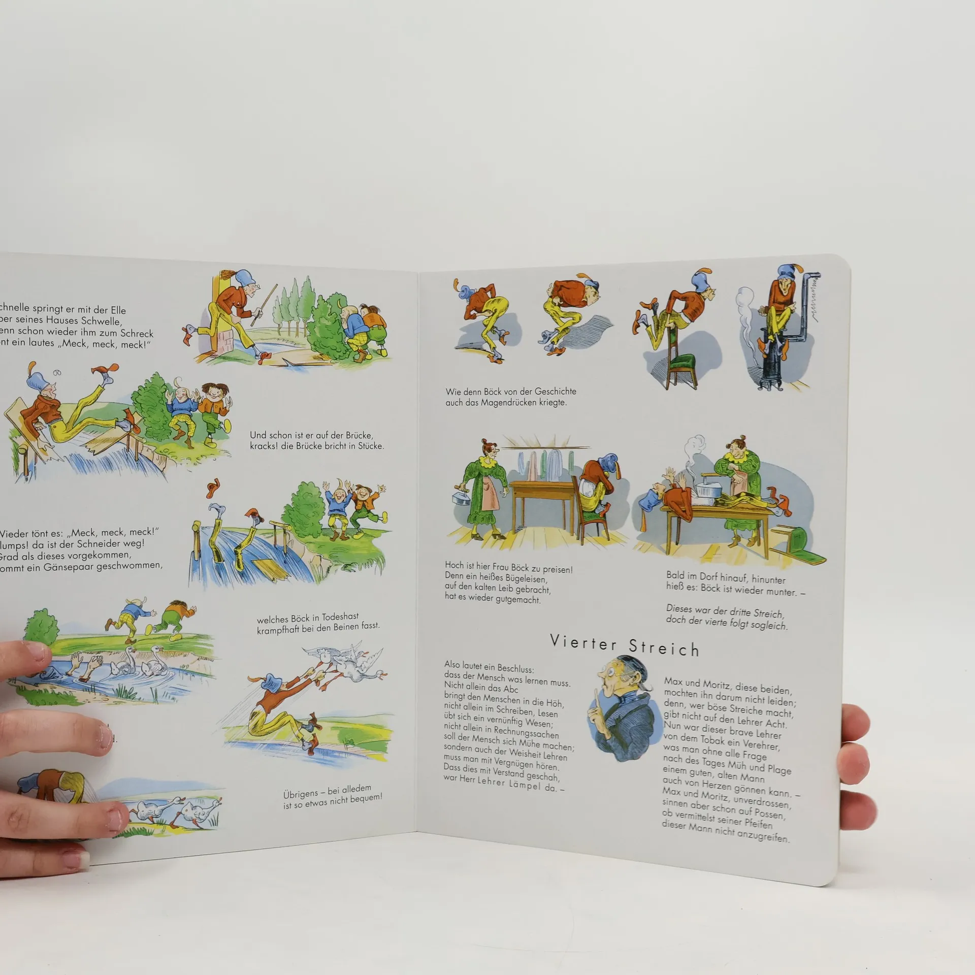 Der Kinderbuch-Klassiker - Strapazierfähige Pappe - abgerundete Ecken - kindgerechtes Großformat Ach, was muss man oft von bösen Kindern hören oder lesen! Wie zum Beispiel hier von diesen, Welche Max und Moritz hießen. Bis heute haben die Reime von Max und Moritz, die der Witwe Bolte die Hühner stehlen und dem Lehrer Lämpel Schießpulver in die Pfeife füllen, nichts von ihrer Faszination verloren. Schneider Böck, Onkel Fritz, Plisch und Plum, die beiden Hunde treffend hat Wilhelm Busch seine Figuren beschrieben und das mitunter rasante Geschehen in witzigen Bildern festgehalten. Die Geschichten von Wilhelm Busch werden in der originalen Fassung wiedergegeben. Sie enthalten teilweise überholte kulturelle Darstellungen.