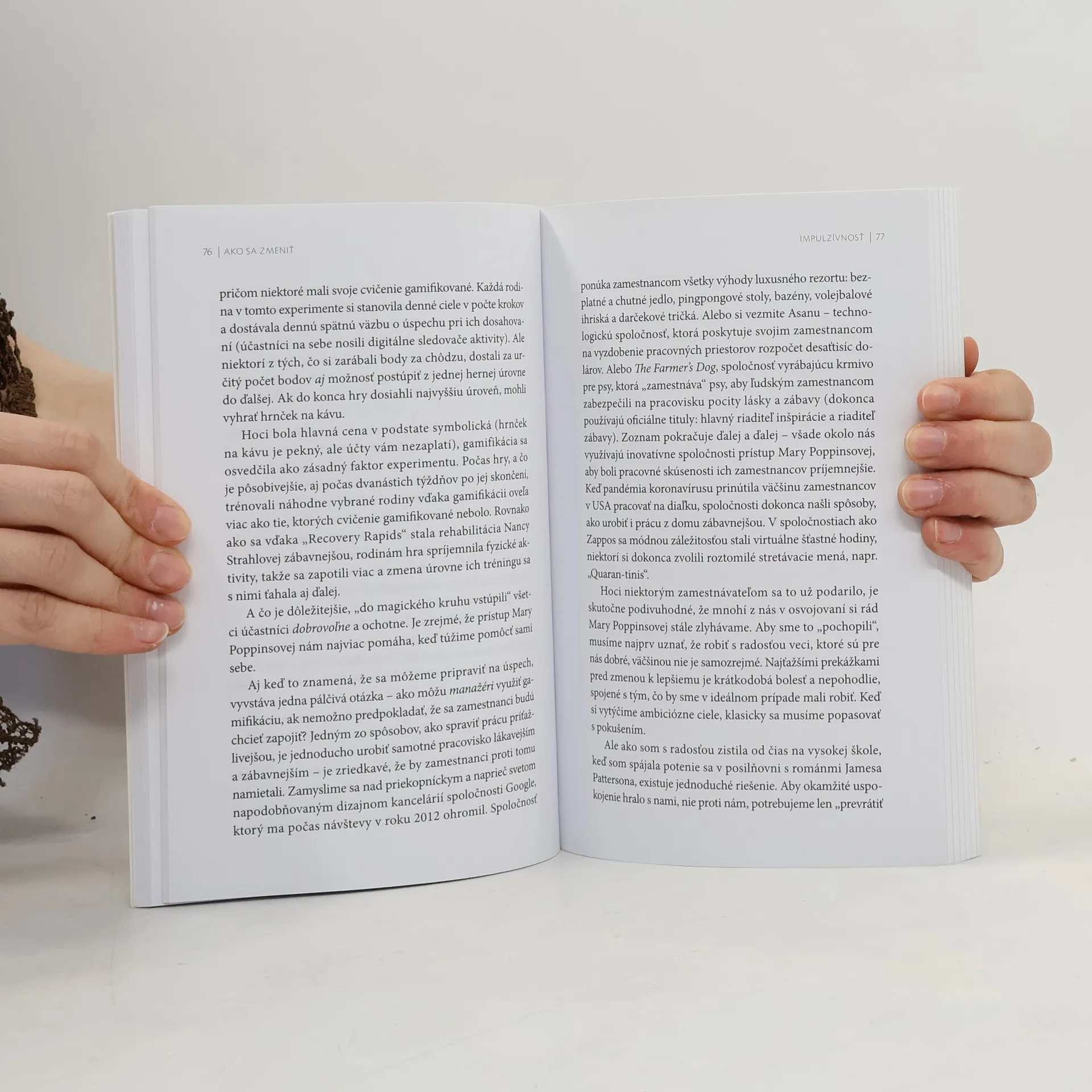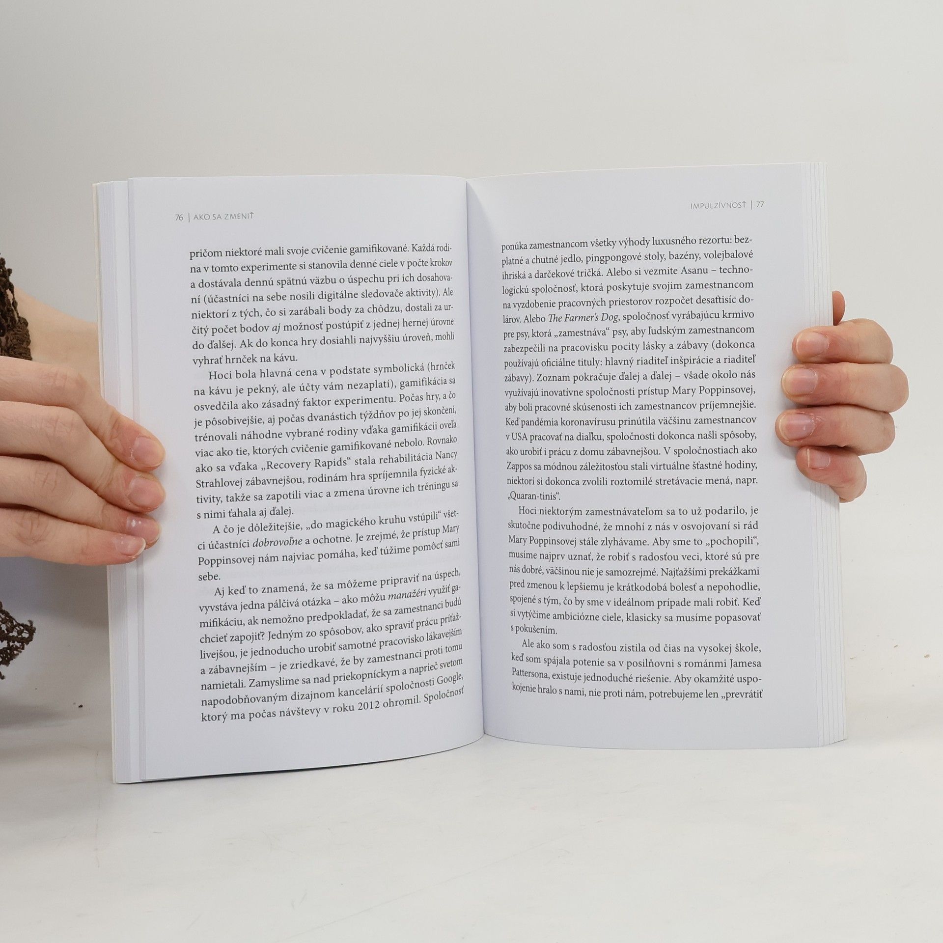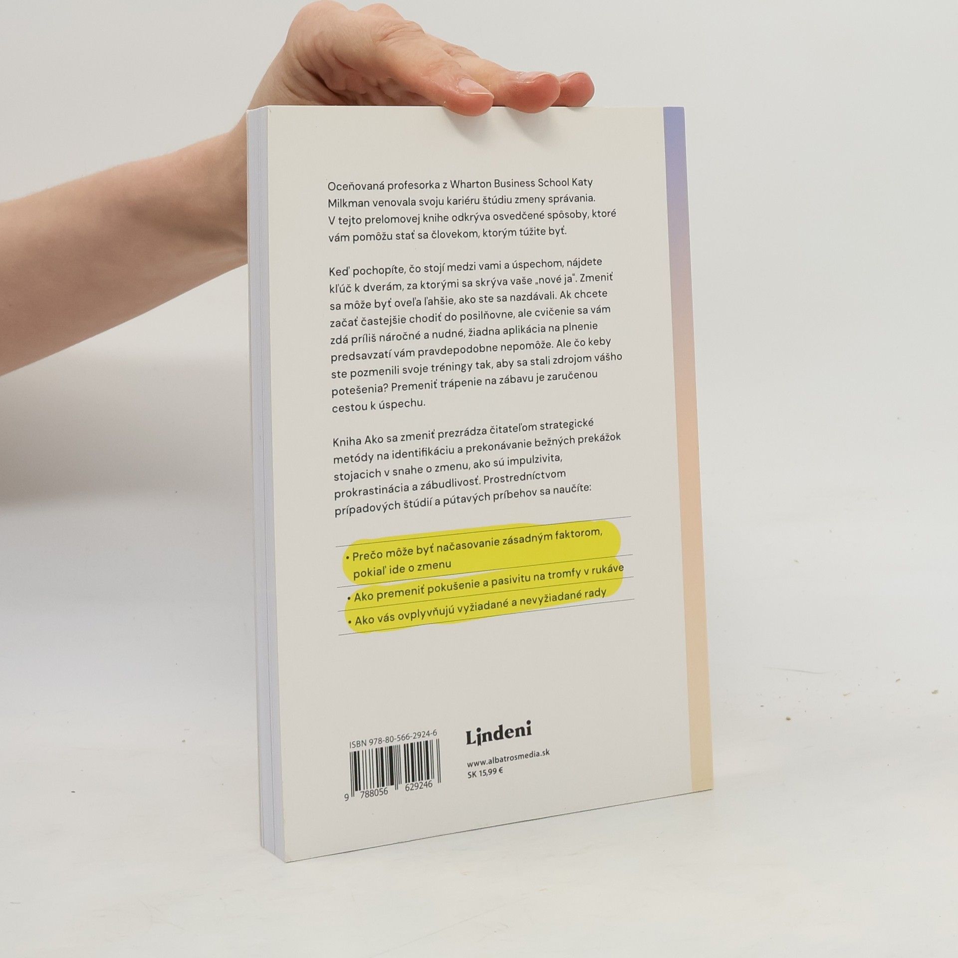 Oceňovaná profesorka z Wharton Business School Katy Milkman zasvätila svoju kariéru štúdiu zmeny správania. V tejto prelomovej knihe odkrýva osvedčené spôsoby, ktoré vám pomôžu stať sa osobou, ktorou túžite byť. Keď pochopíte, čo vás brzdí na ceste k úspechu, nájdete kľúč k dverám vášho „nového ja“. Zmena môže byť jednoduchšia, než ste si mysleli. Ak sa snažíte častejšie chodiť do posilňovne, ale cvičenie sa vám zdá náročné a nudné, bežné aplikácie na plnenie predsavzatí vám pravdepodobne nepomôžu. Čo keby ste však premenili svoje tréningy na zdroj potešenia? Premeniť trápenie na zábavu je osvedčený spôsob, ako dosiahnuť úspech. Kniha prezrádza strategické metódy na identifikáciu a prekonávanie bežných prekážok, ako sú impulzivita, prokrastinácia a zábudlivosť. Prostredníctvom prípadových štúdií a pútavých príbehov sa naučíte, prečo je načasovanie kľúčové, ako premeniť pokušenie a pasivitu na výhody a aký vplyv majú rady, ktoré dostávate. „Povinné čítanie pre každého, kto chce zmeniť svoje návyky – alebo svoj život – k lepšiemu.“ — Charles Duhigg. „Toto je vaša šanca. Ak ste pripravení na zmenu, táto brilantná kniha vám pomôže premeniť vaše zámery na skutočnosť.“ — Seth Godin.