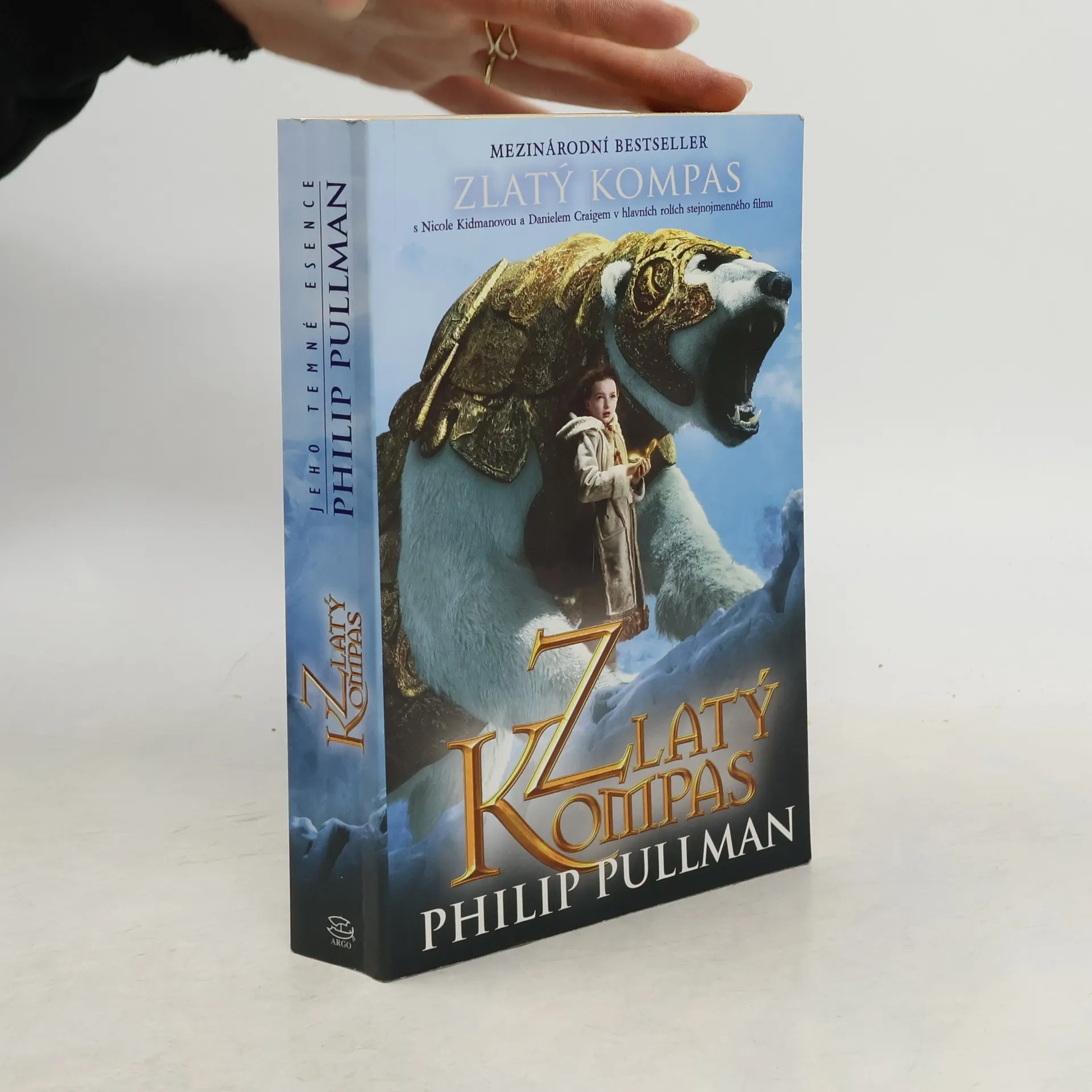 Brožované vydání prvního dílu rozsáhlé románové fantasy trilogie. V paralelním světě podobném tomu našemu žije dvanáctiletá Lyra. Každý člověk tam má svého daemona, který ho provází po celý život a je jakýmsi vnějším zpodobněním jeho povahy, a žijí tu i jiné podivuhodné bytosti, například mluvící medvědí kyrysníci nebo půvabné divoženky létající na borových větvích. Lyra s jejich pomocí putuje daleko na sever, aby zachránila svého kamaráda Rogera a další děti, které unesli obávaní Vrahouni. Na cestě ji provází alethiometr, přístroj podobný zlatému kompasu, který tomu, kdo s ním umí zacházet, odpoví na každou otázku…