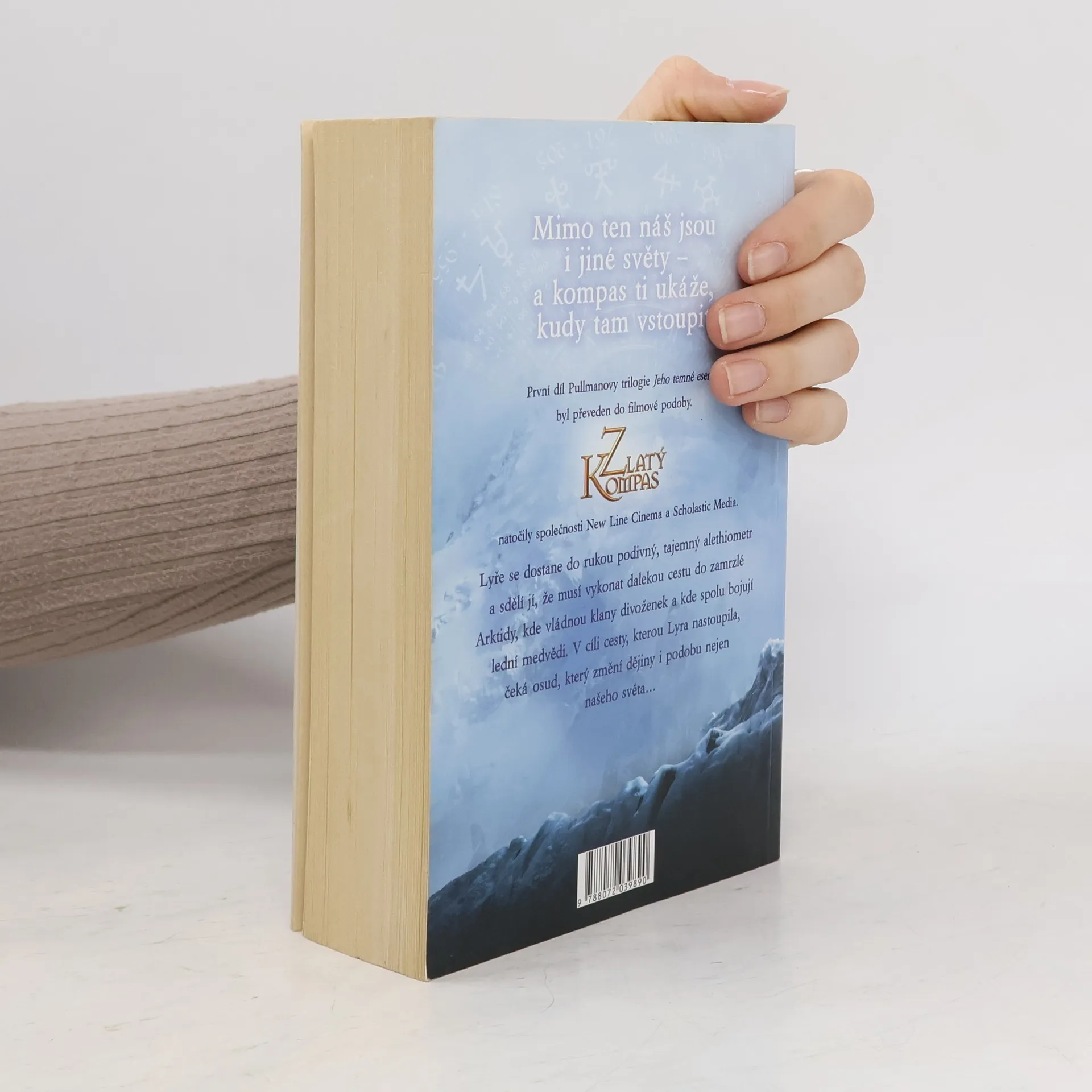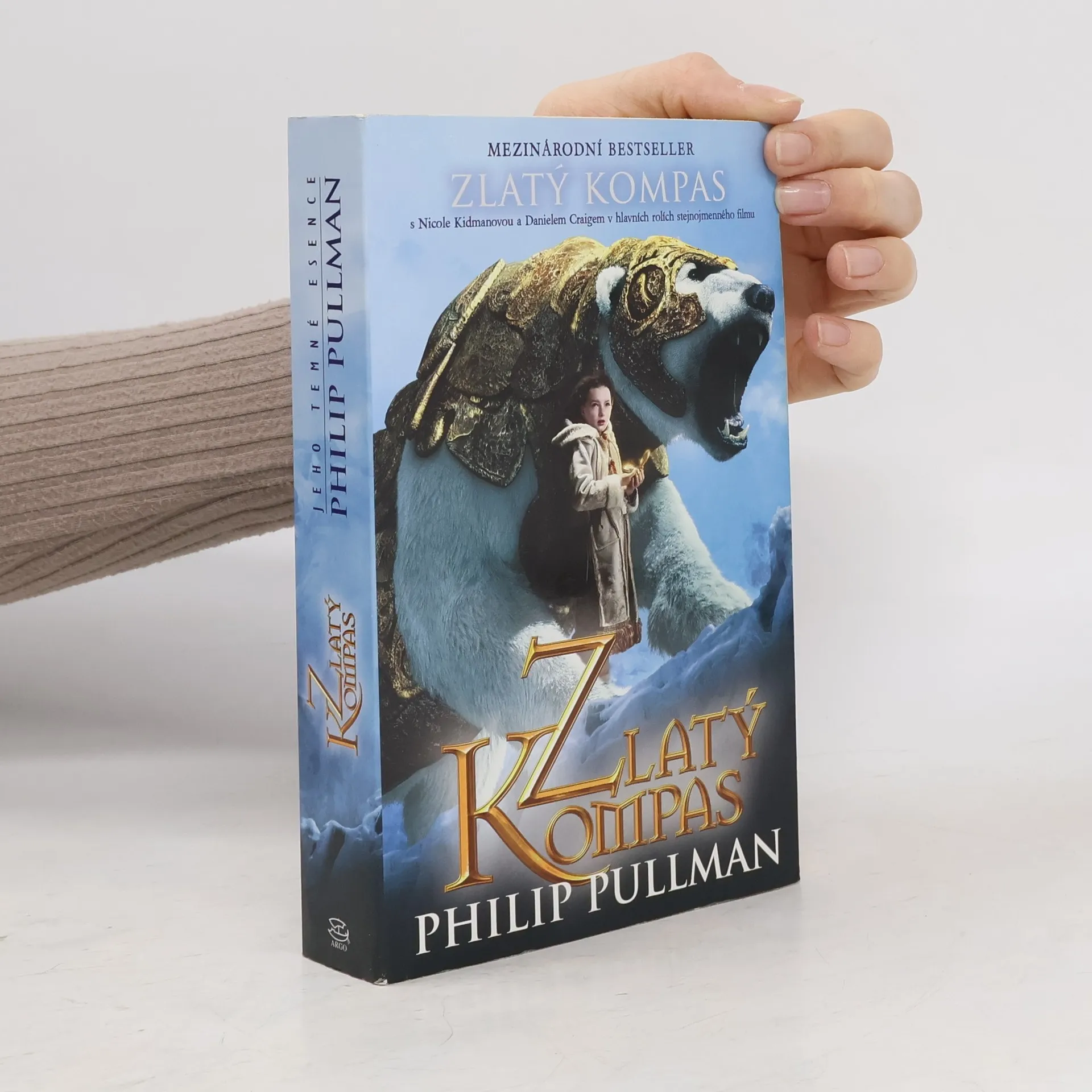 Brožované vydání prvního dílu rozsáhlé románové fantasy trilogie. V paralelním světě podobném tomu našemu žije dvanáctiletá Lyra. Každý člověk tam má svého daemona, který ho provází po celý život a je jakýmsi vnějším zpodobněním jeho povahy, a žijí tu i jiné podivuhodné bytosti, například mluvící medvědí kyrysníci nebo půvabné divoženky létající na borových větvích. Lyra s jejich pomocí putuje daleko na sever, aby zachránila svého kamaráda Rogera a další děti, které unesli obávaní Vrahouni. Na cestě ji provází alethiometr, přístroj podobný zlatému kompasu, který tomu, kdo s ním umí zacházet, odpoví na každou otázku…