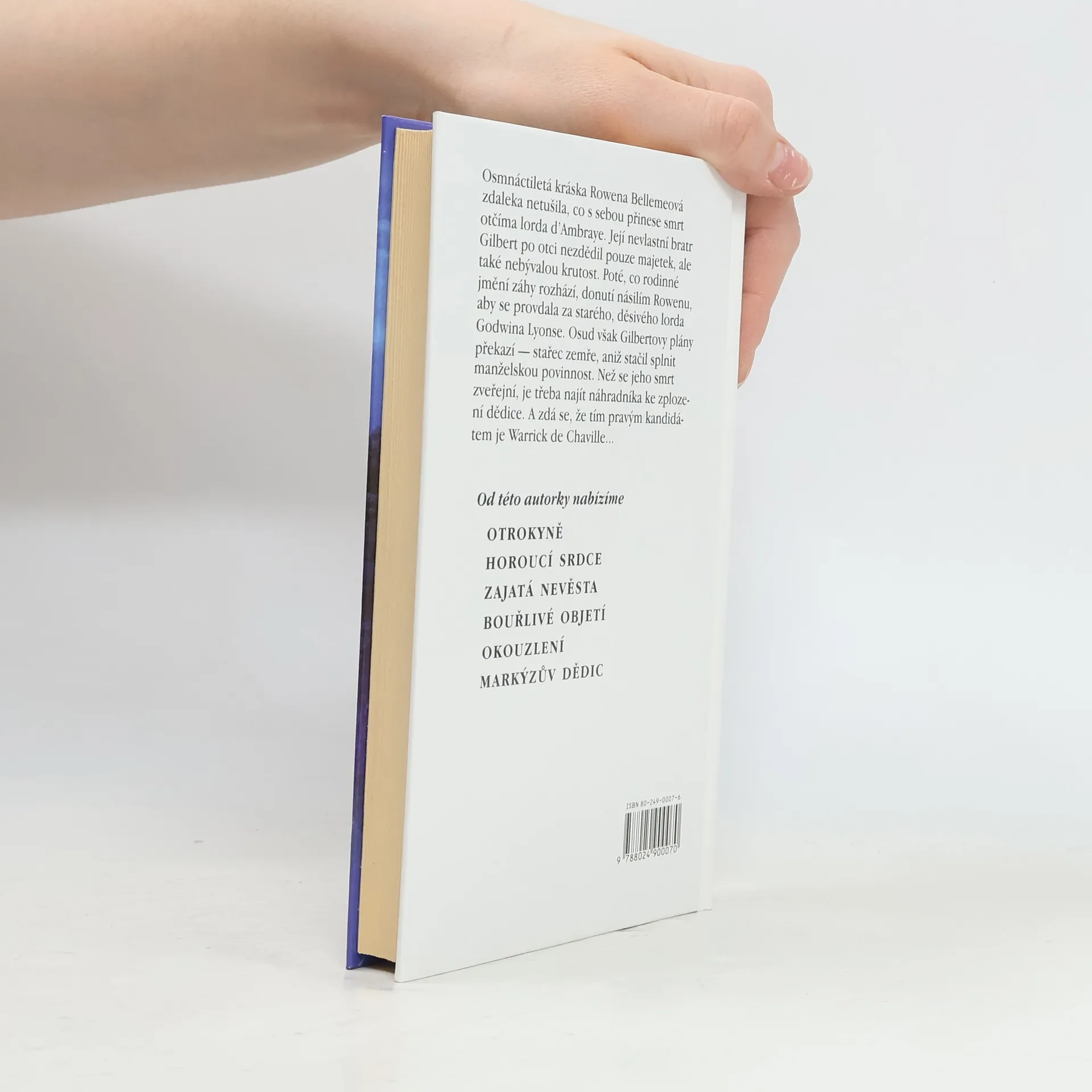 Osmnáctiletá kráska Rowna Bellemeová zdaleka netušila, co s sebou přinese smrt otčíma lorda d´Ambraye. Její nevlastní bratr Gilbert po otci nezdědil pouze majetek, ale také nebývalou krutost. Poté, co rodinné jmění záhy rozhází, donutí násilím Rowenu, aby se provdala za starého, děsivého lorda Godwina Lyonse. Osud však Gilbertovy plány překazí – stařec zemře, aniž stačil splnit manželskou povinnost. Než se jeho smrt zveřejní, je třeba najít náhradníka ke zplození dědice. A zdá se, že tím pravým kandidátem je Warrick de Chaville …... celý text