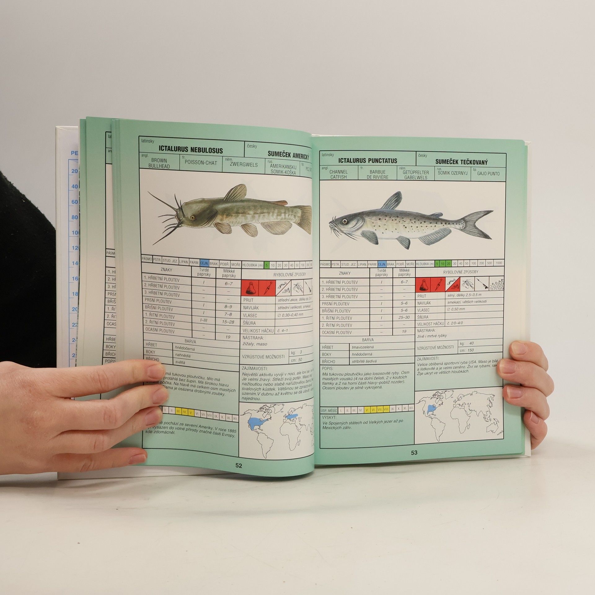 Každá stránka je věnována jednomu druhu (řazeno abecedně podle latinských názvů ryb, pak následuje název v češtině, dále v angličtině, francouzštině, němčině, ruštině a španělštině). Doprovodné barevné ilustrace jednotlivých ryb jsou naprosto přesné pro jejich identifikaci a dále jsou připojeny důležité informace - vodní pásma, hloubka, ve které se ryba vyskytuje, měsíc lovu, rybolovné způsoby (v piktogramech), rybářské náčiní a další zajímavosti. Na závěr je připojen český abecední seznam popisovaných ryb.