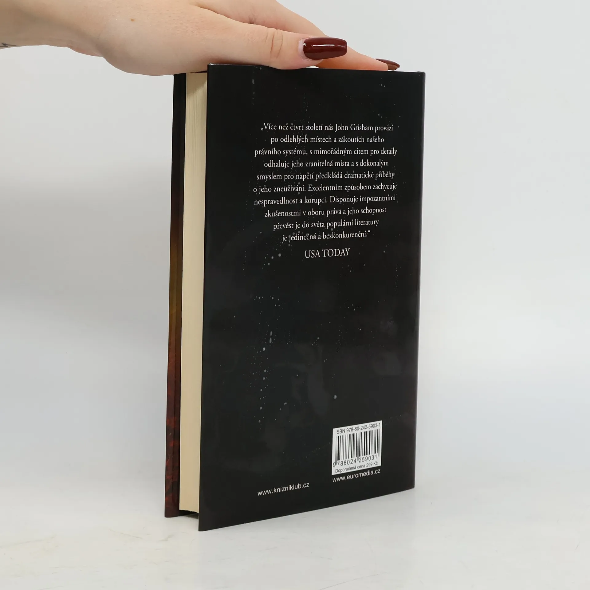 Nejnovější román Johna Grishama – včetně připojené bonusové povídky Svědek procesu – přináší další strhující příběh, který potvrzuje výjimečné a neotřesitelné postavení tohoto autora v žánru právnických thrillerů. Soudci jsou čestní a spravedliví. Jejich poctivost a nestrannost tvoří základ dobře fungujícího právního systému. Co když ale někdo z nich obejde zákon nebo přijme úplatek? Lacy Stoltzovou, zaměstnankyni Kárné komory dohlížející nad etickým chováním soudců, kontaktuje záhadný muž a slíbí jí odhalení nejzkorumpovanějšího vykonavatele práva v dějinách USA. Informátor byl kdysi sám právníkem, zdá se tedy, že může poskytnout zasvěcená fakta. Ale odkud je bere? A kdo obviňovaného soudce financuje? Odhalování takových finančních toků, zvlášť stojí-li za nimi mafie, hrozí vždy nebezpečím. Tentokrát však doslova smrtelným…