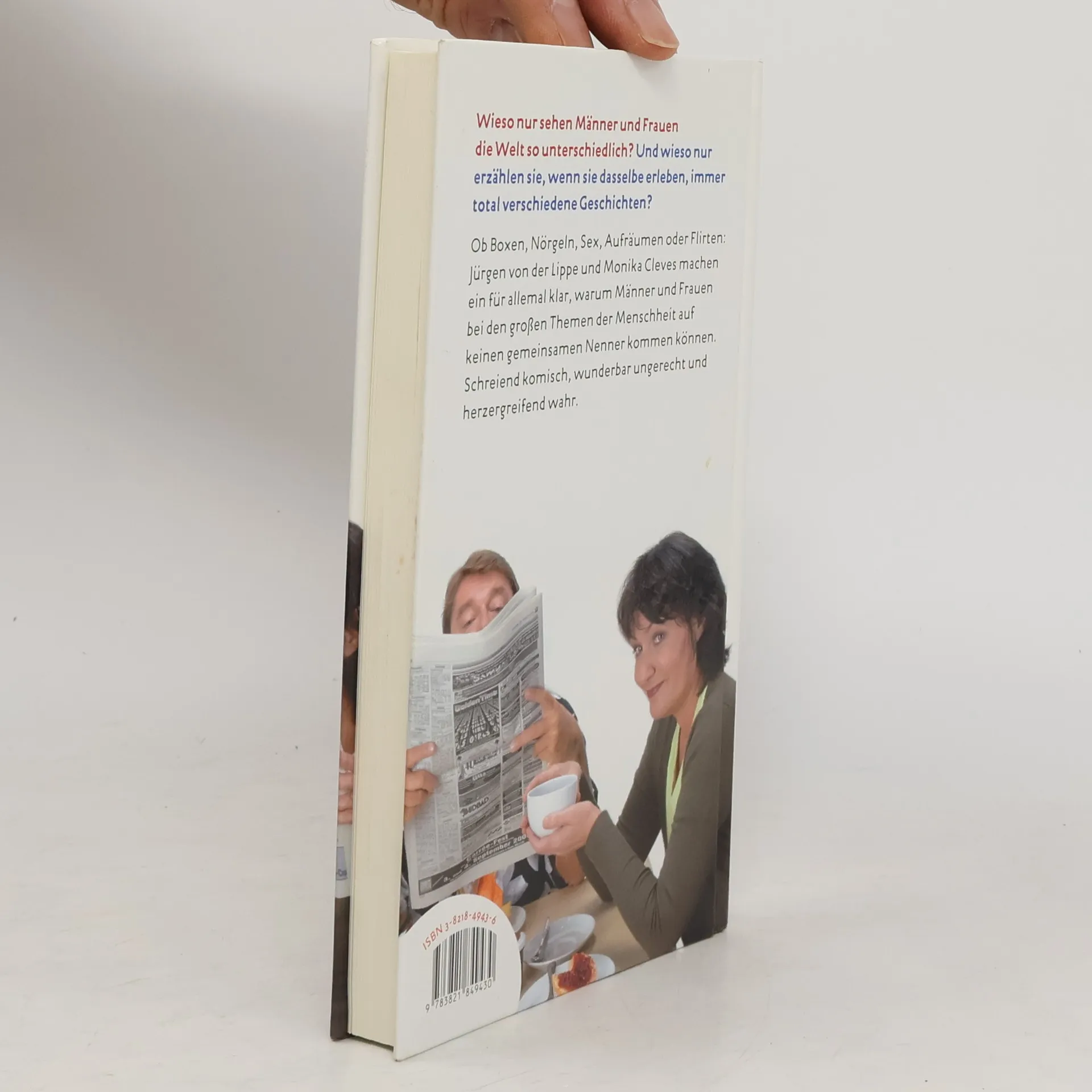 Jürgen von der Lippe in Hochform! Wieso nur erzählen Männer und Frauen, die dasselbe erleben, immer total verschiedene Geschichten? Und wieso nur sehen sie die Welt total unterschiedlich? Haben sie womöglich verschiedene Augen? Oder werden Informationen anders verarbeitet? Jürgen von der Lippe: „Es ist ein Unterschied, ob man von aller Welt geliebt aufwächst, weil gutaussehend, attraktiv, umschwärmt, oder ob man sich jeden sexuellen Kontakt hart erarbeiten musste, wie ich. Ebenso prägt es die Weltsicht, ob man kränklich ist und die Mehrzahl der handelsüblichen ärztlichen Instrumente schon im eigenen Leib verspürte, oder ob man selbst einen Schädelbruch ohne Hinzuziehung eines Arztes mit Bachblüten attackieren würde, wie Frau Cleves. Ach, was rede ich viel, lesen Sie und erkennen Sie sich selbst wieder, in wem auch immer! Viel Spaß.“ Monika Cleves: „Es ist ein Riesenvorteil, zu zweit ein Buch zu schreiben. Man hat nur die halbe Arbeit und wenn es ein Flop wird, hat der andere Schuld.“ Die großen Themen der Menschheit - Aufräumen, Boxen, Sex und noch ein paar mehr - aus der Sicht eines Mannes und einer Frau. Ein herrlicher Spaß voller hintersinniger Komik.