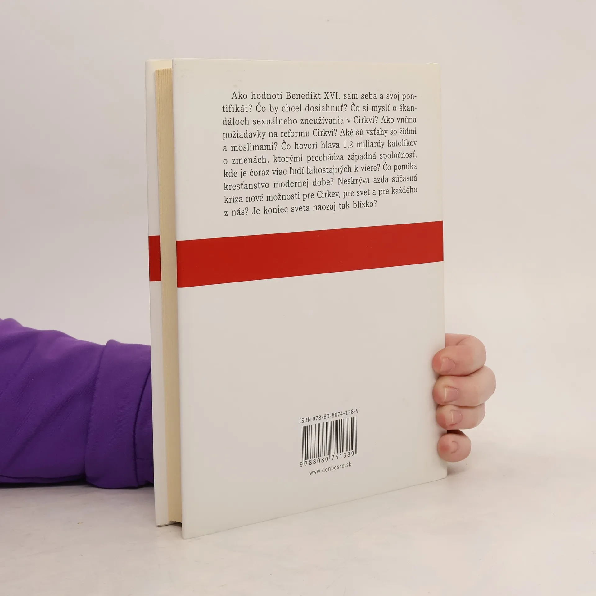 Pápež, Cirkev a znamenia čias Ako hodnotí Benedikt XVI. sám seba a svoj pontifikát? Čo by chcel dosiahnuť? Čo si myslí o škandáloch sexuálneho zneužívania v Cirkvi? Ako vníma požiadavky na reformu Cirkvi? Aké sú vzťahy so židmi a moslimami? Čo hovorí hlava 1,2 miliardy katolíkov o zmenách, ktorými prechádza západná spoločnosť, kde je čoraz viac ľudí ľahostajných k viere? Čo ponúka kresťanstvo modernej dobe? Neskrýva azda súčasná kríza nové možnosti pre Cirkev, pre svet a pre každého z nás? Je koniec sveta naozaj tak blízko? Unikátny rozhovor nemeckého novinára s Benediktom XVI., v ktorom pápež, pre niektorých možno prekvapujúco, nič nezahmlieva. V mysliach mnohých je pápež ten, ktorému nemožno v ničom odporovať, čo môže byť dôvodom, pre ktorý ho možno mnohí neobľubujú, či ním opovrhujú. Ako však sám v knihe zdôrazňuje – každý je slobodný mu protirečiť… V knihe sa osobne stretnete s človekom, otvoreným a pokorným, ktorý sa pred šiestimi rokmi stal hlavou Katolíckej cirkvi.