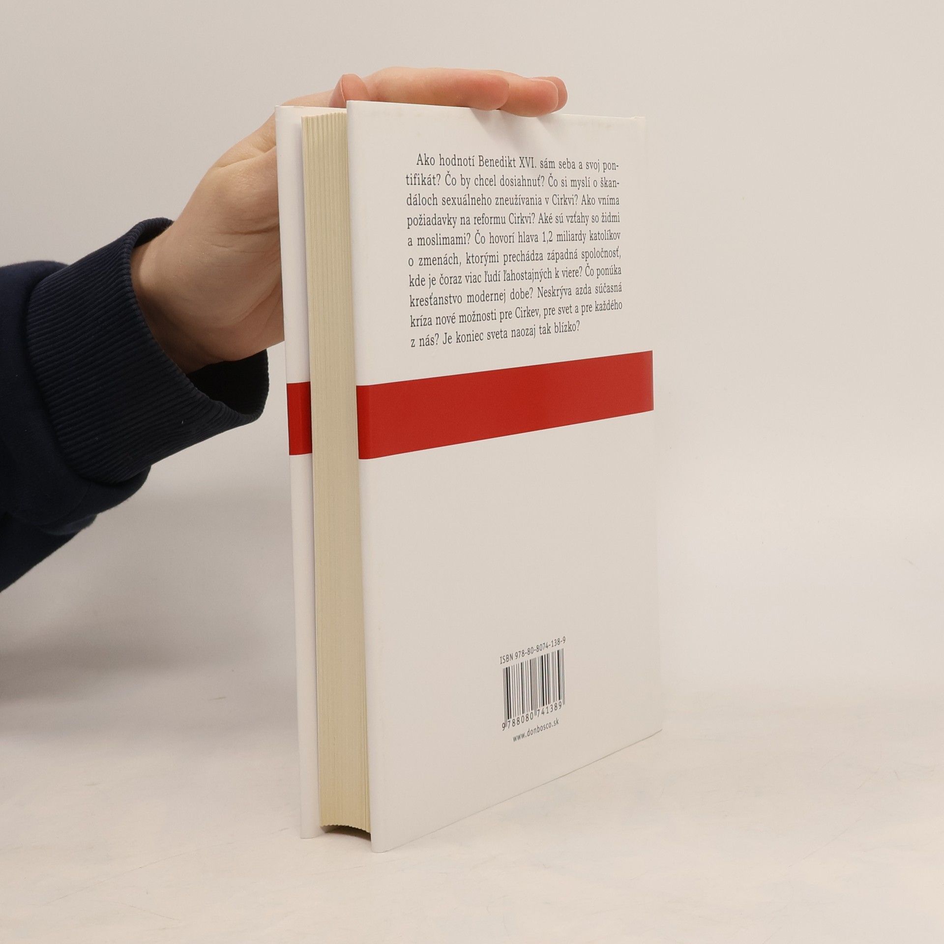 Pápež, Cirkev a znamenia čias Ako hodnotí Benedikt XVI. sám seba a svoj pontifikát? Čo by chcel dosiahnuť? Čo si myslí o škandáloch sexuálneho zneužívania v Cirkvi? Ako vníma požiadavky na reformu Cirkvi? Aké sú vzťahy so židmi a moslimami? Čo hovorí hlava 1,2 miliardy katolíkov o zmenách, ktorými prechádza západná spoločnosť, kde je čoraz viac ľudí ľahostajných k viere? Čo ponúka kresťanstvo modernej dobe? Neskrýva azda súčasná kríza nové možnosti pre Cirkev, pre svet a pre každého z nás? Je koniec sveta naozaj tak blízko? Unikátny rozhovor nemeckého novinára s Benediktom XVI., v ktorom pápež, pre niektorých možno prekvapujúco, nič nezahmlieva. V mysliach mnohých je pápež ten, ktorému nemožno v ničom odporovať, čo môže byť dôvodom, pre ktorý ho možno mnohí neobľubujú, či ním opovrhujú. Ako však sám v knihe zdôrazňuje – každý je slobodný mu protirečiť… V knihe sa osobne stretnete s človekom, otvoreným a pokorným, ktorý sa pred šiestimi rokmi stal hlavou Katolíckej cirkvi.