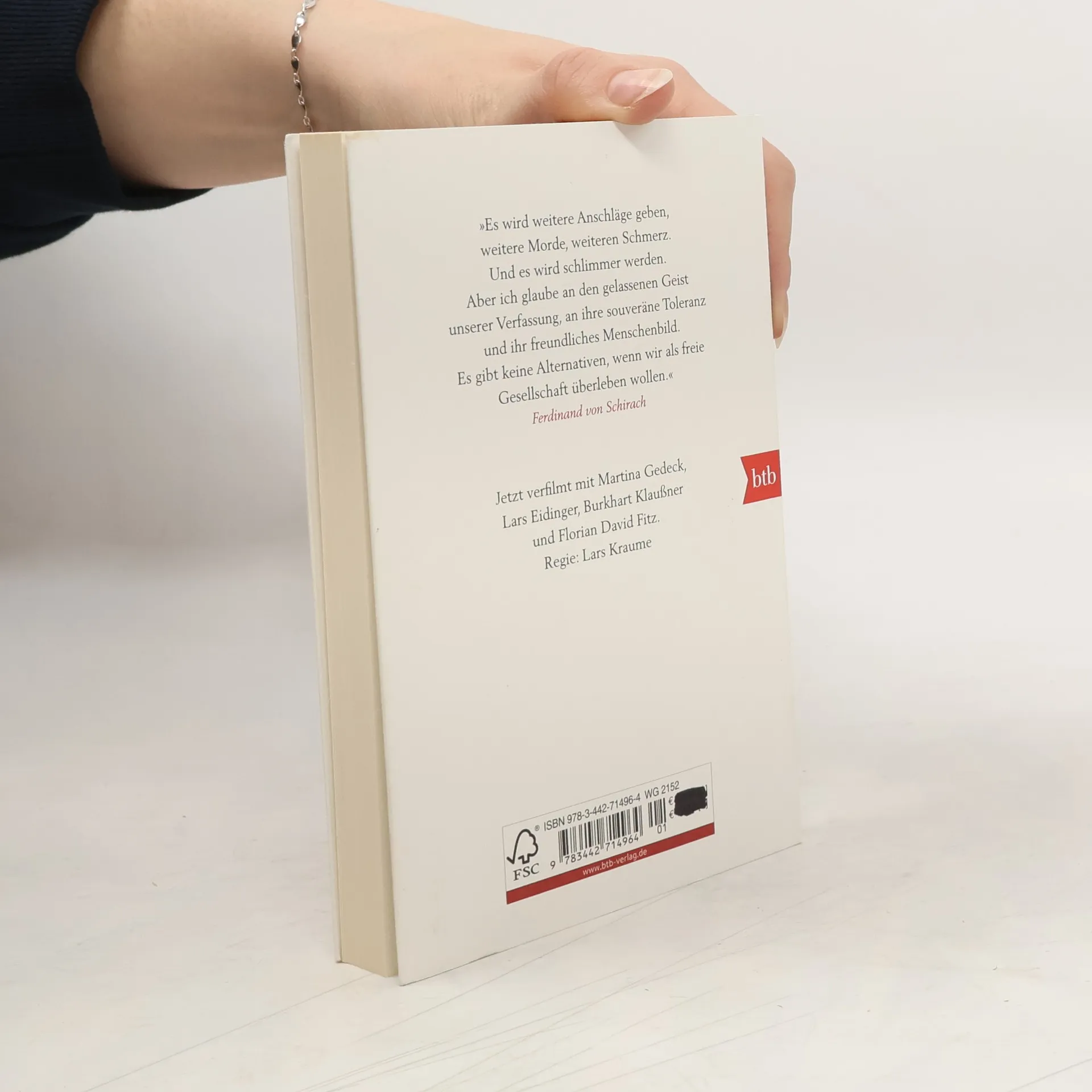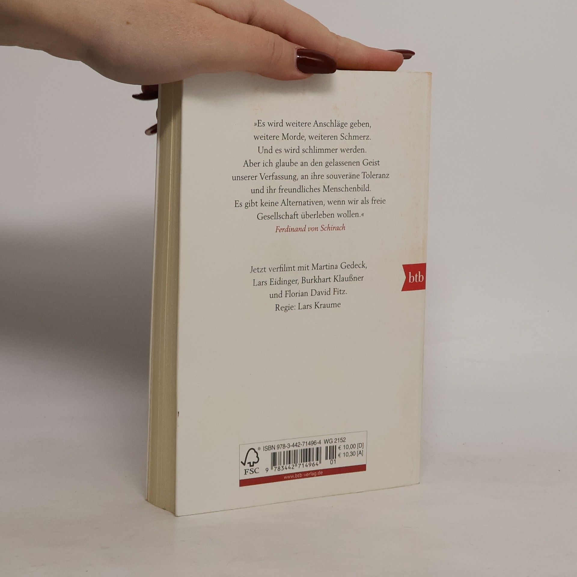 Ein Theaterstück von bedrückender Aktualität. Es stellt die Frage, wie wir in Zukunft leben wollen. Werden wir uns für die Freiheit oder die Sicherheit entscheiden? Wollen wir, dass die Würde des Menschen trotz der Terrorgefahr noch gilt? Ein Terrorist kapert eine Maschine der Lufthansa und zwingt die Piloten, Kurs auf die voll besetzte Allianz-Arena in München zu nehmen. Gegen den Befehl seiner Vorgesetzten schießt ein Kampfpilot der Luftwaffe das Flugzeug ab, alle Passagiere sterben. Der Mann muss sich vor Gericht für sein Handeln verantworten. Seine Richter sind die Zuschauer und Leser, sie müssen über Schuld und Unschuld urteilen.Der Anschlag auf die Redaktion von Charlie Hebdo im Januar 2015 hat auf schrecklichste Weise gezeigt, wie hoch der Preis sein kann, den wir für unsere Freiheit zahlen müssen. Schirachs Rede auf Charlie Hebdo, die ebenfalls in diesem Band enthalten ist, ist ein Plädoyer für die Freiheit des Wortes, für unsere Zivilisation im Angesicht ihrer Feinde.
