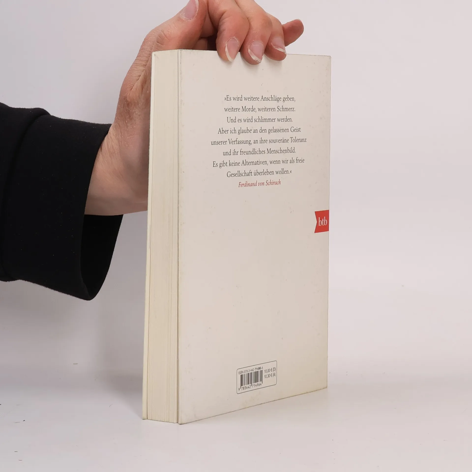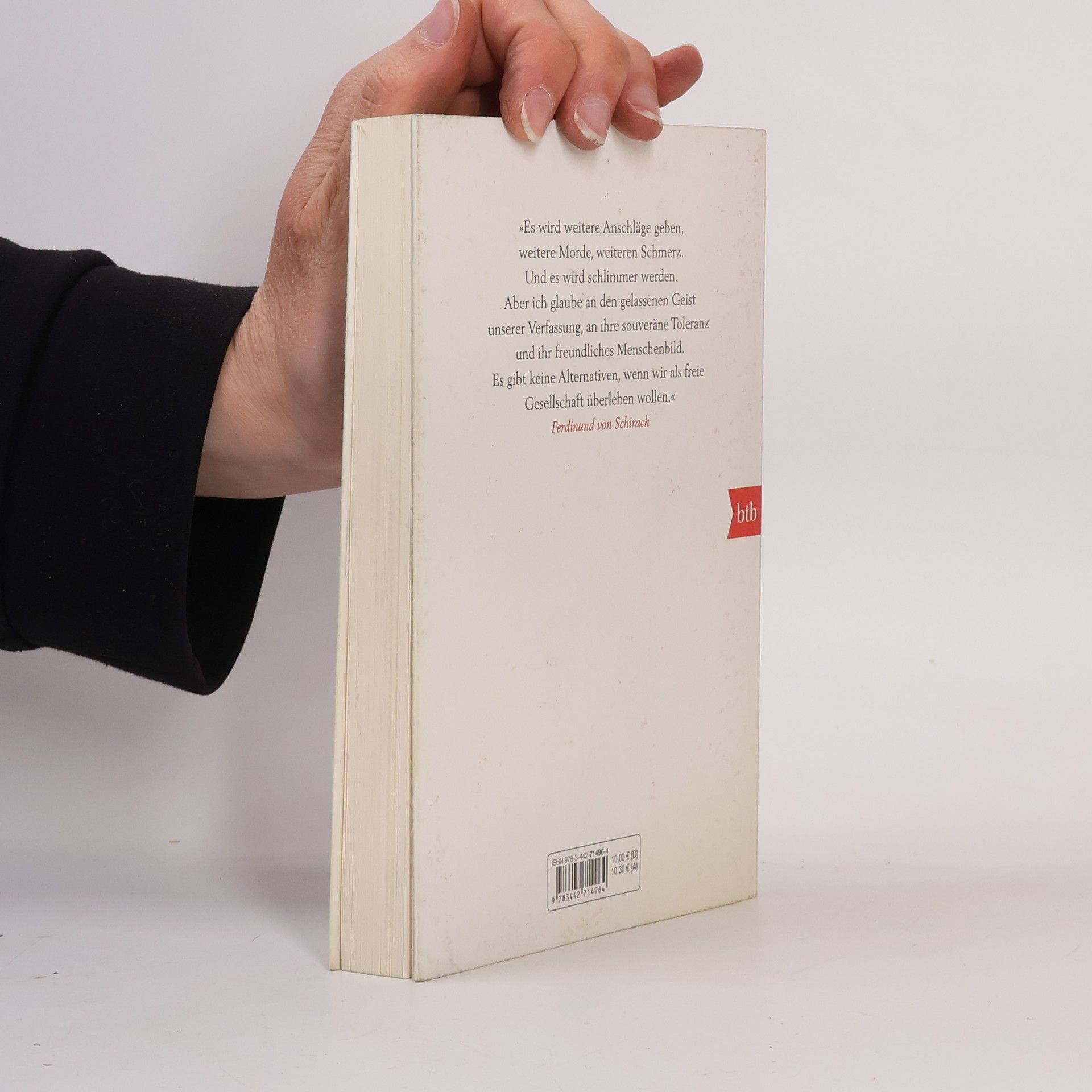 Ein Theaterstück von bedrückender Aktualität. Es stellt die Frage, wie wir in Zukunft leben wollen. Werden wir uns für die Freiheit oder die Sicherheit entscheiden? Wollen wir, dass die Würde des Menschen trotz der Terrorgefahr noch gilt? Ein Terrorist kapert eine Maschine der Lufthansa und zwingt die Piloten, Kurs auf die voll besetzte Allianz-Arena in München zu nehmen. Gegen den Befehl seiner Vorgesetzten schießt ein Kampfpilot der Luftwaffe das Flugzeug ab, alle Passagiere sterben. Der Mann muss sich vor Gericht für sein Handeln verantworten. Seine Richter sind die Zuschauer und Leser, sie müssen über Schuld und Unschuld urteilen.Der Anschlag auf die Redaktion von Charlie Hebdo im Januar 2015 hat auf schrecklichste Weise gezeigt, wie hoch der Preis sein kann, den wir für unsere Freiheit zahlen müssen. Schirachs Rede auf Charlie Hebdo, die ebenfalls in diesem Band enthalten ist, ist ein Plädoyer für die Freiheit des Wortes, für unsere Zivilisation im Angesicht ihrer Feinde.