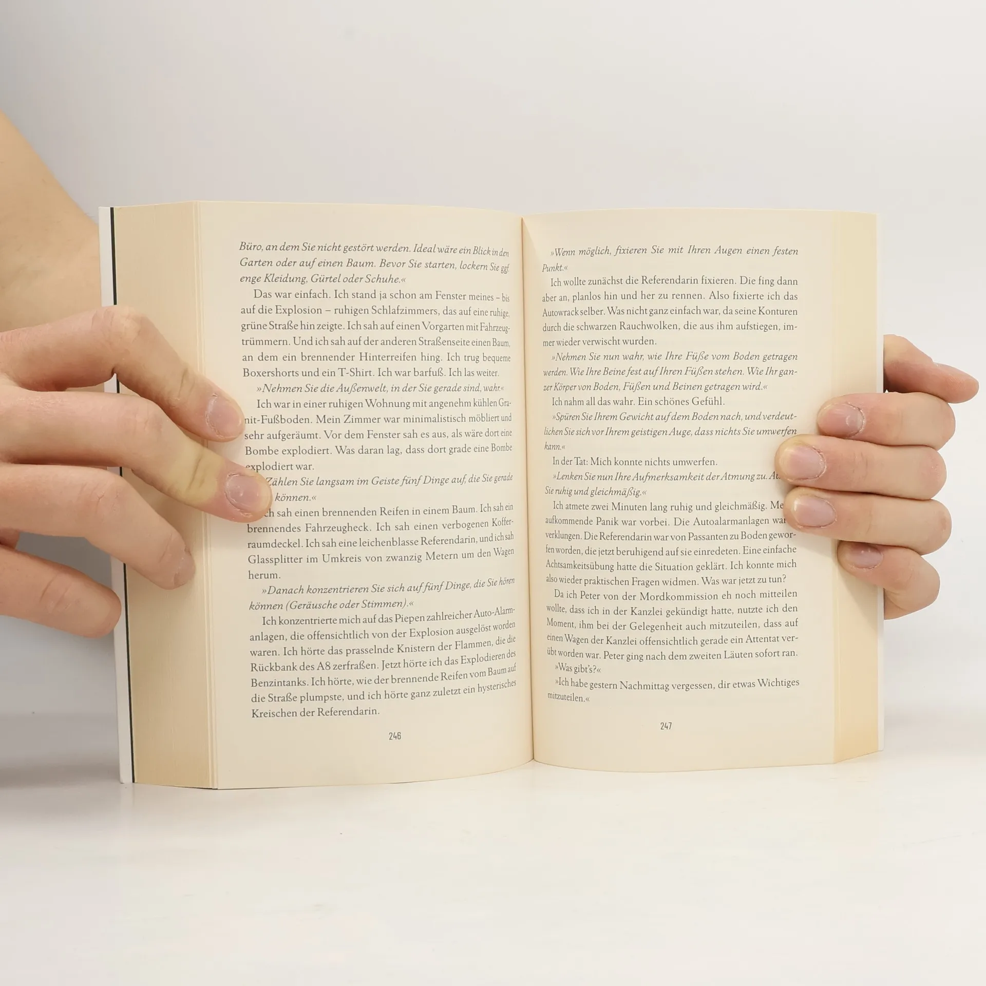 Björn Diemel wird von seiner Frau gezwungen, ein Achtsamkeits-Seminar zu besuchen, um seine Ehe ins Reine zu bringen, sich als guter Vater zu beweisen und die etwas aus den Fugen geratene Work-Life-Balance wieder herzustellen. Denn Björn ist ein erfolgreicher Anwalt und hat dementsprechend sehr wenig Zeit für seine Familie. Der Kurs trägt tatsächlich Früchte und Björn kann das Gelernte sogar in seinen Job integrieren, allerdings nicht ganz auf die erwartete Weise. Denn als sein Mandant, ein brutaler und mehr als schuldiger Großkrimineller, beginnt, ihm ernstliche Probleme zu bereiten, bringt er ihn einfach um — und zwar nach allen Regeln der Achtsamkeit. Achtsam morden ist die Geschichte eines bewussten und entschleunigten Mordes, der längst überfällige Schulterschluss zwischen Achtsamkeitsratgeber und Krimi, vor allem aber ein origineller Unterhaltungsroman.
