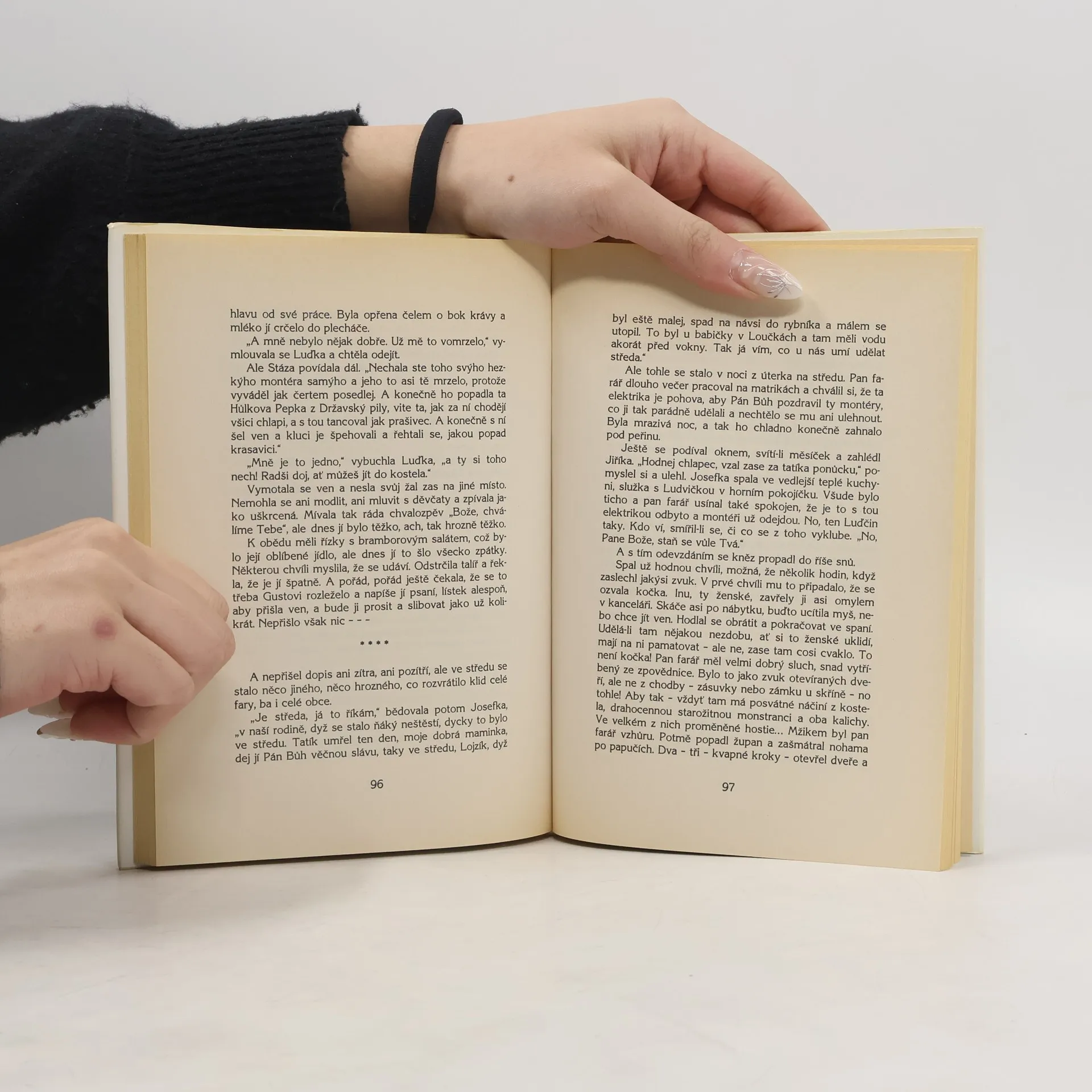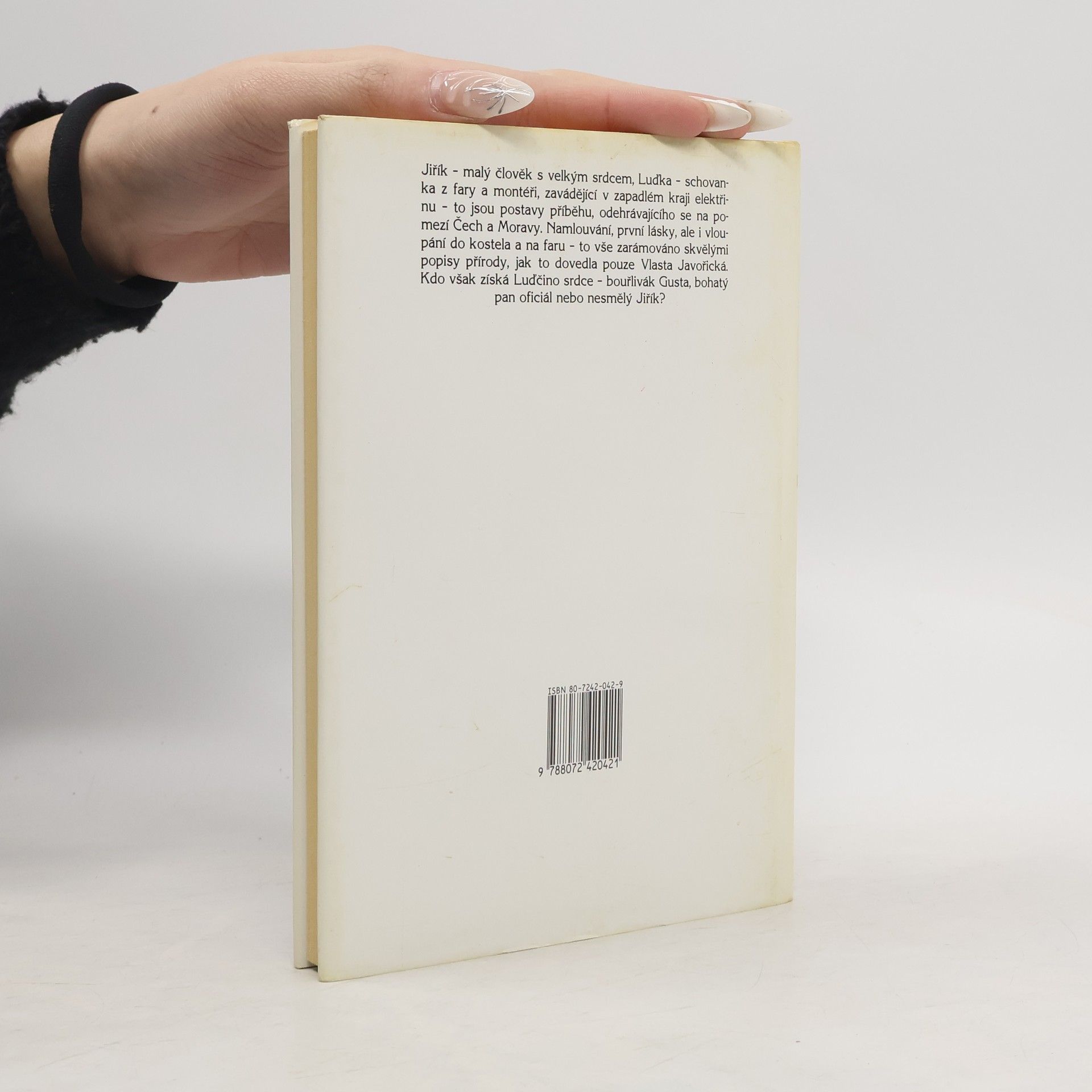 Kniha vypráví příběh farářovy schovanky Luďky a jejího nejprve dětského kamaráda a později snoubence Jiříka. Jiřík je velmi chytrý, milý chlapec, který je už od dětství oddaný své kamarádce Luďce. Chlapec a později mladý muž je vzrůstu malého, naopak Luďka je dívka spanilá a ztepilá. Oba si navzájem slibují lásku, přestože Luďčina matka by si pro svoji dceru představovala většího fešáka. Do vesnice přijedou montéři zavádět elektřinu a mezi nimi je světem protřelý a dívkami obletovaný Gusta, jehož šarmu Luďka na krátký čas podlehne. Naštěstí však dívka včas pozná, že Gustův krásný zevnějšek nestačí pro spokojený partnerský život a že oč je přitažlivější vzhled, o to jsou jeho charakterové vlastnosti horší. Najde svoji pozapomenutou lásku k Jiříkovi a s ním vstoupí do manželství. Román nebyl ještě nikdy publikován a je doplněn autorčinou povídkou s názvem Sklenice vody.