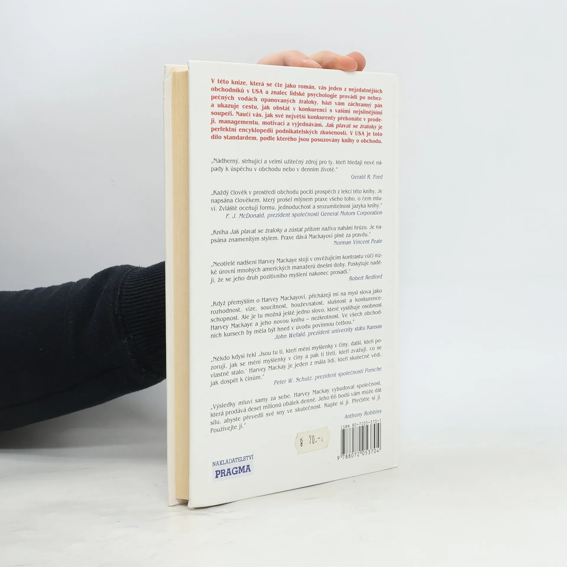 V této knize, která se čte jako román, vás jeden z nejzdatnějších obchodníků v USA a znalec lidské psychologie provádí po nebezpečných vodách opanovaných žraloky, hází vám záchranný pás a ukazuje cestu, jak obstát v konkurenci s vašimi soupeři. Naučí vás, jak své největší konkurenty překonáte v prodeji, managementu, motivaci a vyjednávání. Jak plavat se žraloky je perfektní encyklopedií podnikatelských zkušeností.