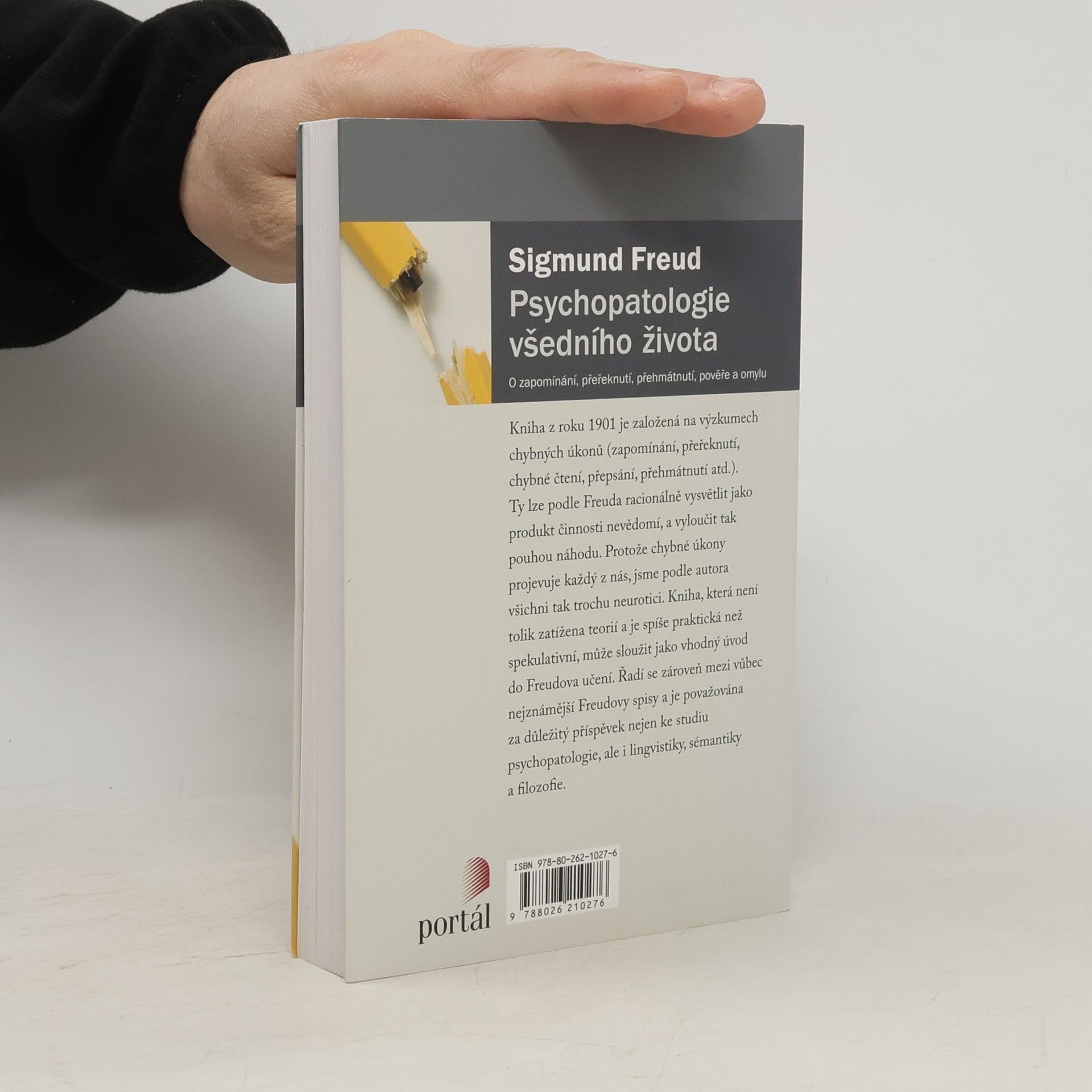 Kniha z roku 1901 je založená na výzkumech chybných úkonů (zapomínání, přeřeknutí, chybné čtení, přepsání, přehmátnutí atd.). Ty lze podle Freuda racionálně vysvětlit jako produkt činnosti nevědomí, a vyloučit tak pouhou náhodu. Protože chybné úkony projevuje každý z nás, jsme podle autora všichni tak trochu neurotici. Kniha, která není tolik zatížena teorií a je spíše praktická než spekulativní, může sloužit jako vhodný úvod do Freudova učení. Řadí se zároveň mezi vůbec nejznámější Freudovy spisy a je považována za důležitý příspěvek nejen studia psychopatologie, ale i lingvistiky, sémantiky a filosofie. Sigmund Freud (1856–1939), vídeňský neurolog a psychoterapeut, zakladatel psychoanalýzy, třetí nejcitovanější osoba v psychologii 20. století.