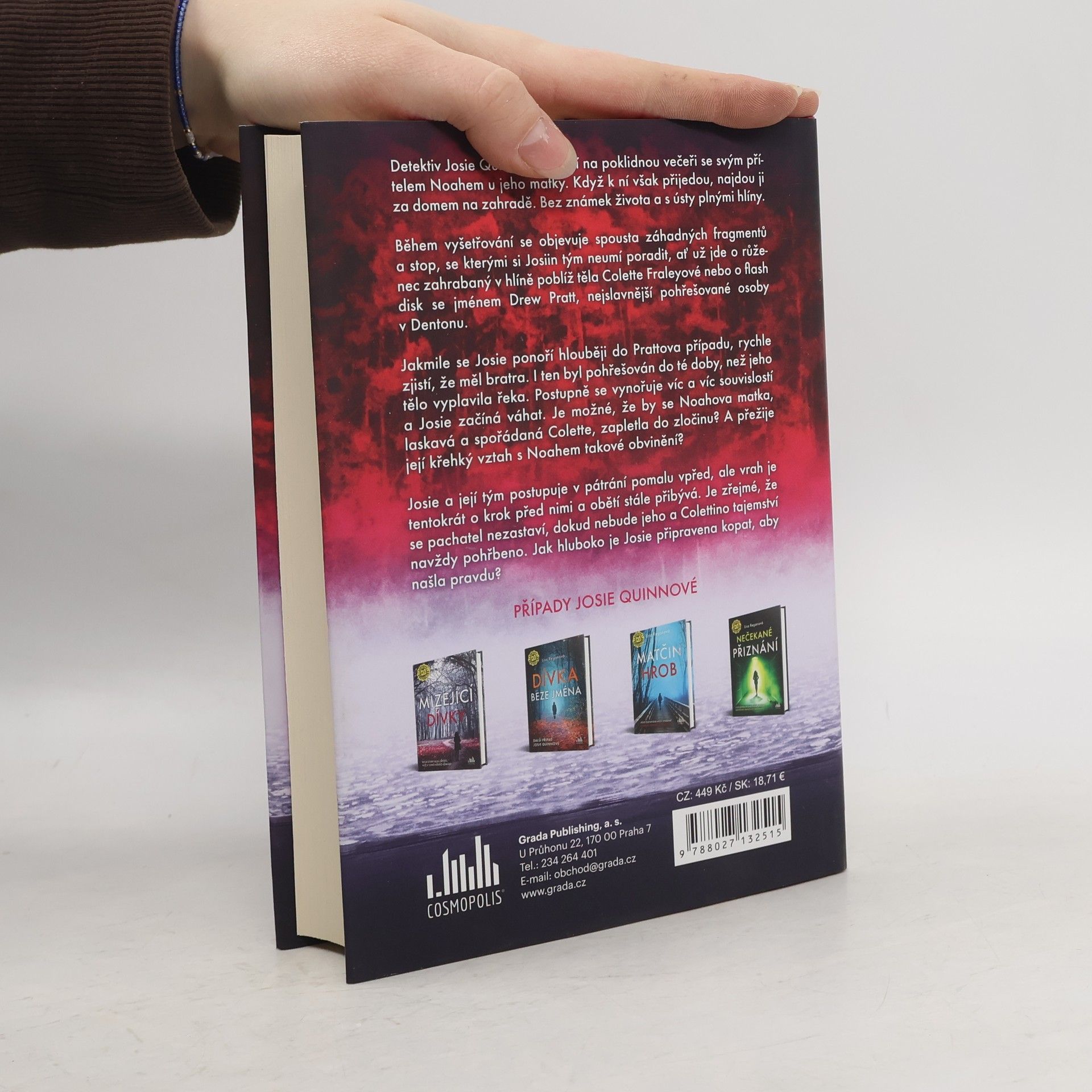 Detektiv Josie Quinnová se těší na poklidnou večeři se svým přítelem Noahem u jeho matky. Když k ní však přijedou, najdou ji za domem na zahradě. Bez známek života a s ústy plnými hlíny.Během vyšetřování se objevuje spousta záhadných fragmentů a stop, se kterými si Josiin tým neumí poradit, ať už jde o růženec zahrabaný v hlíně poblíž těla Colette Fraleyové nebo o flash disk se jménem Drew Pratt, nejslavnější pohřešované osoby v Dentonu.Jakmile se Josie ponoří hlouběji do Prattova případu, rychle zjistí, že měl bratra. I ten byl pohřešován do té doby, než jeho tělo vyplavila řeka. Postupně se vynořuje víc a víc souvislostí a Josie začíná váhat. Je možné, že by se Noahova matka, laskavá a spořádaná Colette, zapletla do zločinu? A přežije její křehký vztah s Noahem takové obvinění?Josie a její tým postupuje v pátrání pomalu vpřed, ale vrah je tentokrát o krok před nimi a obětí stále přibývá. Je zřejmé, že se pachatel nezastaví, dokud nebude jeho a Colettino tajemství navždy pohřbeno. Jak hluboko je Josie připravena kopat, aby našla pravdu?