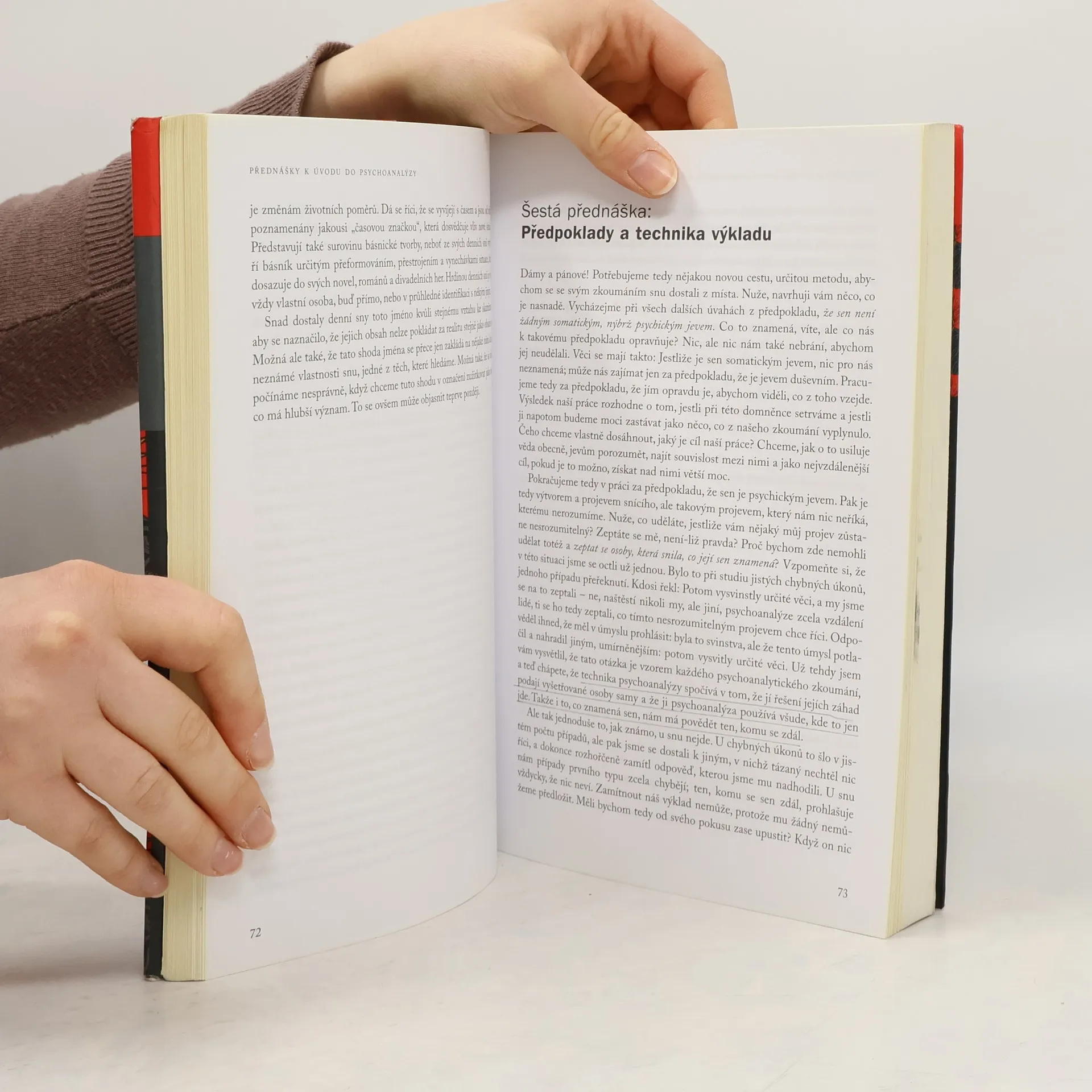 Freud nikdy nenapsal skutečnou učebnici psychoanalýzy. A tak se tomuto účelu nejvíc blíží jeho přednášky. Jejich první řadu přednesl mezi lety 1915 a 1917 v posluchárně Vídeňské psychiatrické kliniky tak, aby je pochopili i posluchači bez hlubšího psychiatrického vzdělání. Jeho způsob podání je živý a projevuje se v něm Freudova schopnost didaktického myšlení. Stavba přednášek vychází z toho, co je každému bezprostředně známo z vlastních prožitků. Tématem jsou tři klasické oblasti psychoanalytického zkoumání: chybné úkony, sny a neurotické symptomy. Přednášky jsou skvělým přehledem poznatků tzv. překladatelského období psychoanalýzy. Freud na tento projekt navázal v Nové řadě přednášek k úvodu do psychoanalýzy z roku 1933, ačkoli tato řada už nikdy před posluchači přednesena nebyla. Freud zde své poznatky reviduje a doplňuje a představuje mimo jiné strukturální model psychiky. Jedná se o nejpřekládanější Freudovo dílo, které dodnes patří k povinným textům všech výukových psychoanalytických institutů – o ideální úvod k poznání psychoanalýzy, jak jej může podat jen jeho tvůrce sám. Sigmund Freud (1856–1939), vídeňský neurolog a psychoterapeut, zakladatel psychoanalýzy.