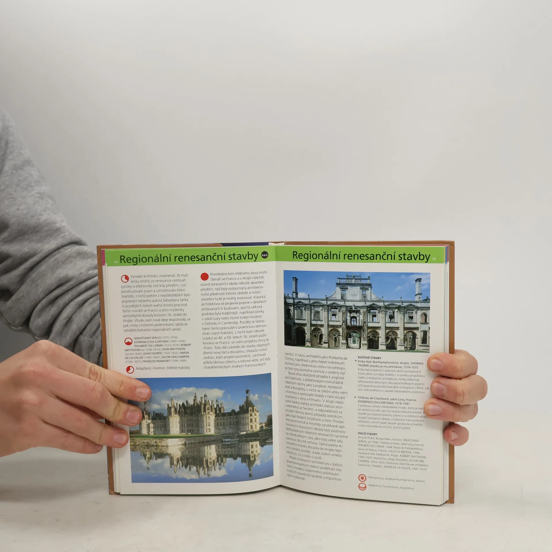 Chronologický přehled slohů, směrů, stylů, trendů, hnutí i skupin v architektuře od starověku po současnost. Každému stavebnímu, později architektonickému slohu či směru jsou věnovány dvě strany, které obsahují definici slohu, časové vymezení a historické období, seznam významných staveb daného období a směru a klíčových umělců, odkazy na další stavby včetně reprodukcí a v neposlední řadě i další prameny a odkazy. Nechybí ani rejstřík umělců, pojmů a termínů i graf jednotlivých period.