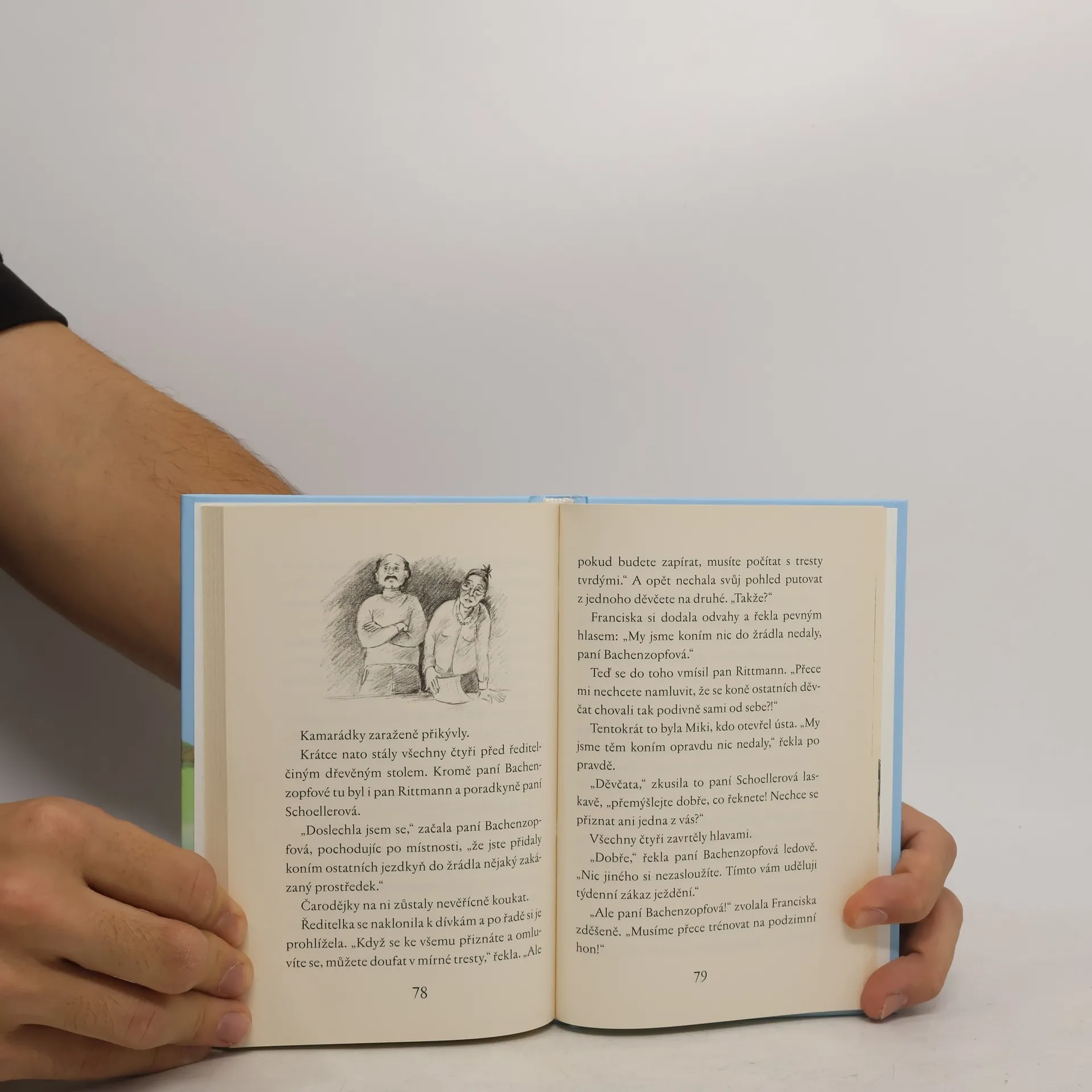 Také bys chtěla chodit do školy, kde budeš jezdit na koni a čarovat? Vítej na Koňském hrádku!Jana se hned první den v nové škole seznámí s kamarádkami Michelle, Franciskou a Julou. Mají v plánu zúčastnit se velkého dostihového závodu, ale nejsou samy... Partička stejně starých holek má na ně spadeno a znepříjemňuje jim život, jak to jen jde. Jednoho dne však Jana najde tajuplnou kouzelnou knihu. Pomohou jim zaklínadla a lektvary proti namyšleným soupeřkám, nebo všechno ještě více zamotají?Čarodějky z jezdecké školy - dobrodružné čtení pro holky, kterým kouzla nejsou cizí. Zdroj: http://www.levneucebnice.cz
