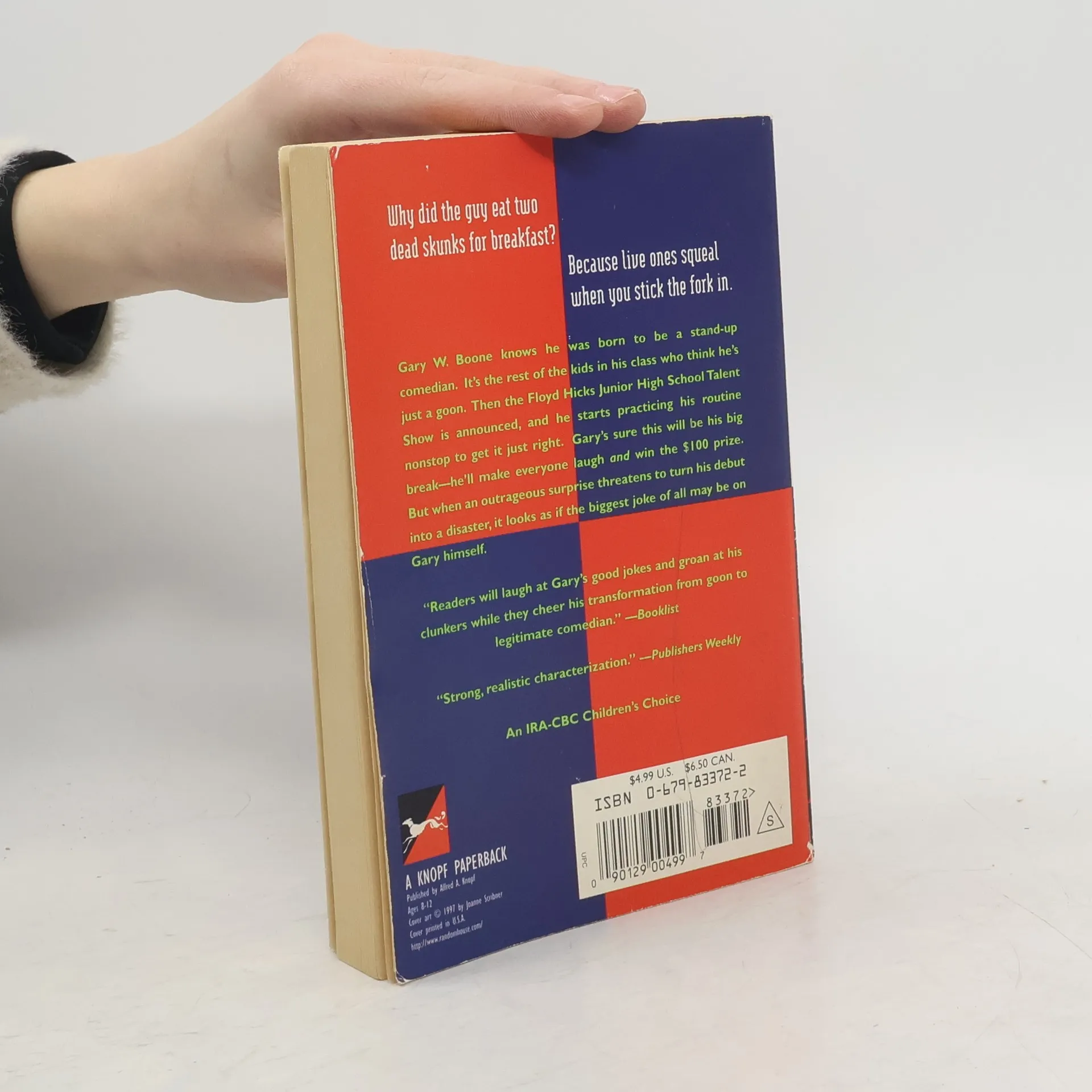 A sidesplitting classic from Newbery Medalist and National Book Award winner Louis Sachar (Holes), with a brand-new cover! Gary W. Boone knows he was born to be a stand-up comedian. It’s the rest of the kids in his class who think he’s just a goon. Then the Floyd Hicks Junior High School Talent Show is announced, and he starts practicing his routine nonstop to get it just right. Gary’s sure this will be his big break—he’ll make everyone laugh and win the $100 prize. But when an outrageous surprise threatens to turn his debut into a disaster, it looks as if the biggest joke of all may be on Gary himself.