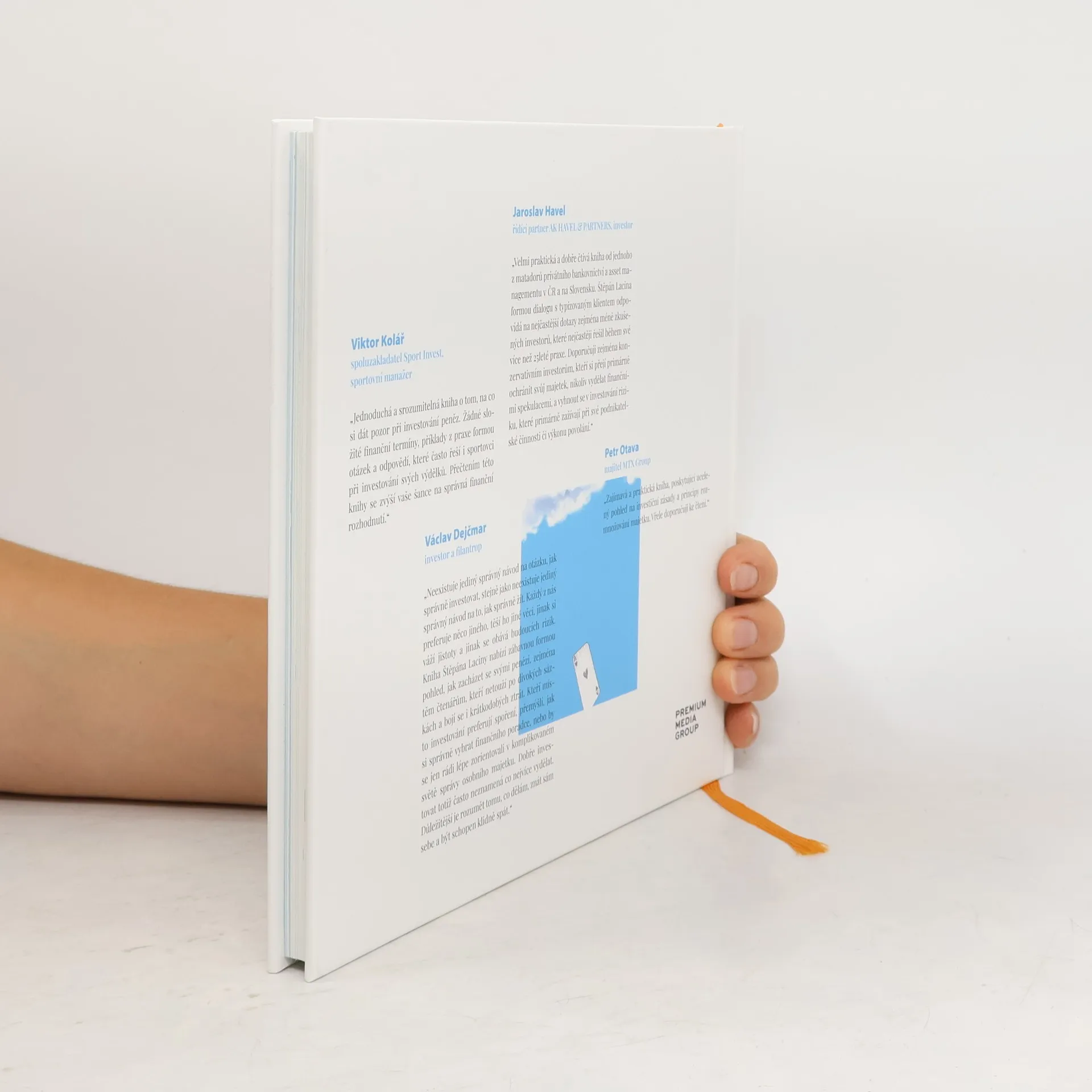 Kniha Peníze až na prvním místě aneb Pár investičních otázek na tělo vznikla z pera Štěpána Laciny, zakládajícího partnera společnosti Accredio, který při její tvorbě uplatnil své dlouholeté zkušenosti v oboru. Vysoce praktická, srozumitelná a čtivá příručka o tom, na co si dát pozor při investování. Lacina v knize odpovídá na 65 otázek, které pomohou začínajícím investorům či jejich poradcům učinit v oblasti investic kvalifikovaná a správná rozhodnutí.