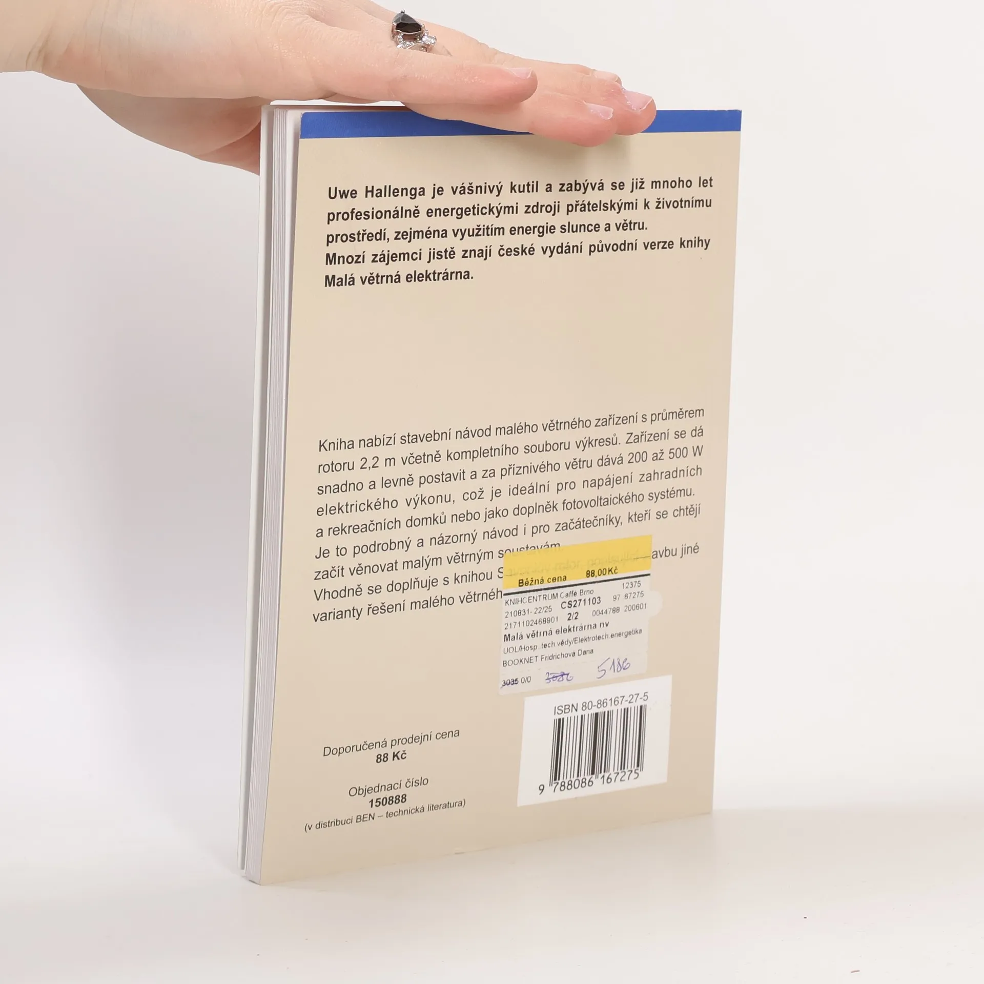 Kniha nabízí stavební návod malého větrného zařízení s průměrem rotoru 2,2 m včetně kompletního souboru výkresů. Zařízení se dá snadno a levně postavit a za příznivého větru dává 200 až 500 W elektrického výkonu, což je ideální pro napájení zahradních a rekreačních domků nebo jako doplněk fotovoltaického systému. Je to podrobný a názorný návod i pro začátečníky, kteří se chtějí začít věnovat malým větrným soustavám. Vhodně se doplňuje s knihou Savoniův rotor, popisující stavbu jiné varianty řešení malého větrného zařízení. (stavební návod s konstrukčními výkresy)